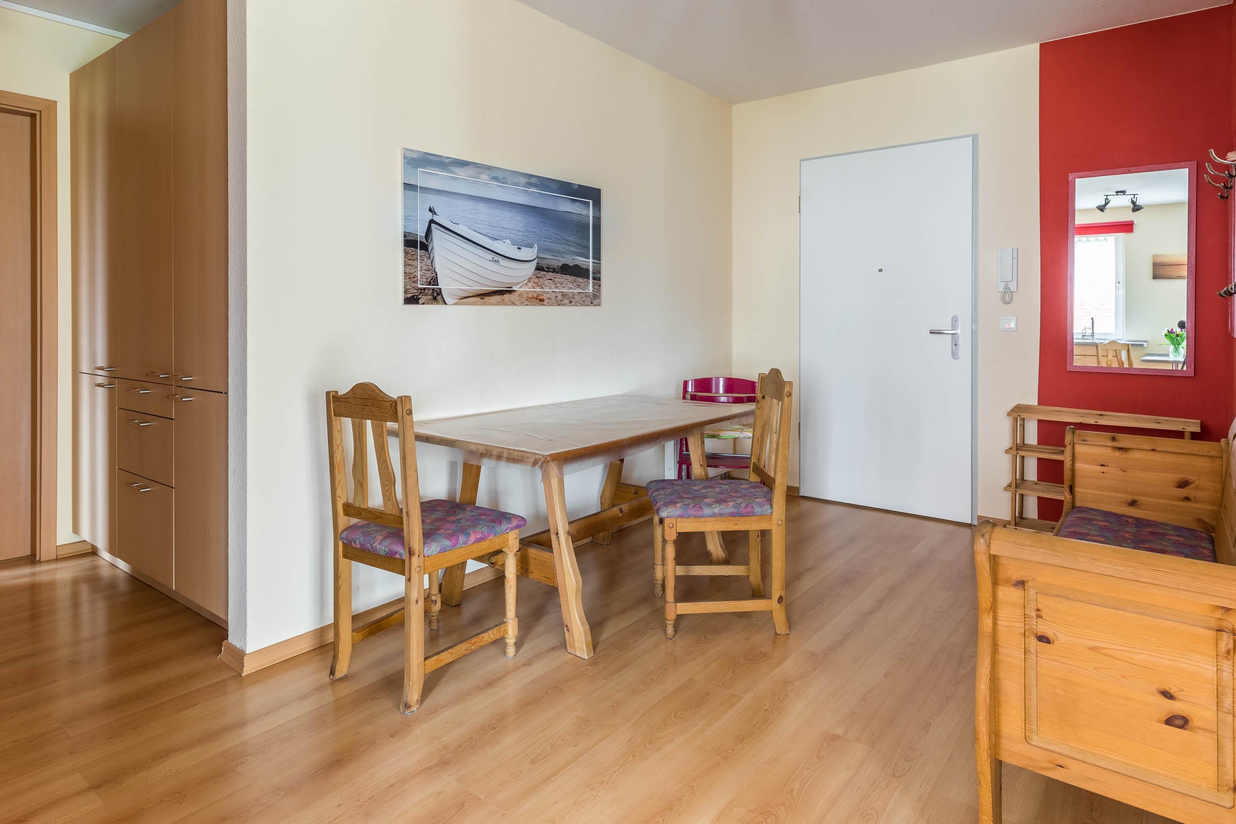 Die strandnahe Nichtraucher-Wohnung ist gehbehindertenfreundlich und seniorengerecht. Es gibt Fußbodenheizung im Bad. Der kürzeste Weg zum Strand ist gegenüber vom Bioladen kann jederzeit als Strandaufgang genutzt werden. Zur Pflege Ihrer Wäsche steht Ihnen ein Bügelbrett sowie ein Bügeleisen zur Verfügung.