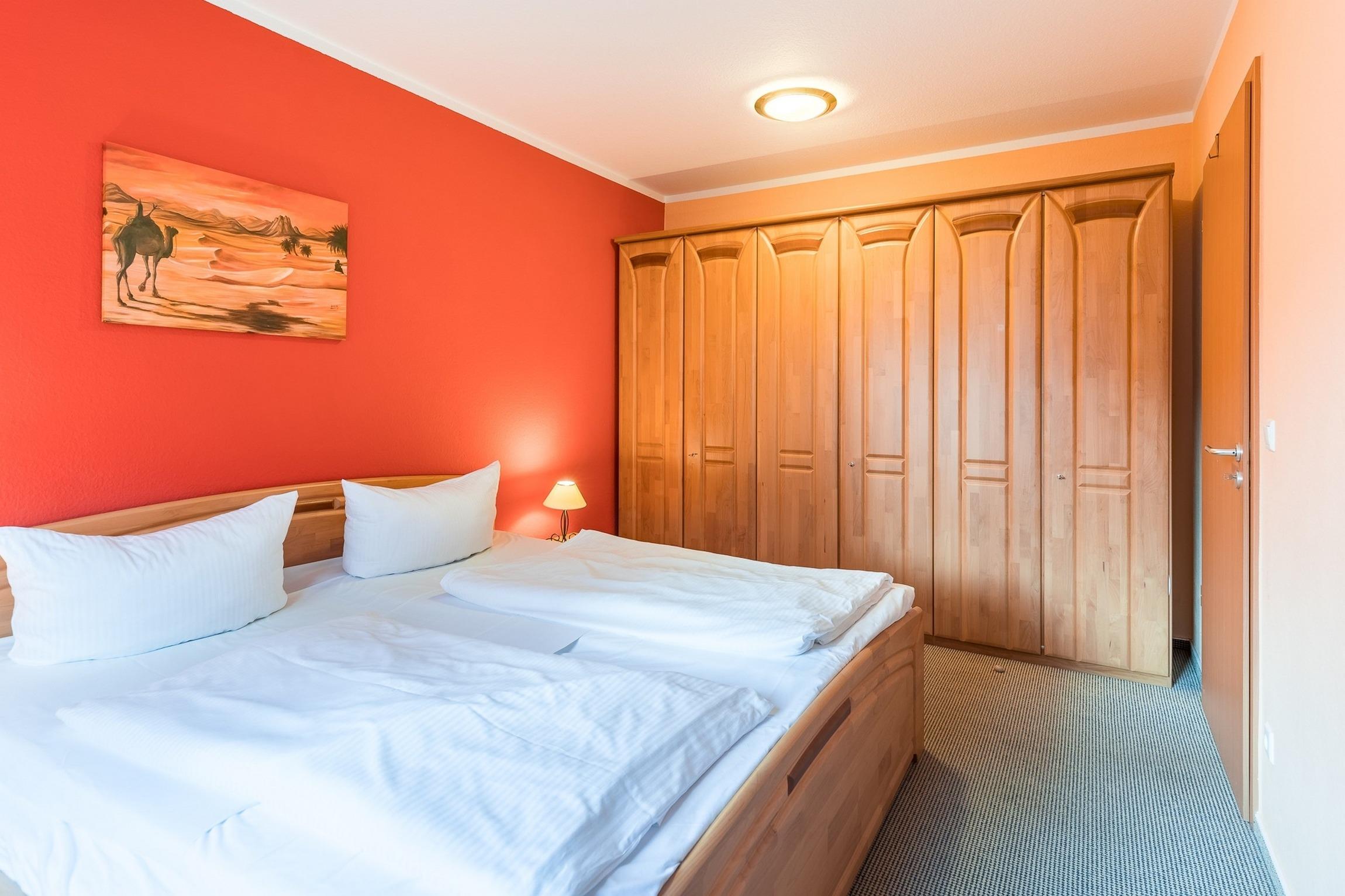 Das Schlafzimmer ist mit einem großen Doppelbett (zwei getrennte Matratzen) und einem großen Kleiderschrank ausgestattet.