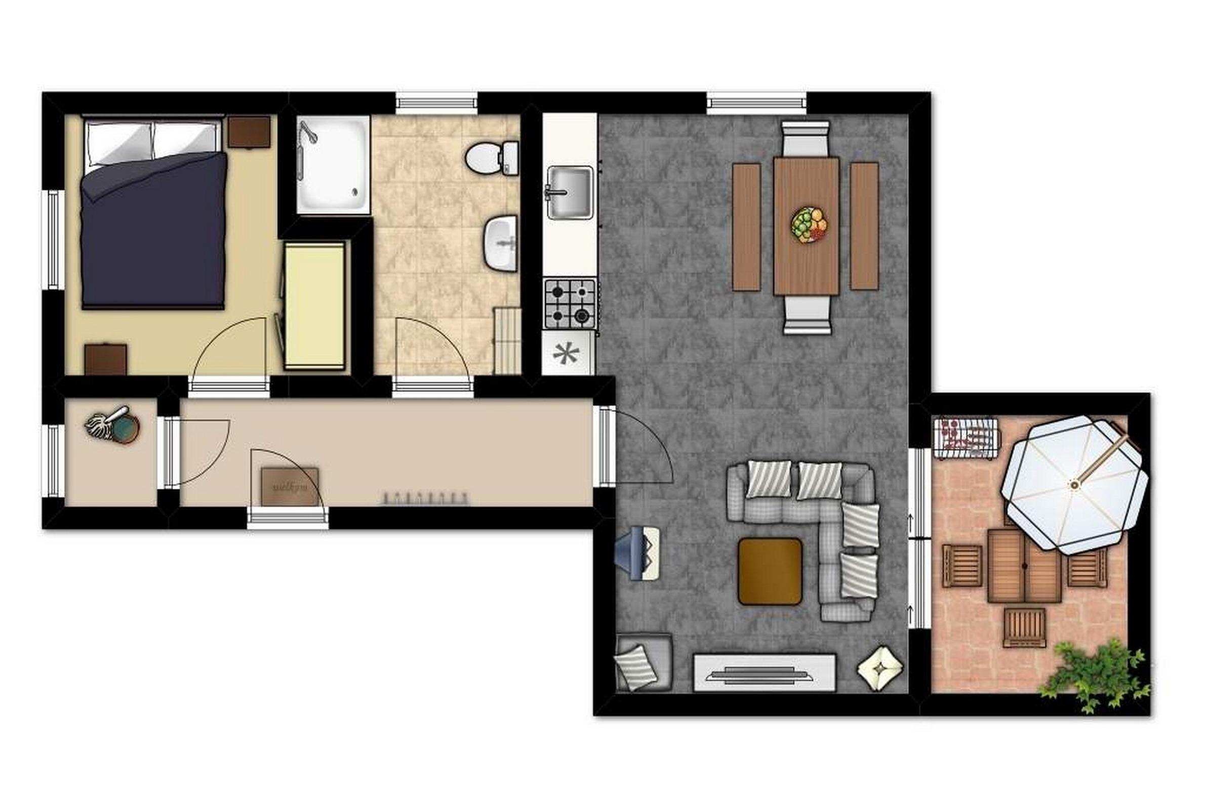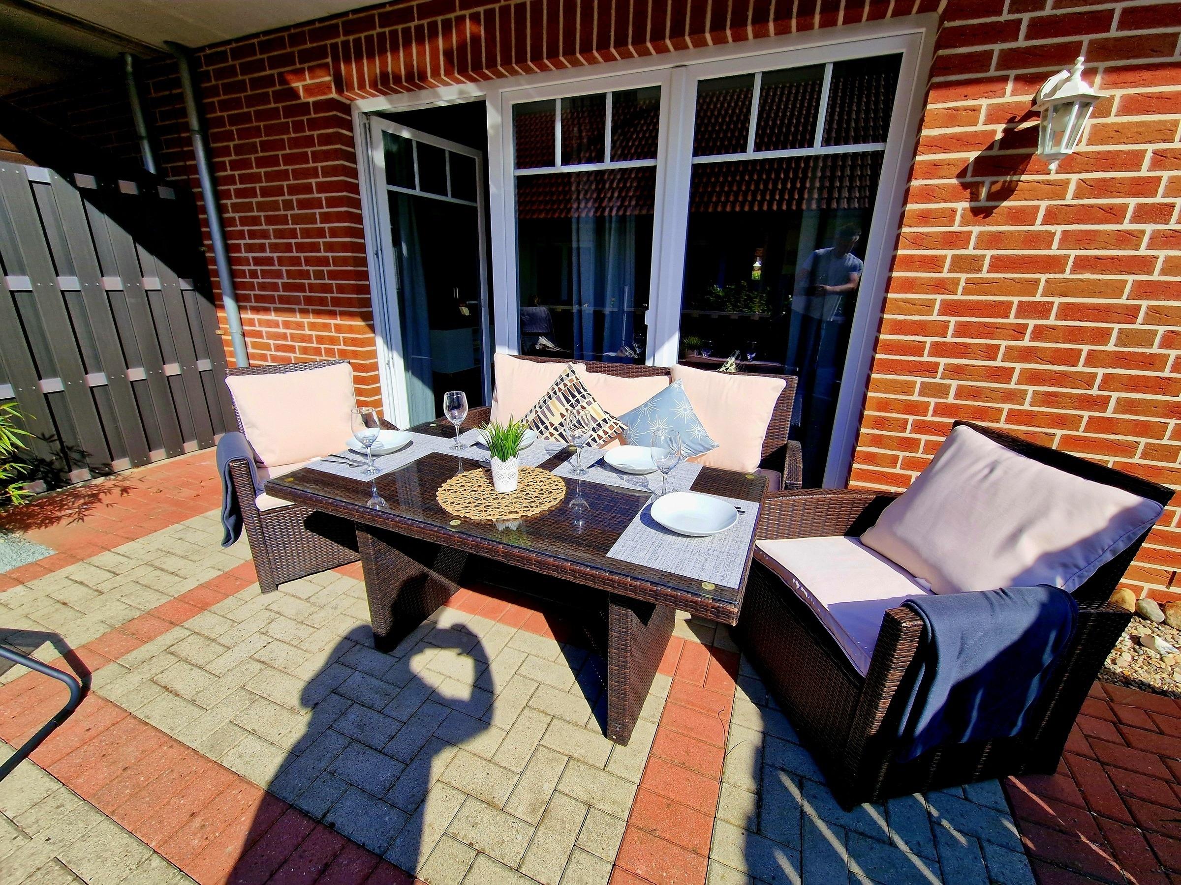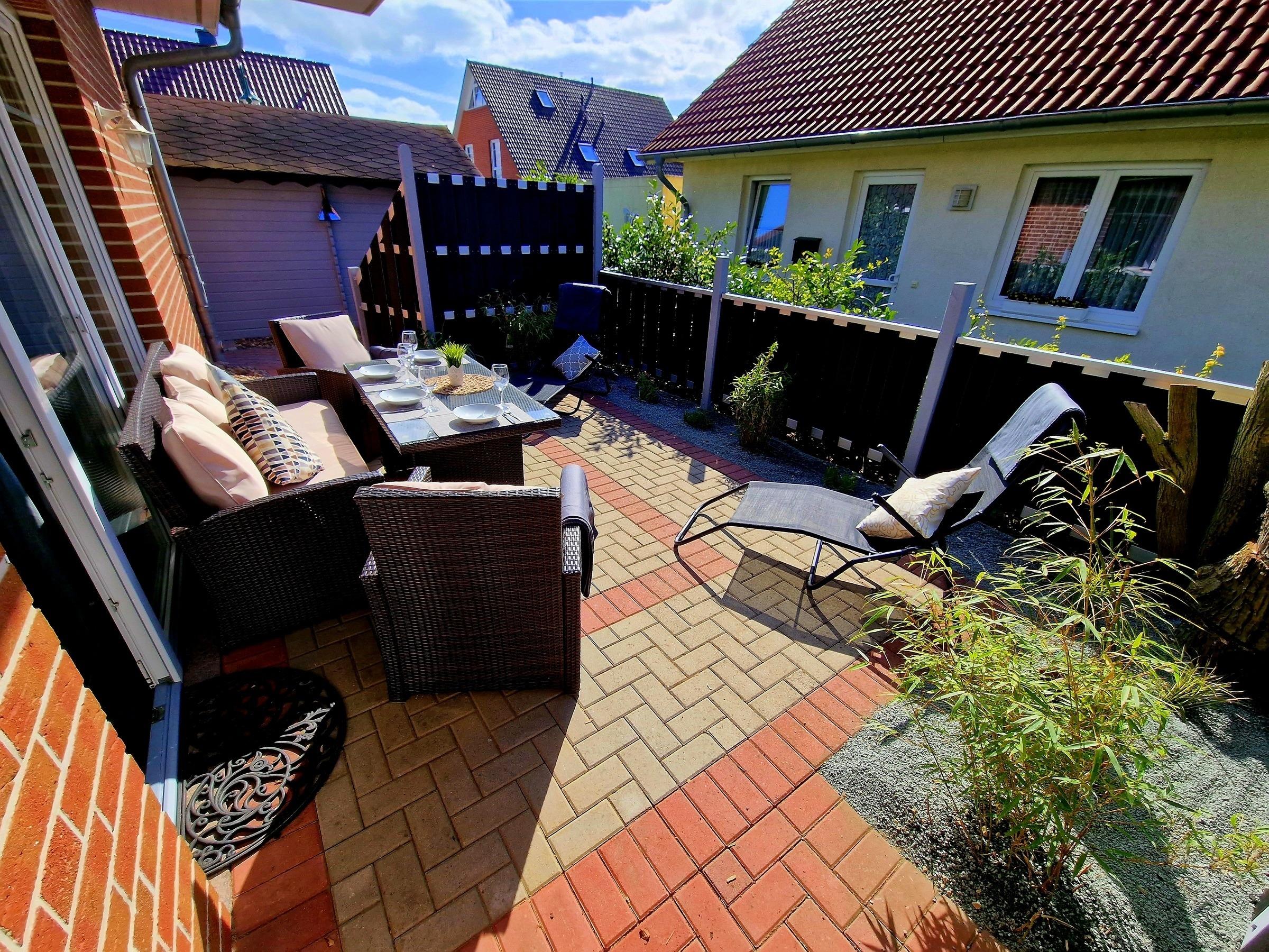 Im Außenbereich steht neben einer möblierten Terrasse auch ein Grill zur Verfügung.