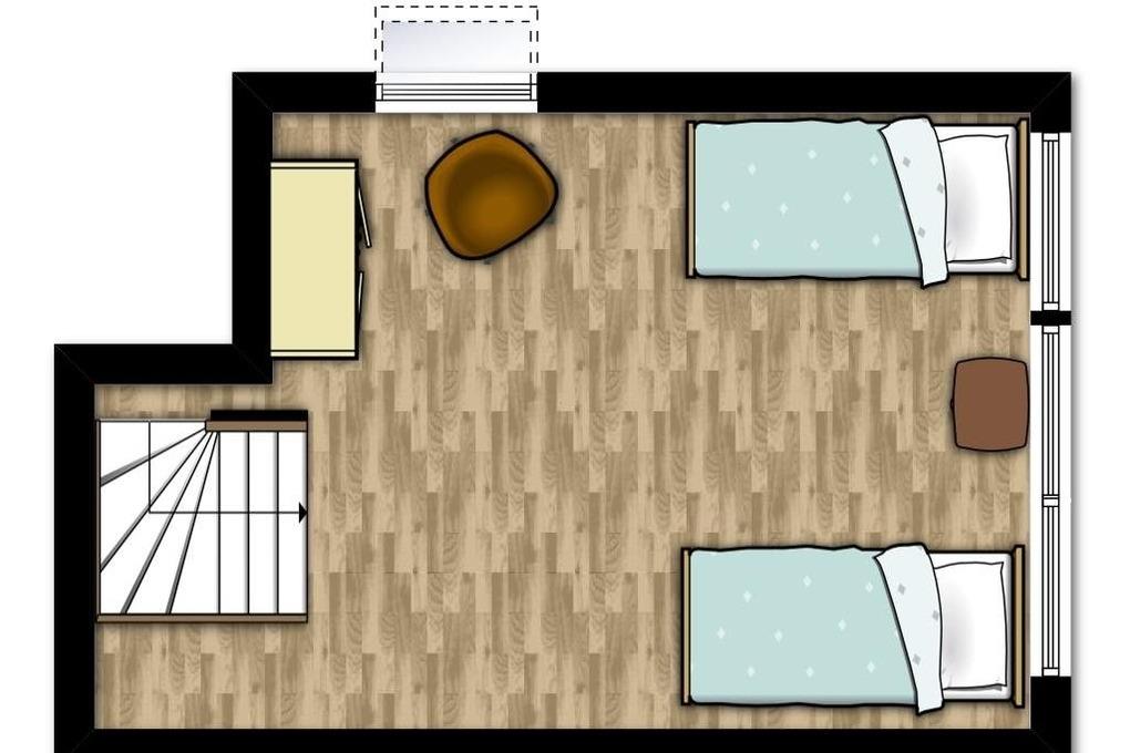 Vom Wohnzimmer aus führt eine Holztreppe in die 2. Wohnebene. Die offene Schlafgalerie in der zweiten Ebene, im DG ist mit zwei Einzelbetten (je 90x200cm), einem Kleiderschrank und 2. TV/ DVD ausgestattet. Von der Galerie aus haben Sie zusätzlich einen herrlichen Blick auf die Salzwiesen.