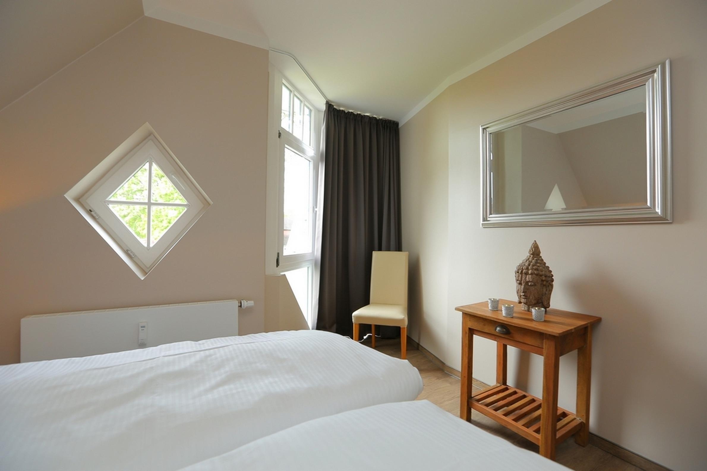 Das in freundlichen Beige- und Brauntönen gehaltene 3-Zimmer-Ferienappartment im 1.OG (Giebelseite Richtung Innenhof) erstreckt sich über 2 Ebenen und ist für 6 Personen sehr geschmackvoll eingerichtet.