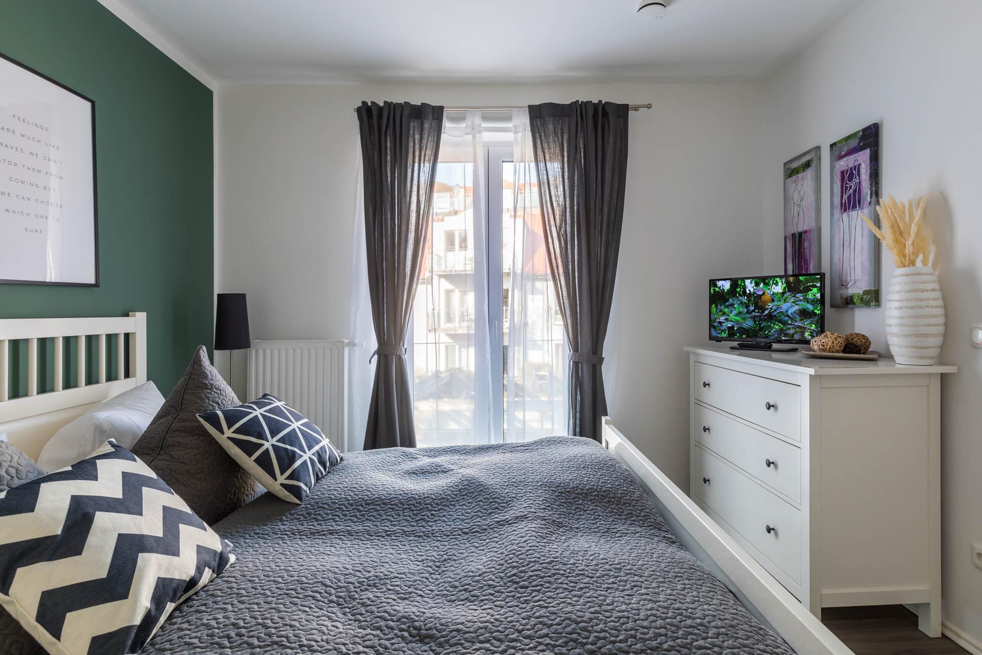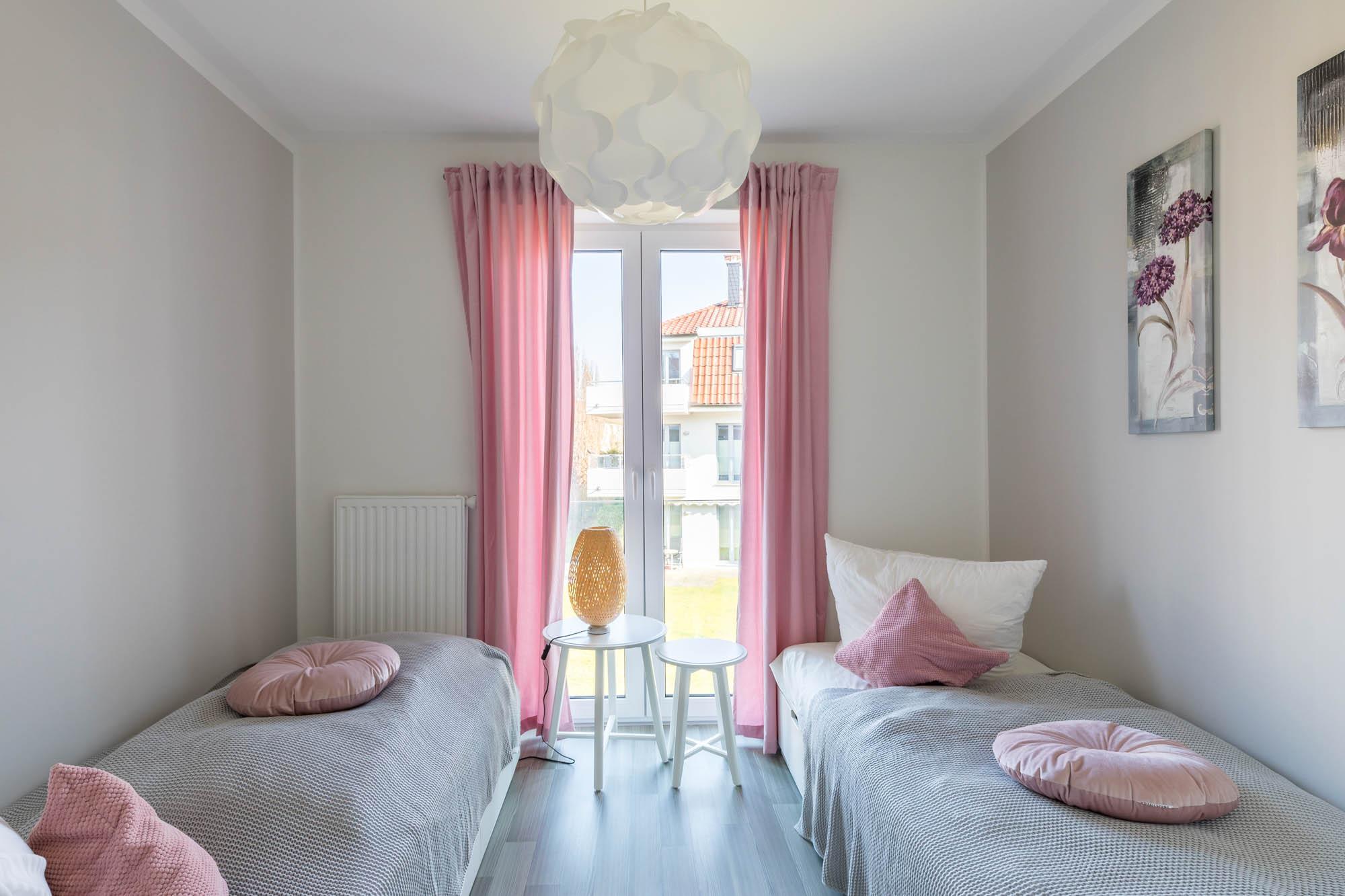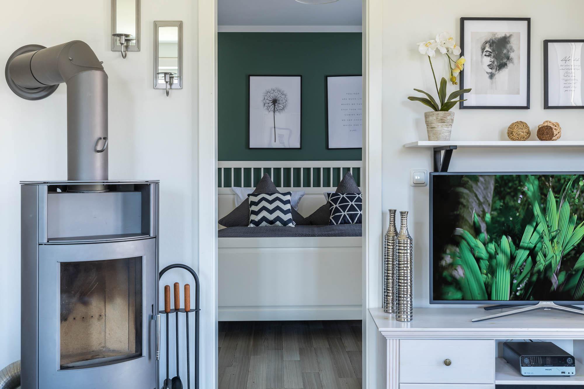 Für die nächtliche Ruhe stehen Ihnen zwei separate Schlafräume zur Verfügung: Im Schlafzimmer finden Sie ein Doppelbett (180x200cm) und eine Kommode, auf welcher sich auch ein zweites TV-Gerät befindet. Das Gäste-/ Kinderzimmer bietet zwei Einzelbetten (je 90x200cm).