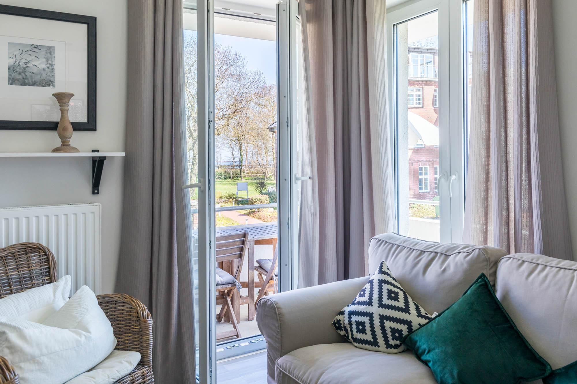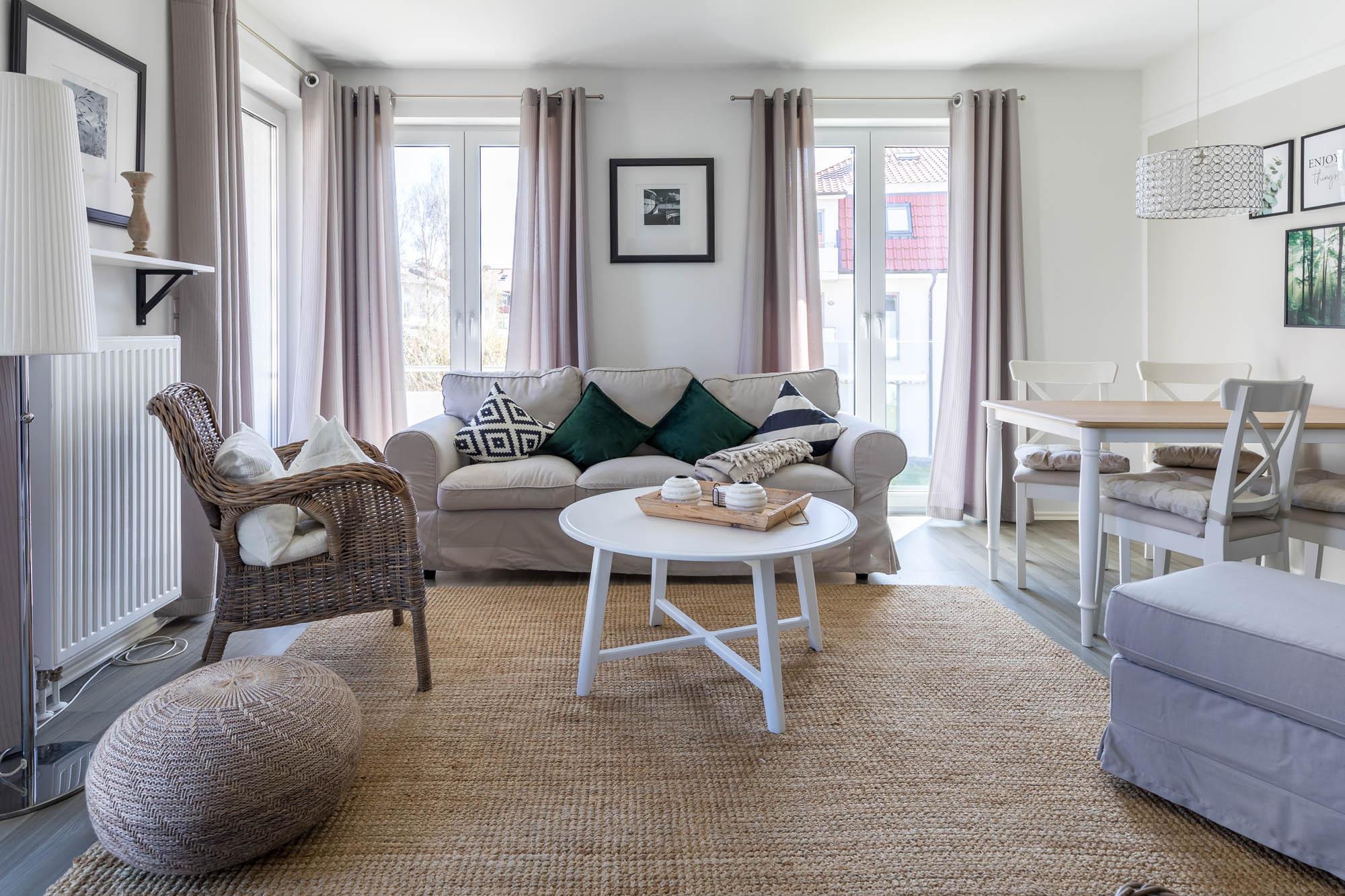 Die strandnahe 3-Zimmer-Wohnung hat eine Größe von 56qm und ist für 4 Gäste in hellem Landhausstil eingerichtet.