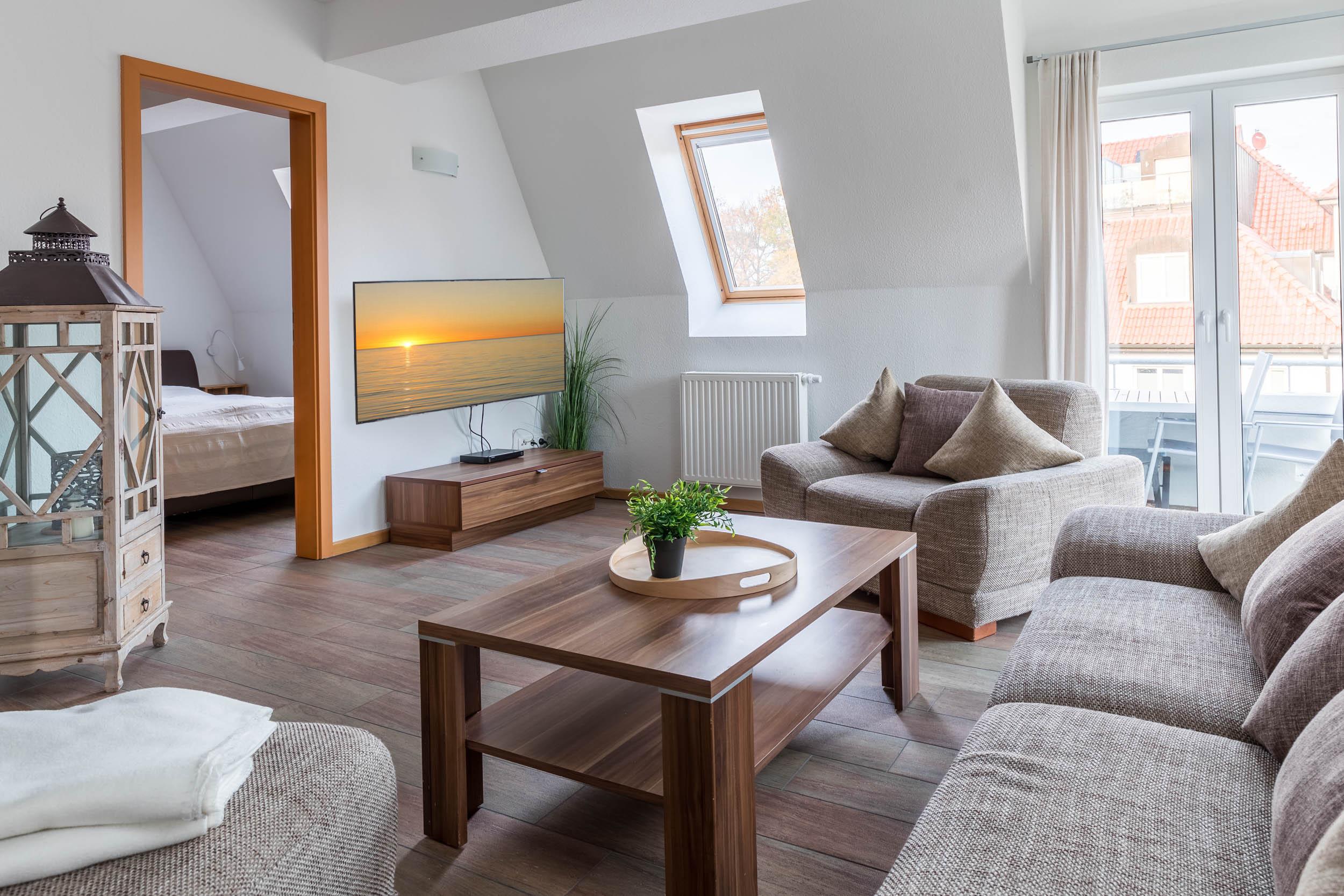 Für einen erholsamen Familienurlaub an der Ostsee ist diese großzügige 3-Zimmer-Maisonettewohnung für 4 Gäste mit Fahrstuhl [&] WLAN einfach ideal.