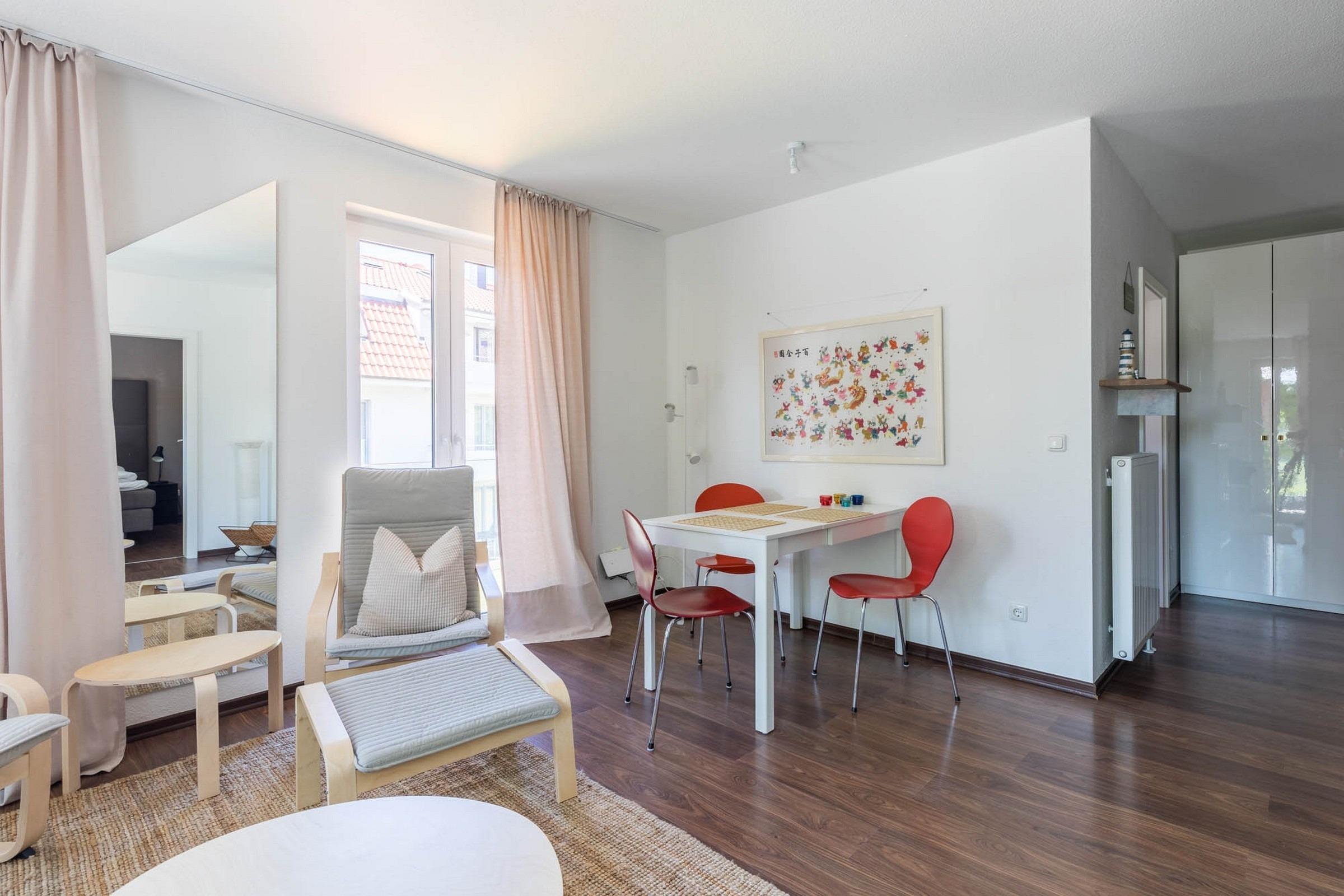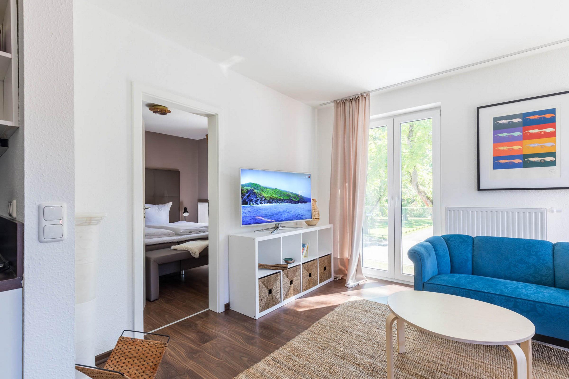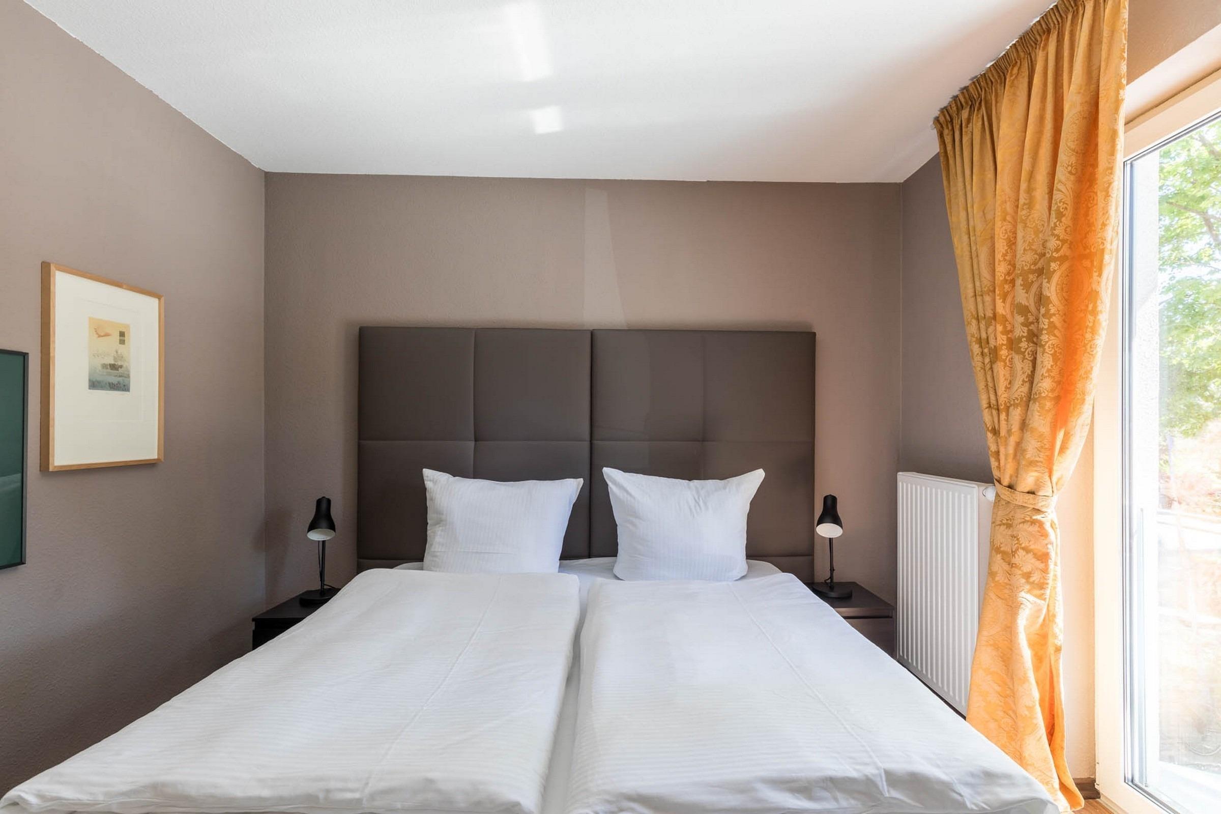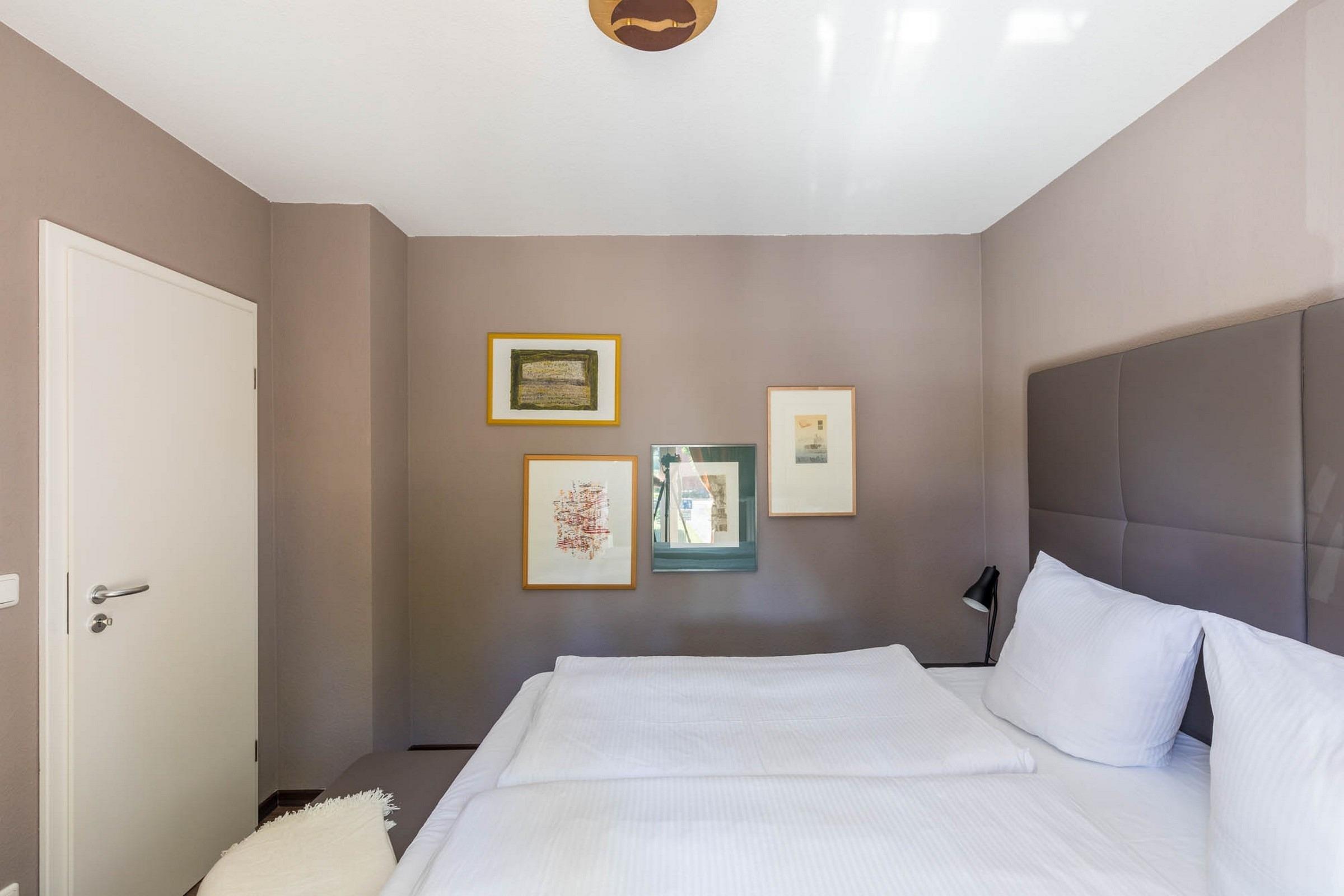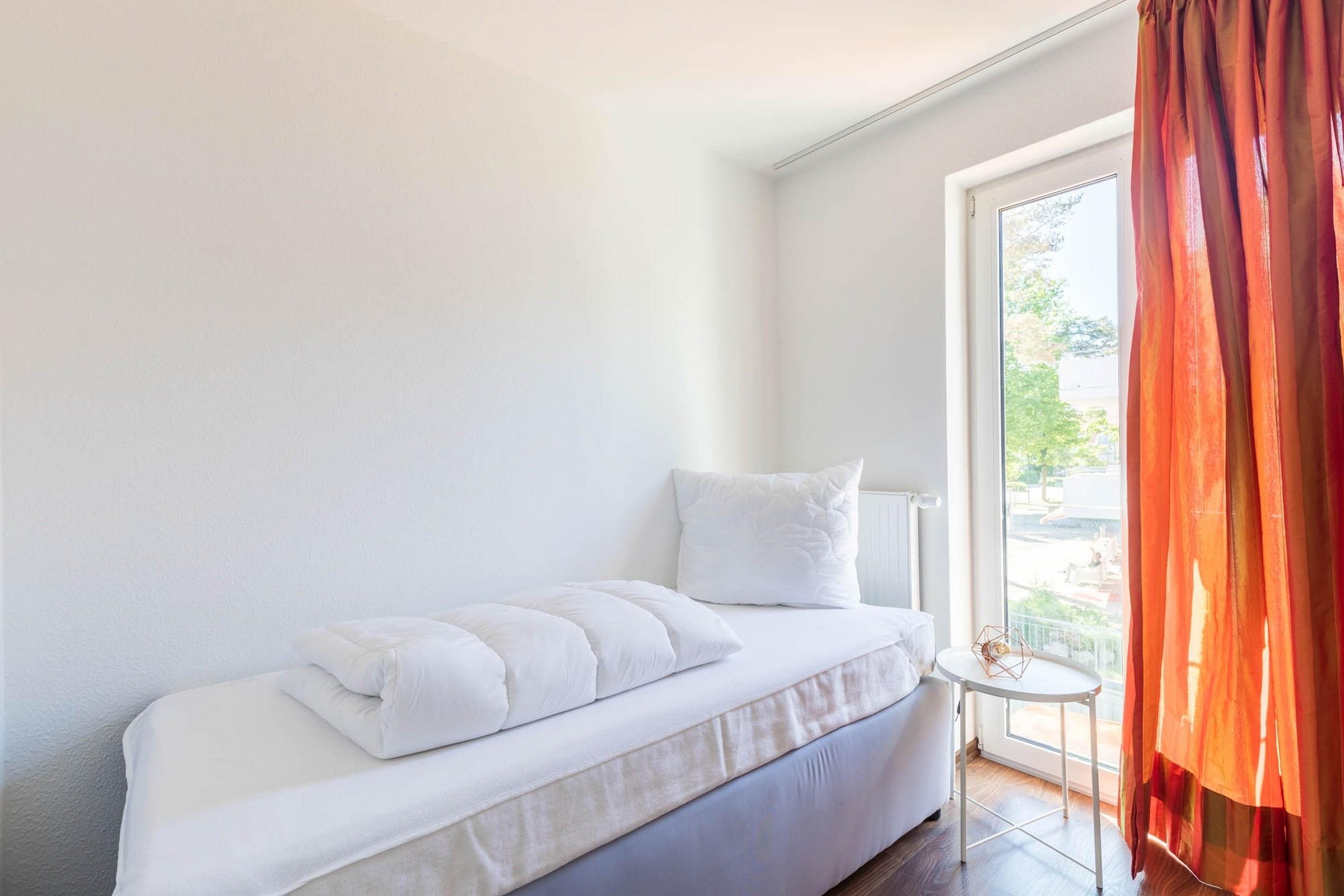 Die Wohnung verfügt über zwei Schlafzimmer, so dass bis zu 3 Gäste problemlos untergebracht werden können: Ein Schlafzimmer ist mit einem bequemen hochwertigen großen Boxspringbett ausgestattet, das andere mit einem Einzelbett.