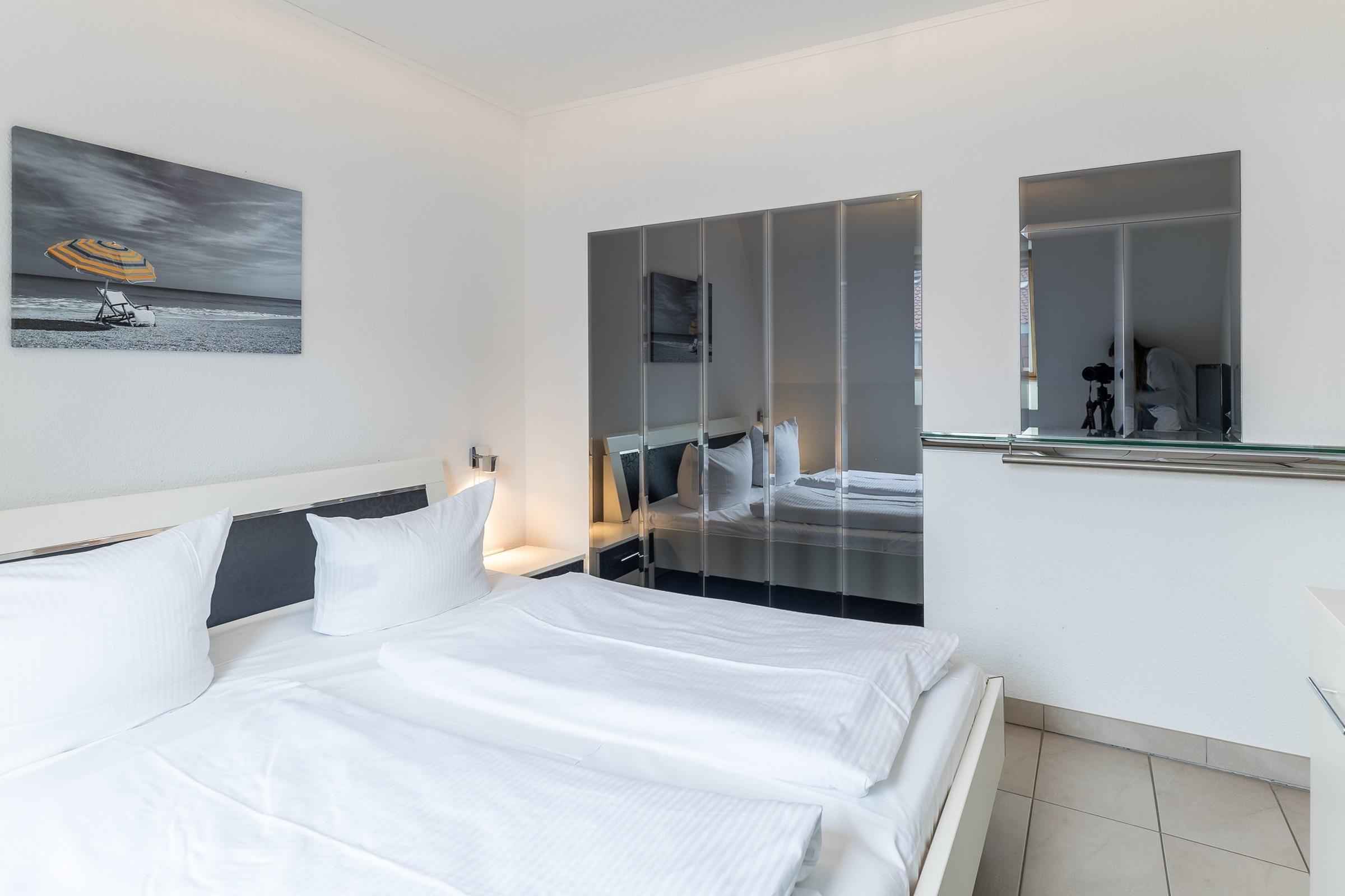 Im Schlafzimmer steht Ihnen ein gemütliches Doppelbett, Kommode und zweites TV-Gerät zur Verfügung.