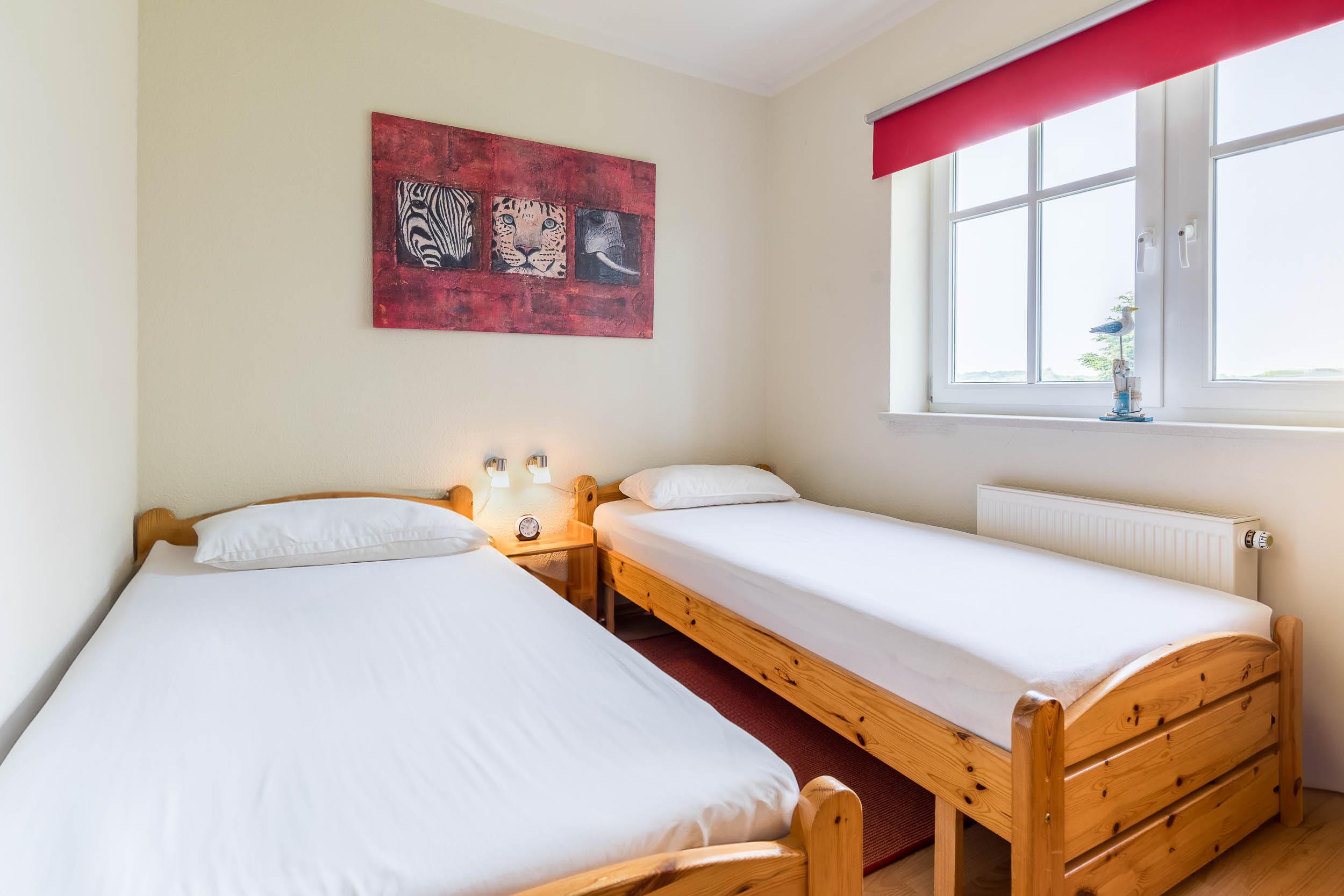 Schlafzimmer zum Träumen: Zwei separate Schlafzimmer sorgen für eine erholsame Nachtruhe. Das größere Schlafzimmer ist mit einem komfortablen Doppelbett und einem geräumigen Kleiderschrank ausgestattet, während das Gästezimmer zwei gemütliche Einzelbetten und ebenfalls einen Kleiderschrank bereithält.