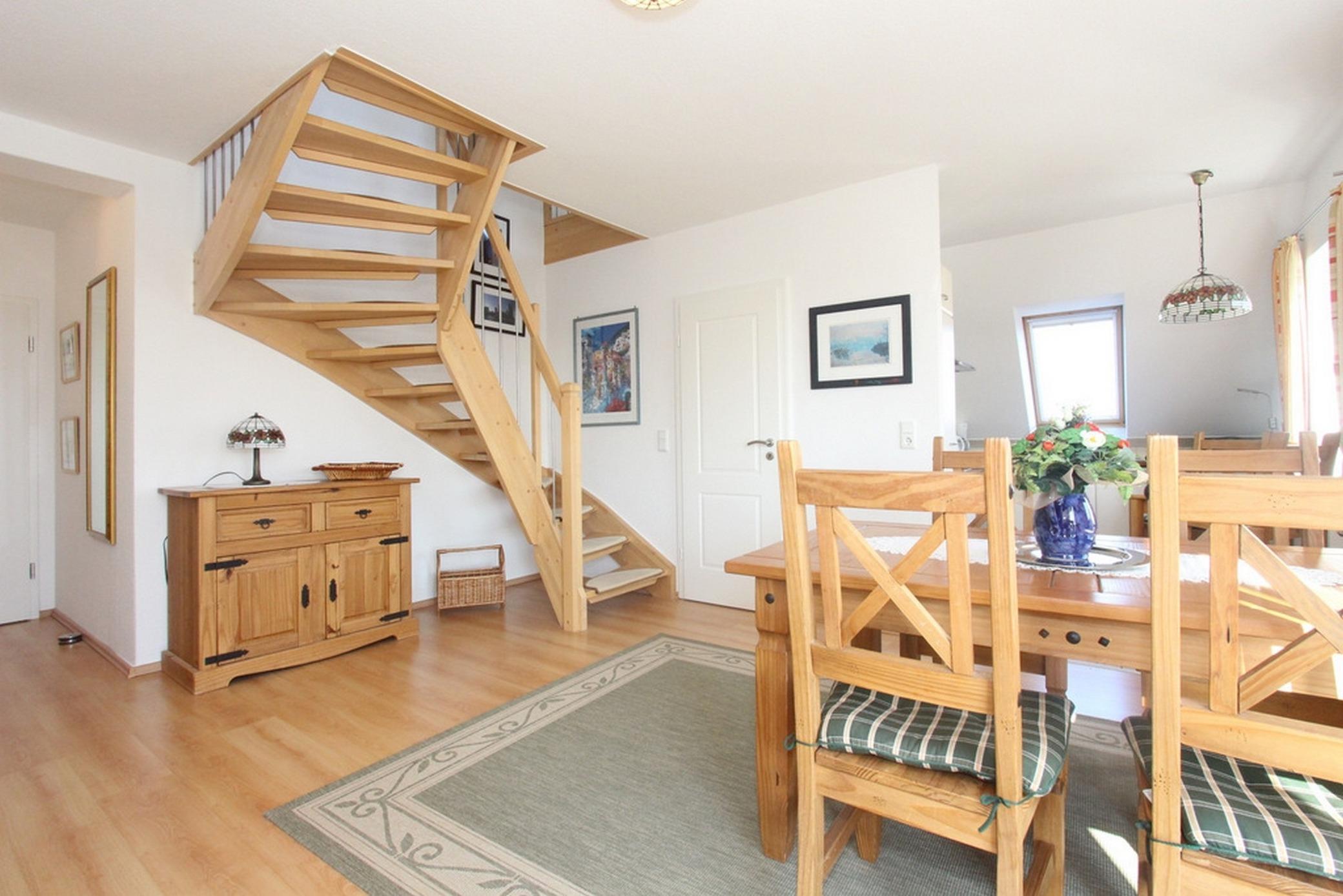 Die gemütliche 2-Zimmer-Wohnung im 1.OG erstreckt sich mit 75qm Wohnfläche über 2 Ebenen und bietet genügend Platz für bis zu 4 Gäste.