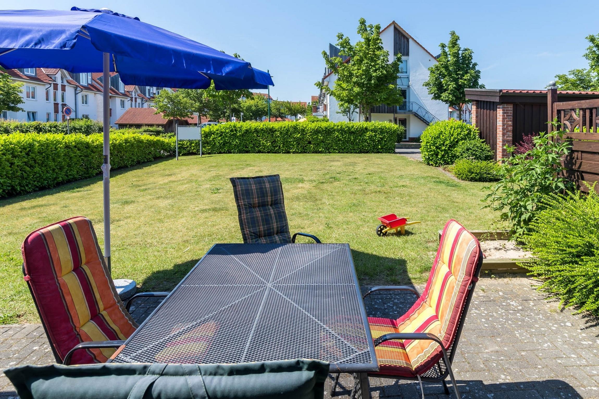 Im Garten gibt es einen Sandkasten mit Spielzeug. Nutzen Sie gern auch den Bollerwagen, um Ihren schönen Urlaubsort zu erkunden.