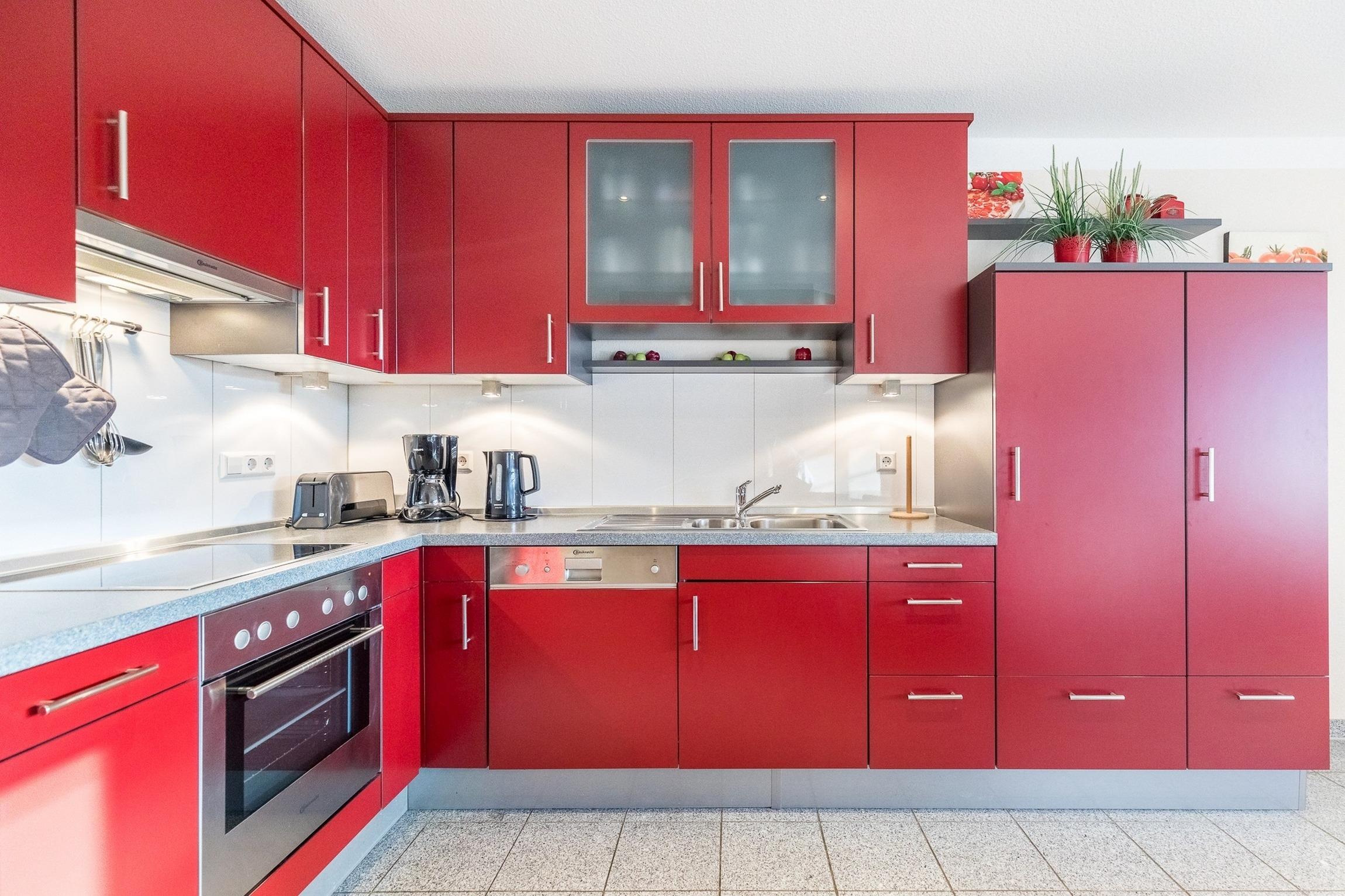 Die offene Küche hat mit Geschirrspüler, Kaffeemaschine, Backofen und vielen weiteren Geräten alles, was eine gut ausgestattete Küche braucht. Für die Ausstattung mit Besteck und Geschirr ist natürlich ebenfalls gesorgt.