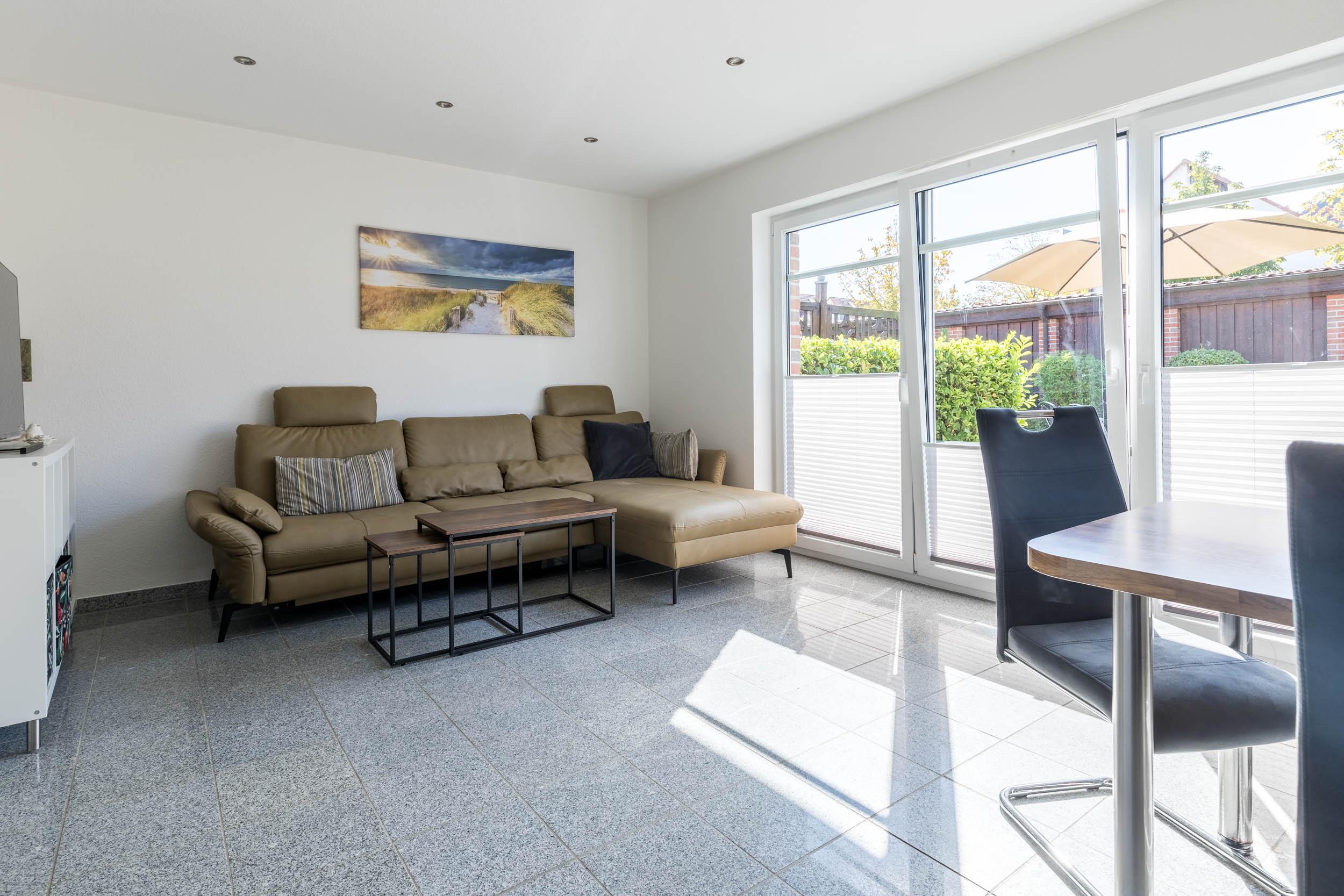 Mit etwa 80 m² zählt diese komfortabel und kinderfreundlich gestaltete 3-Zimmer-Wohneinheit im Erdgeschoss mit Terrasse schon zu den etwas größeren Ferienwohnungen.