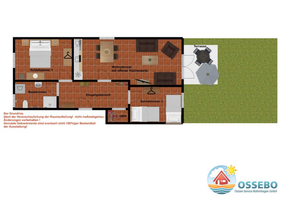 Die Nichtraucherwohnung in Boltenhagen ist gehbehindertenfreundlich, senioren- und familiengerecht. Das Grundstück ist von grüner Hecke (kein Zaun!) umgeben und bietet dadurch mehr Sichtschutz.