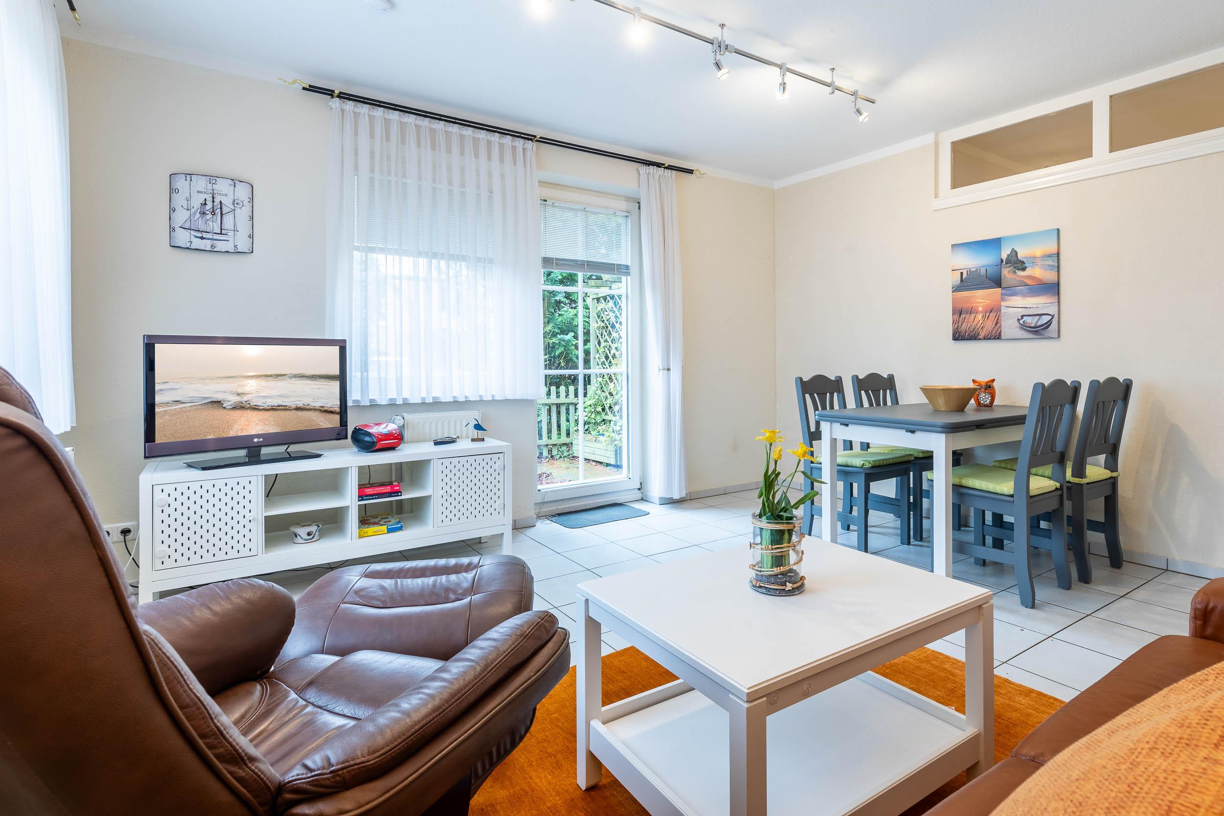 Die Wohnung im Landhausstil bietet im Wohnbereich einen Sessel, ein Sofa, welches auch als Schlafcouch genutzt werden kann (Liegefläche 140x200cm).