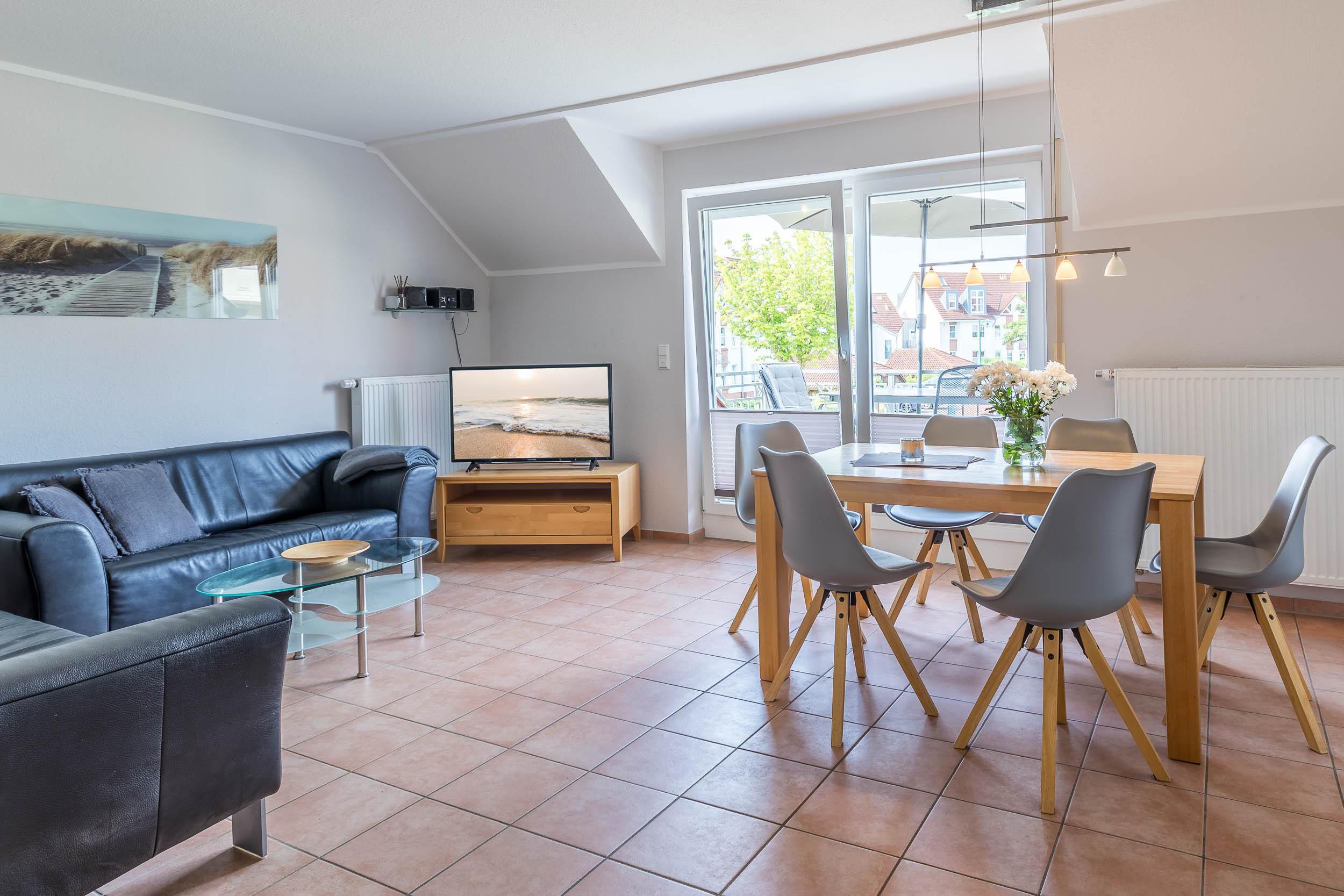 Diese Ferienwohnung in Boltenhagen mit 3 Schlafzimmern auf zwei Ebenen bietet Platz für die ganze Familie bis 6 Personen und ist auf kleine Gäste eingestellt.