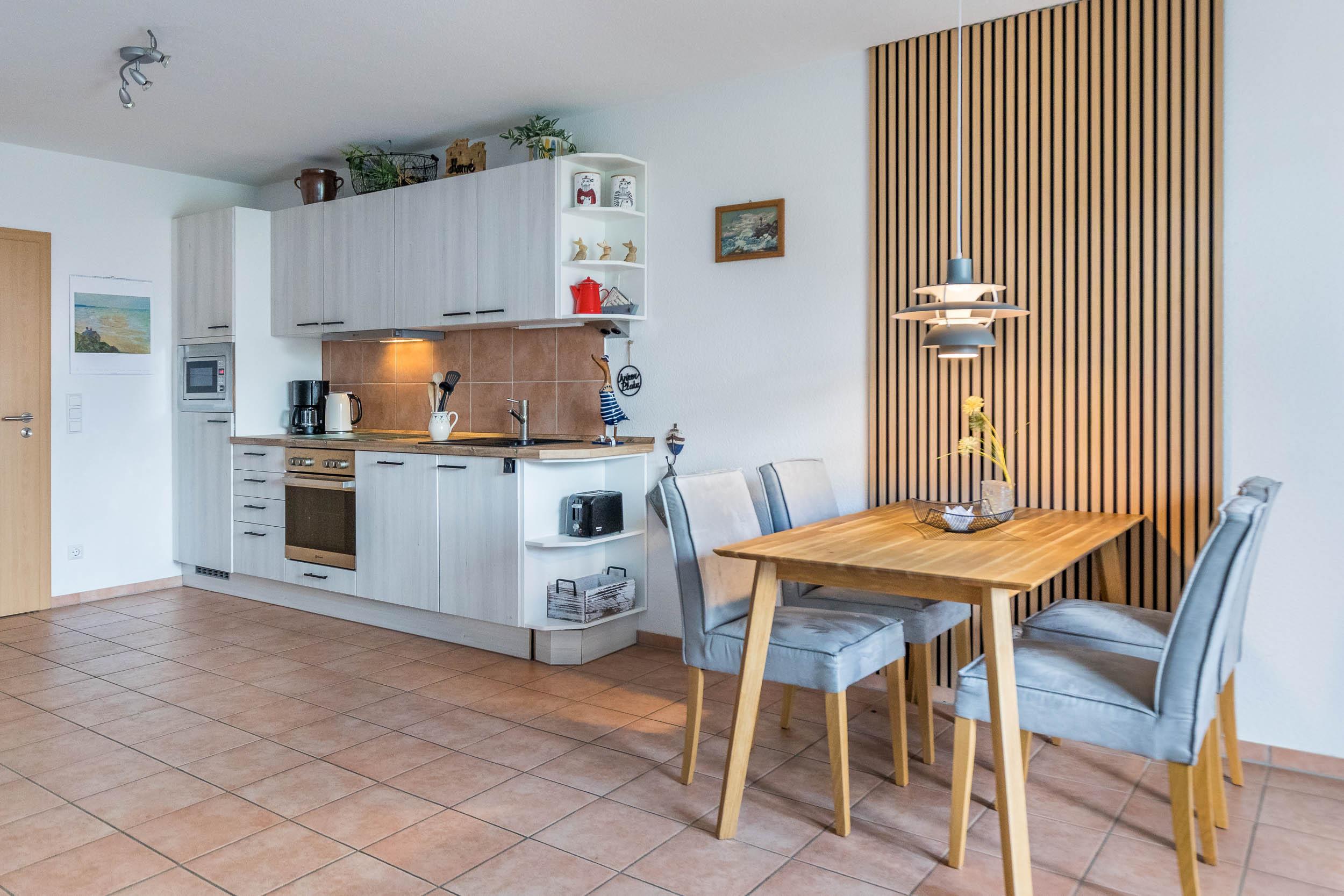 Gemütliche 2-Zimmer-Ferienwohnung mit WLAN die für 3 Gäste in Boltenhagen Zentrum durch ihre Lage im Erdgeschoss mit Südterrasse für Paare, Senioren oder Haustierbesitzer bestens geeignet ist.