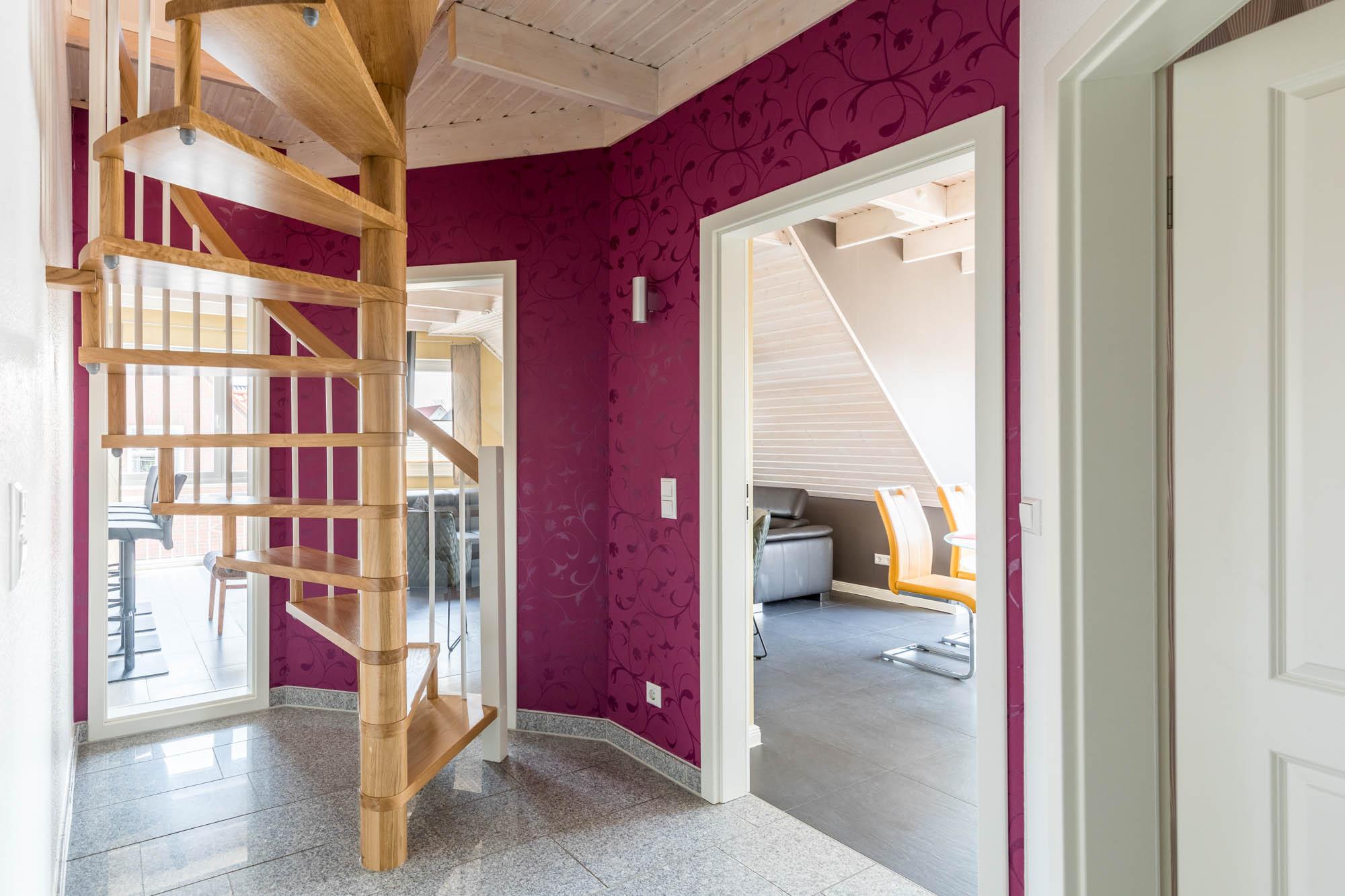 Die sehr moderne und stilvolle 4-Zimmer-Ferienwohnung bietet im 1.OG auf 2 Etagen auf 100qm Wohnfläche Platz für 6 Gäste + Kleinkind.