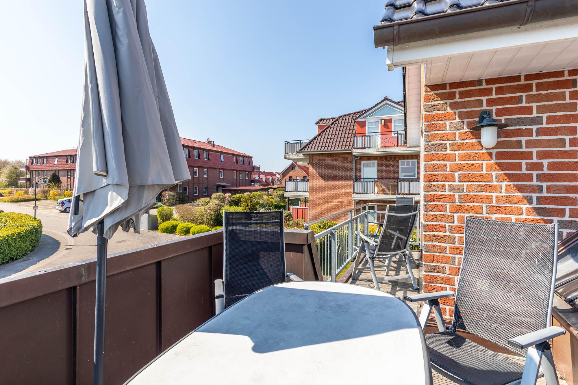 Genießen Sie auf dem angrenzenden, möblierten Südwest-Balkon, Richtung Rosenweg, die schöne Ostseeluft.