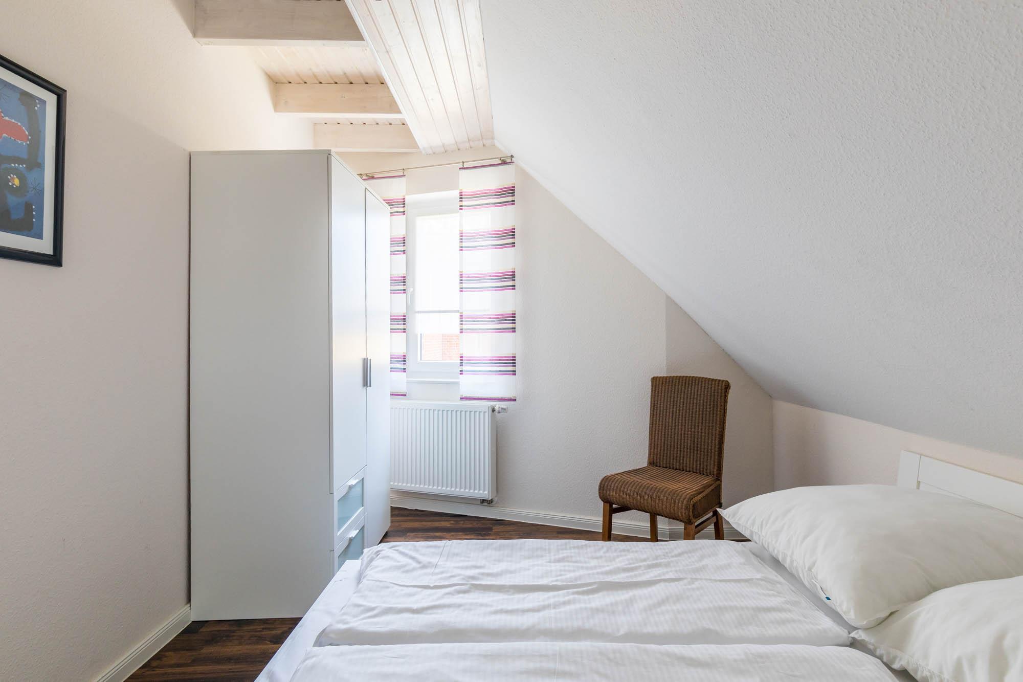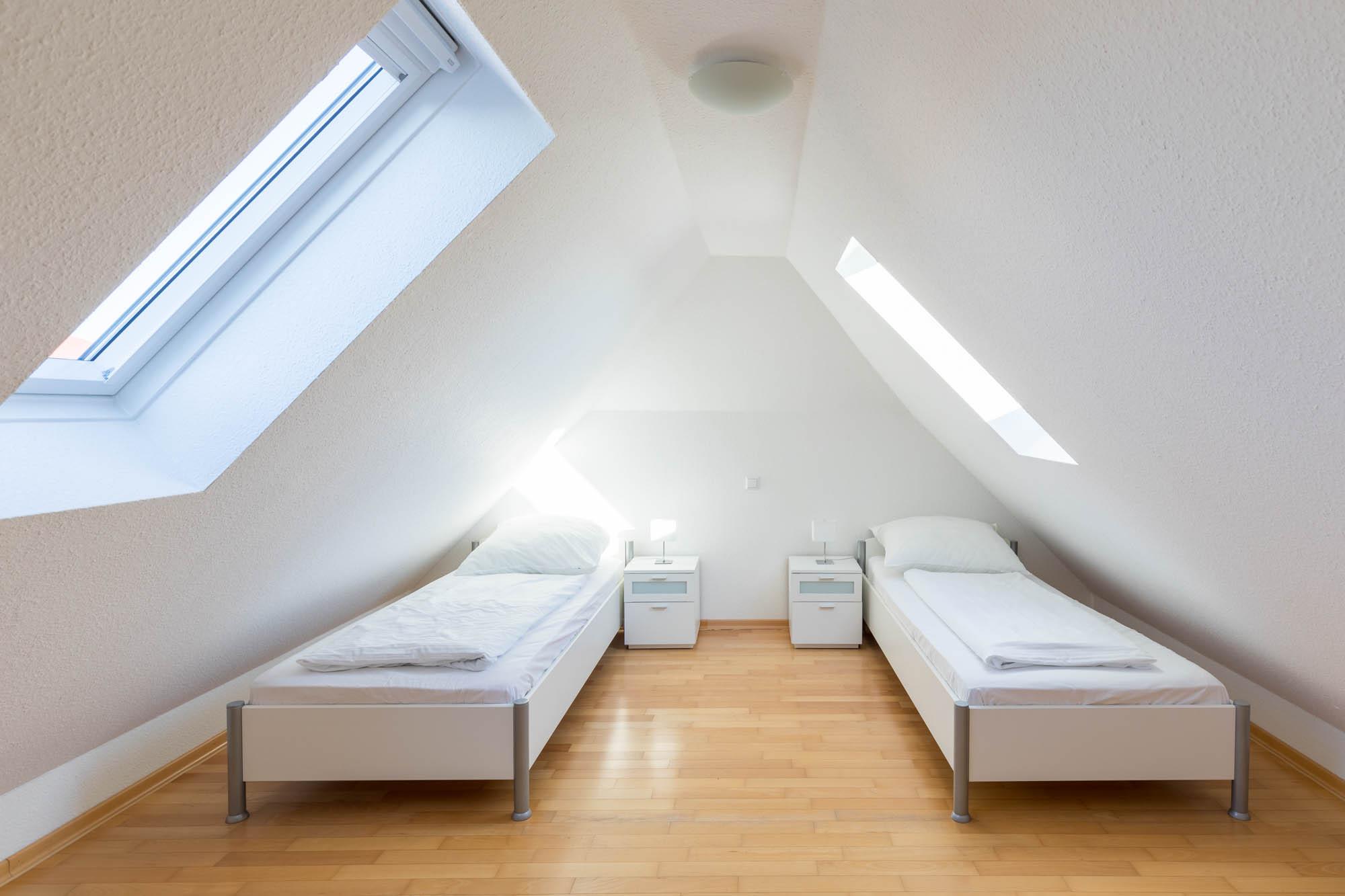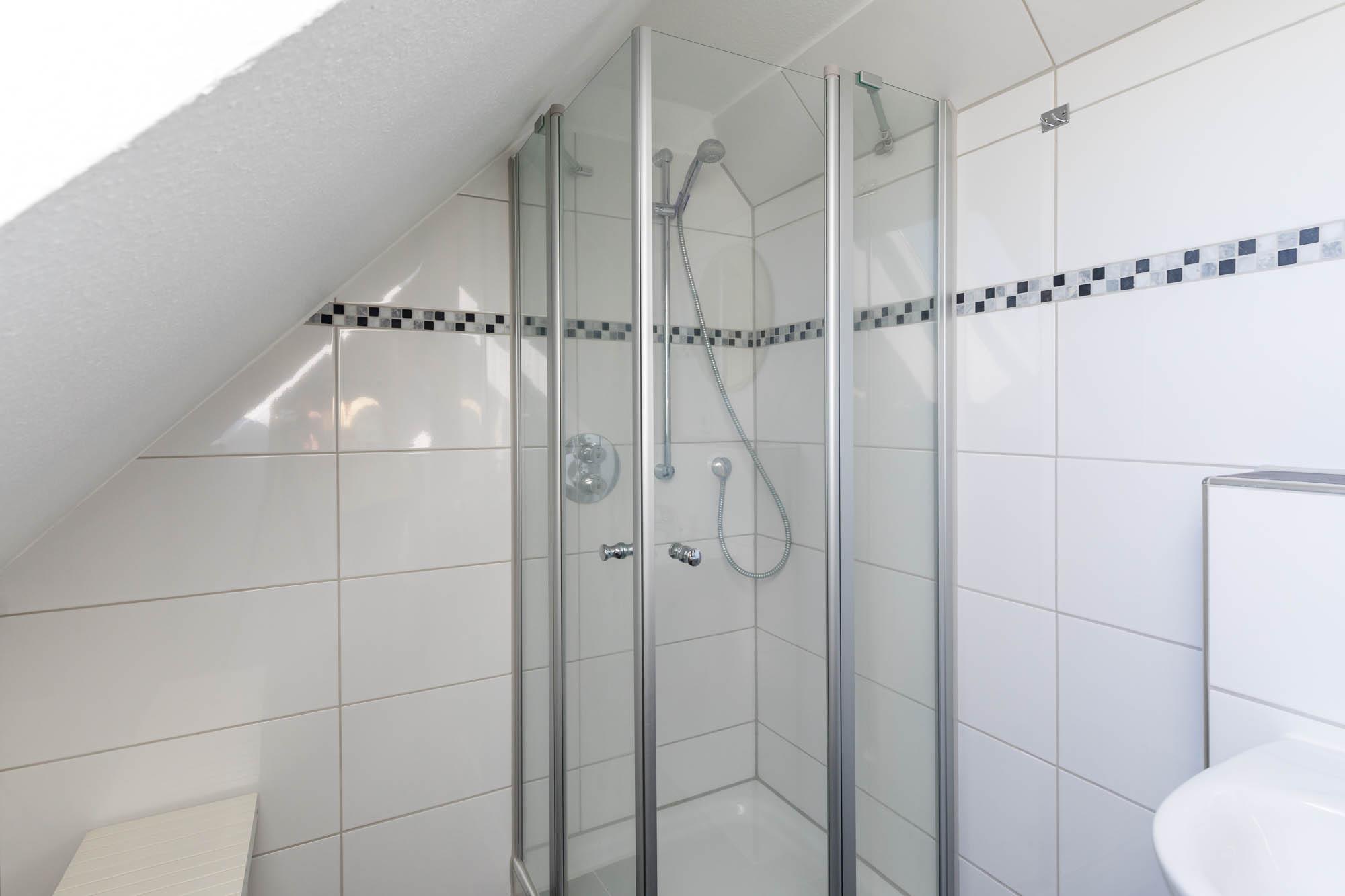 In der oberen Wohnebene, im DG befinden sich ein Gäste-/ Kinderzimmer mit zwei Einzelbetten und ein weiteres Duschbad.