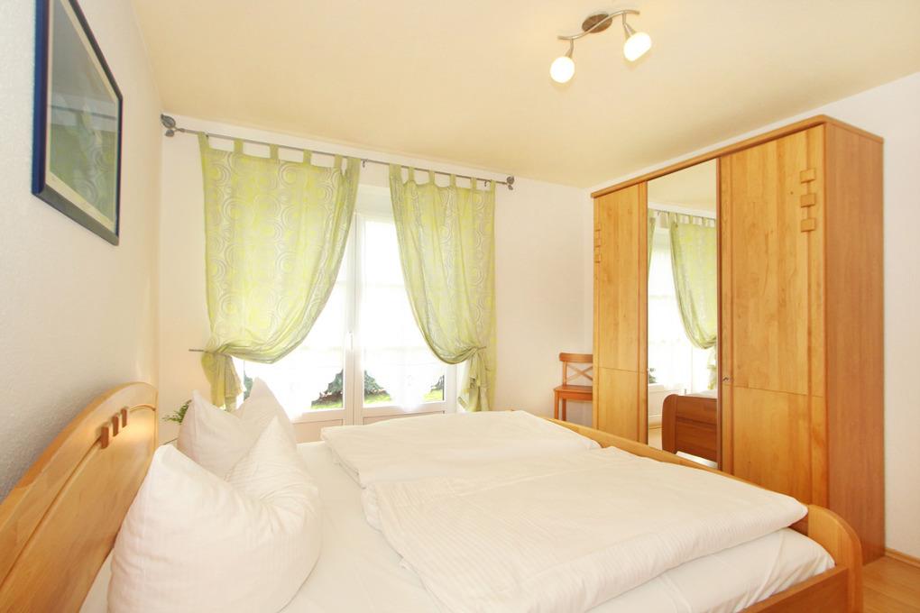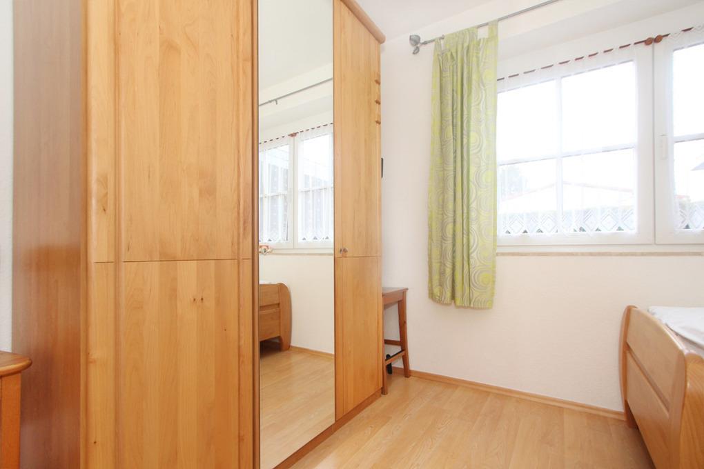 Die Ferienwohnung ist mit 2 Schlafräumen ausgestattet: Im Schlafzimmer befindet sich ein bequemes Doppelbett (180x200cm/ Höhe 56cm), das Gästezimmer ist mit zwei Einzelbetten (je 100x200cm/ Höhe 56cm) eingerichtet, alle Lattenroste sind verstellbar. Auch einen Kleiderschrank finden Sie in jedem Schlafzimmer.