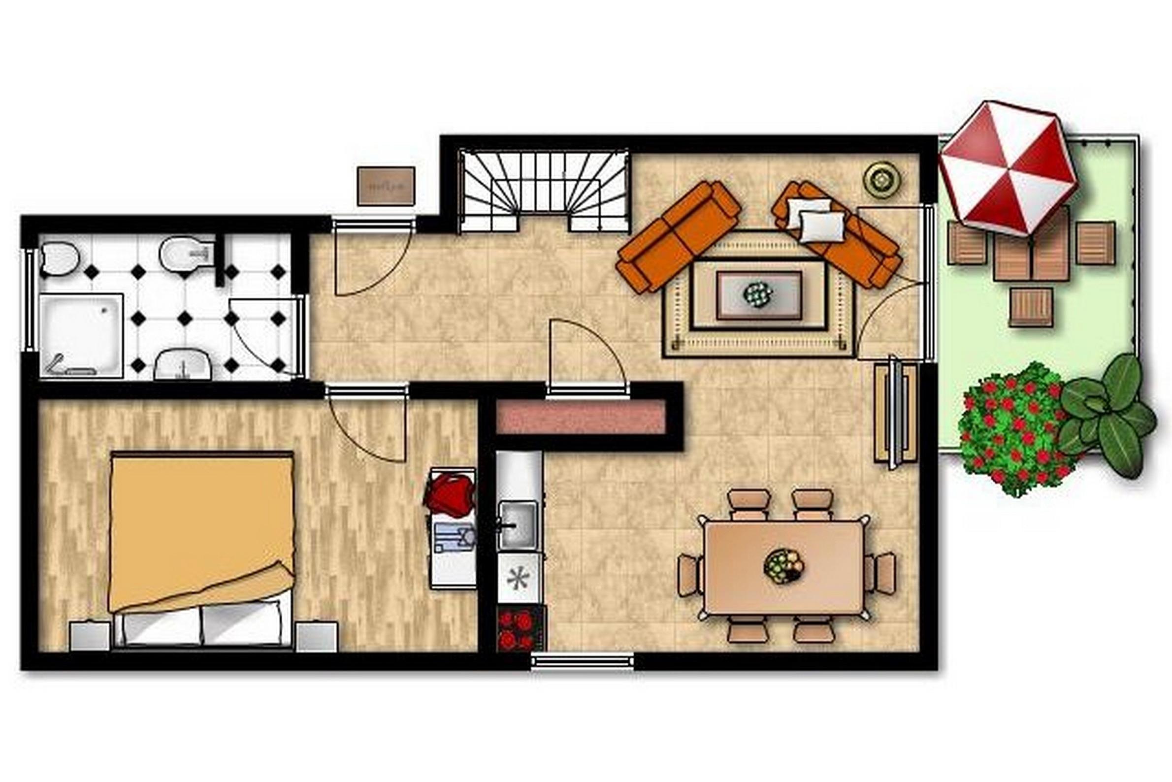 In der ersten Wohnebene finden Sie einen gemütlichen Wohnbereich mit zwei bequemen Couchelementen, modernem SAT-TV (Flatscreen), DVD-Player und Musikanlage. Vom Wohnbereich aus gelangen Sie auch auf den möblierten Südbalkon, der einen herrlichen Ausblick in die Natur bietet.