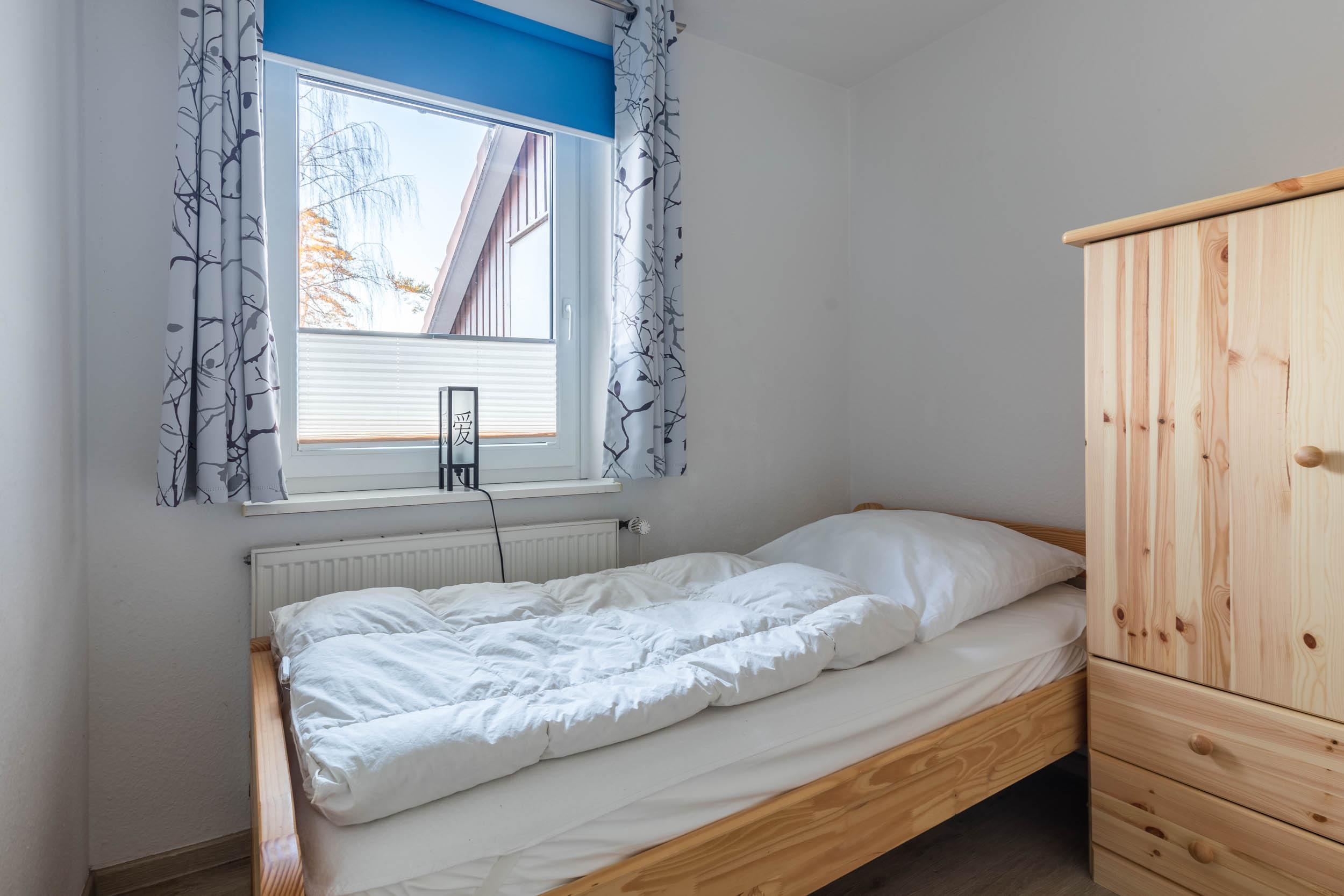Im Gästezimmer auf derselben Etage befinden sich zwei Einzelbetten. Ein kleiner Kleiderschrank kann gern als Ablage für die Urlaubsgarderobe genutzt werden.