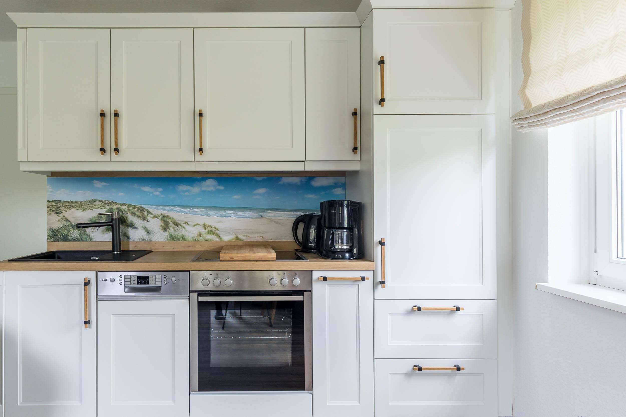 Die Küchenzeile bietet unter anderem Herd, Backofen, Spülmaschine, eine Kaffeemaschine uvm. für eine sorgenfreie Selbstverpflegung.