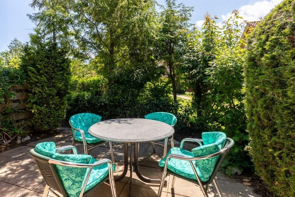 Von hier aus gelangen Sie direkt auf die möblierte Süd-Terrasse. Eine schöne Hecke schützt vor neugierigen Blicken.
