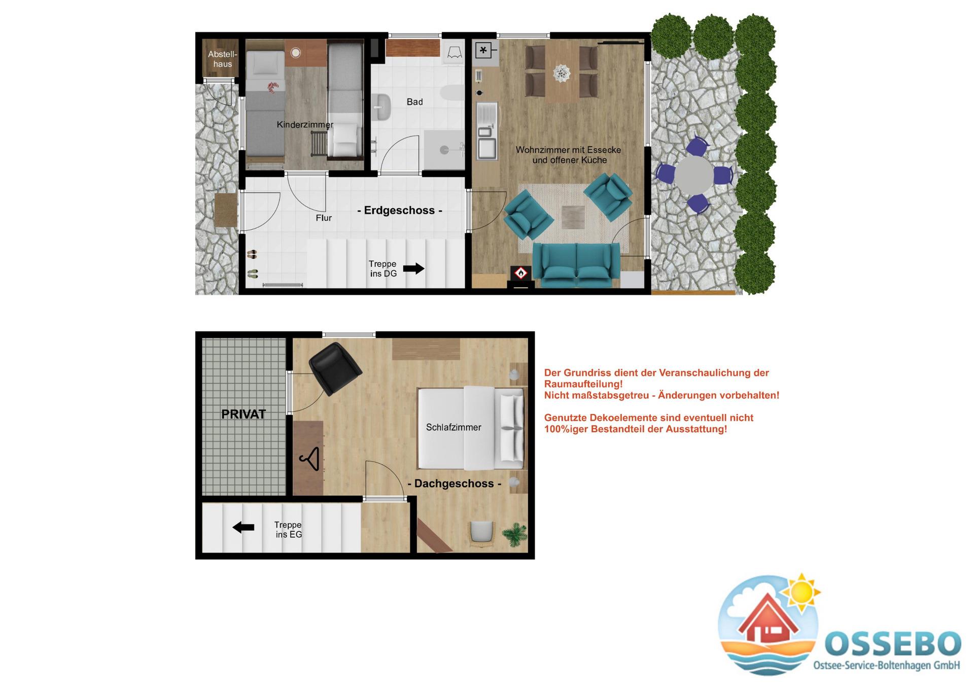Das 3-Zimmer-Reihenendhaus verfügt über 60qm Wohnfläche, die sich über 2 Etagen erstrecken und bietet eine familienfreundliche Einrichtung für max. 5 Gäste + Kleinkind.