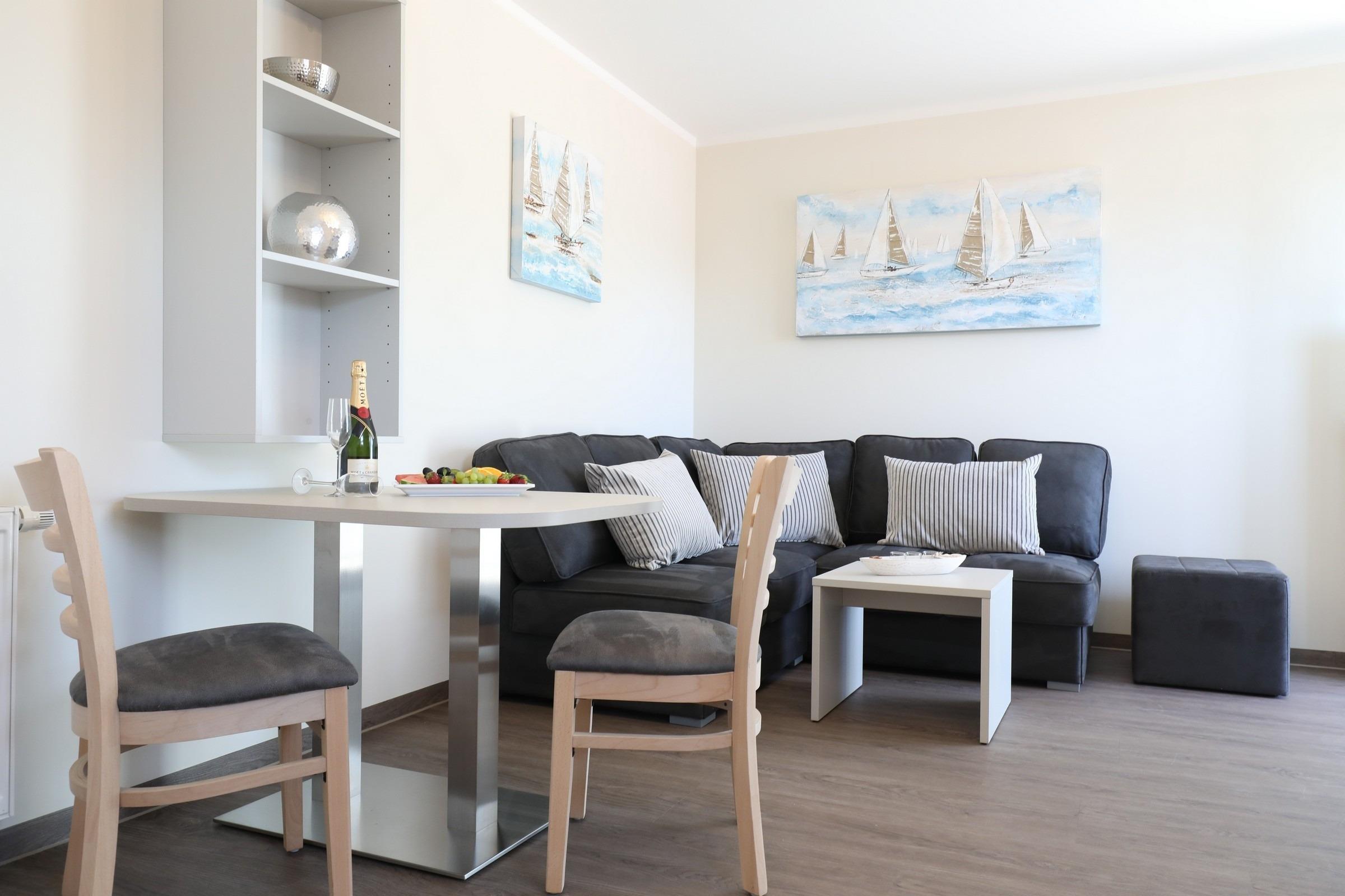 Die schöne 2-Zimmer-Ferienwohnung "Moin" befindet sich im EG und verfügt auf ca. 42qm Wohnfläche über eine moderne Ausstattung für 2 Gäste.