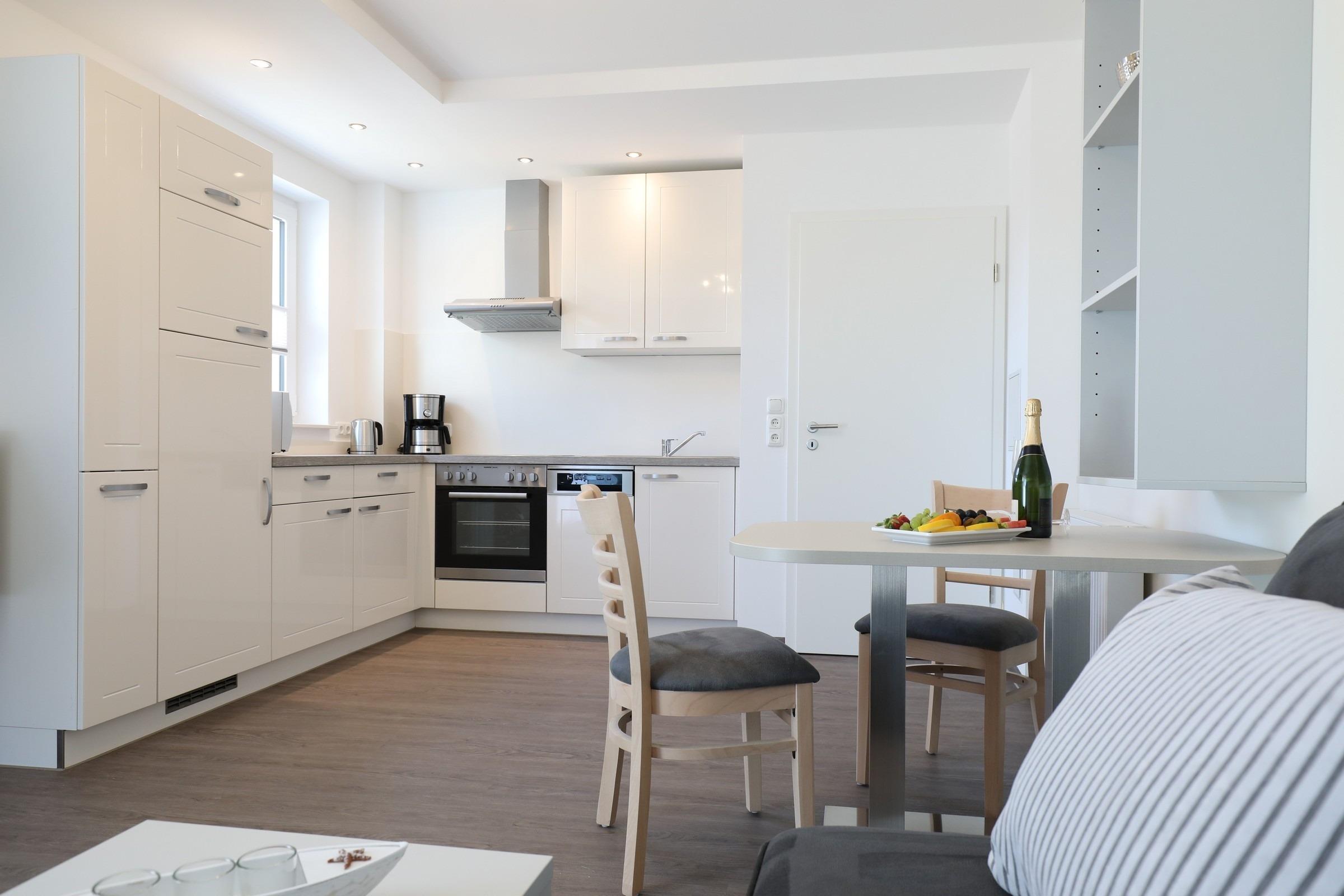 Zur gut ausgestatteten Wohnküche gehört auch ein schöner, separater Essbereich für Zwei.