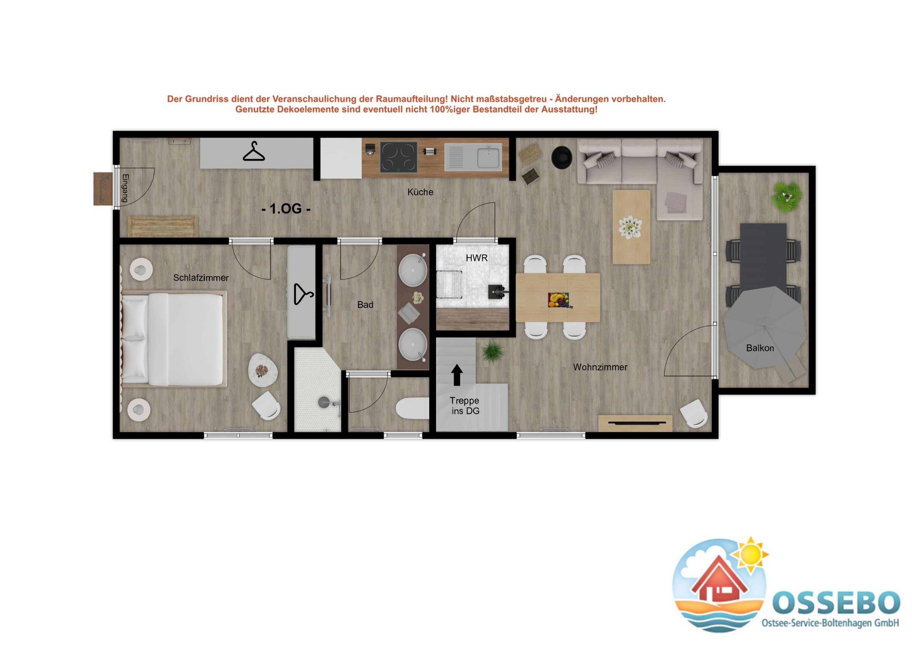 Bei unserer großzügigen 4-Zimmer-Ferienwohnung im 1.OG handelt es sich um eine schicke Maisonette, die sich mit 68qm Wohnfläche über zwei Wohnebenen erstreckt.