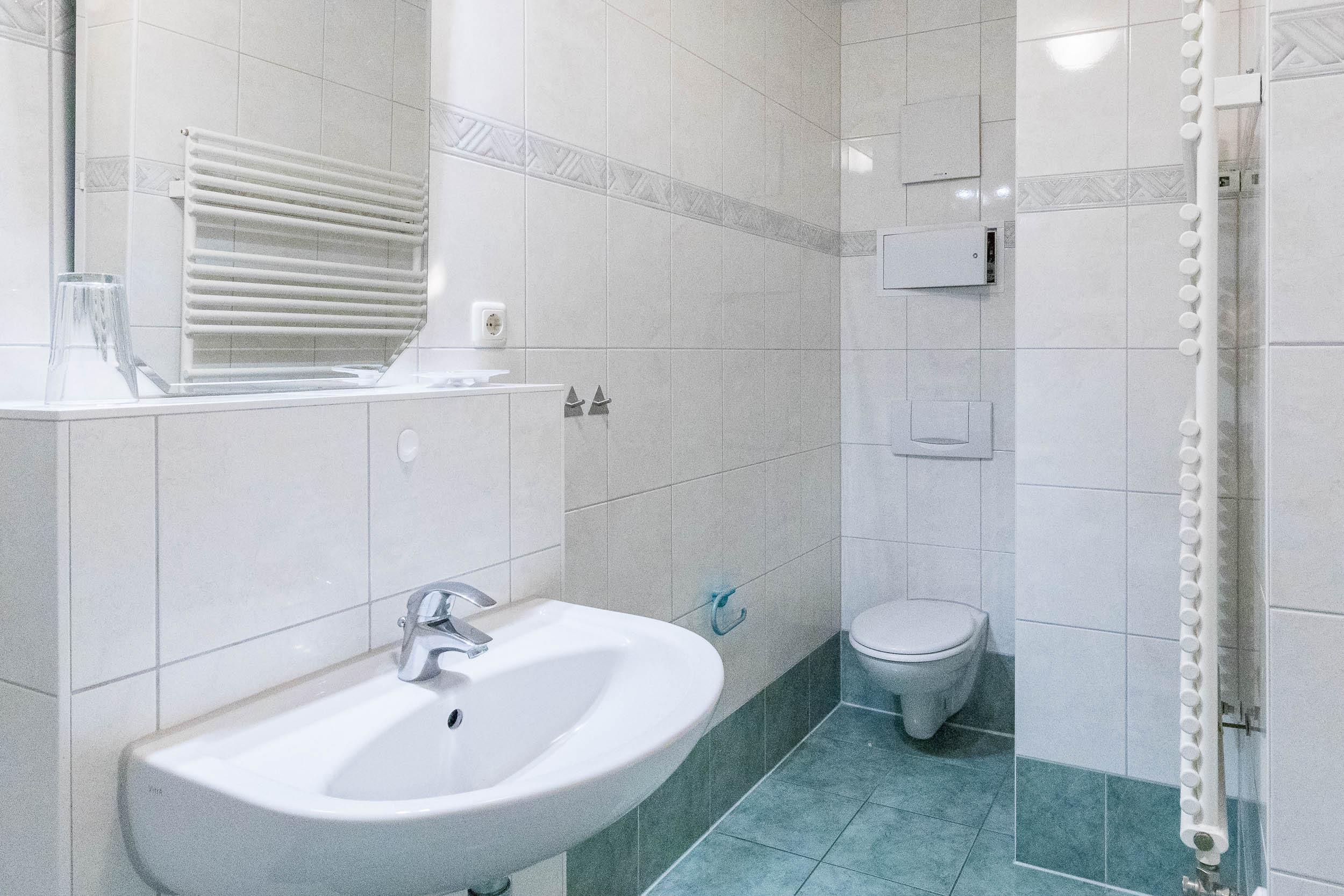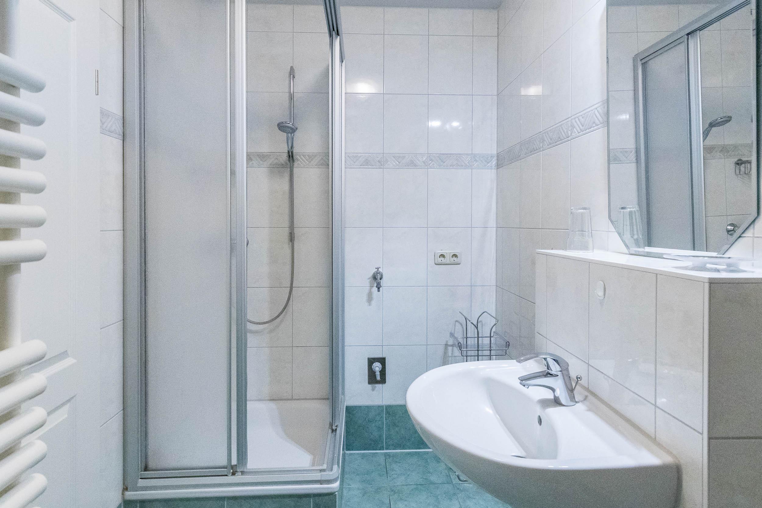 Das Bad mit Dusche, WC und Waschbecken komplettiert die Wohnung.