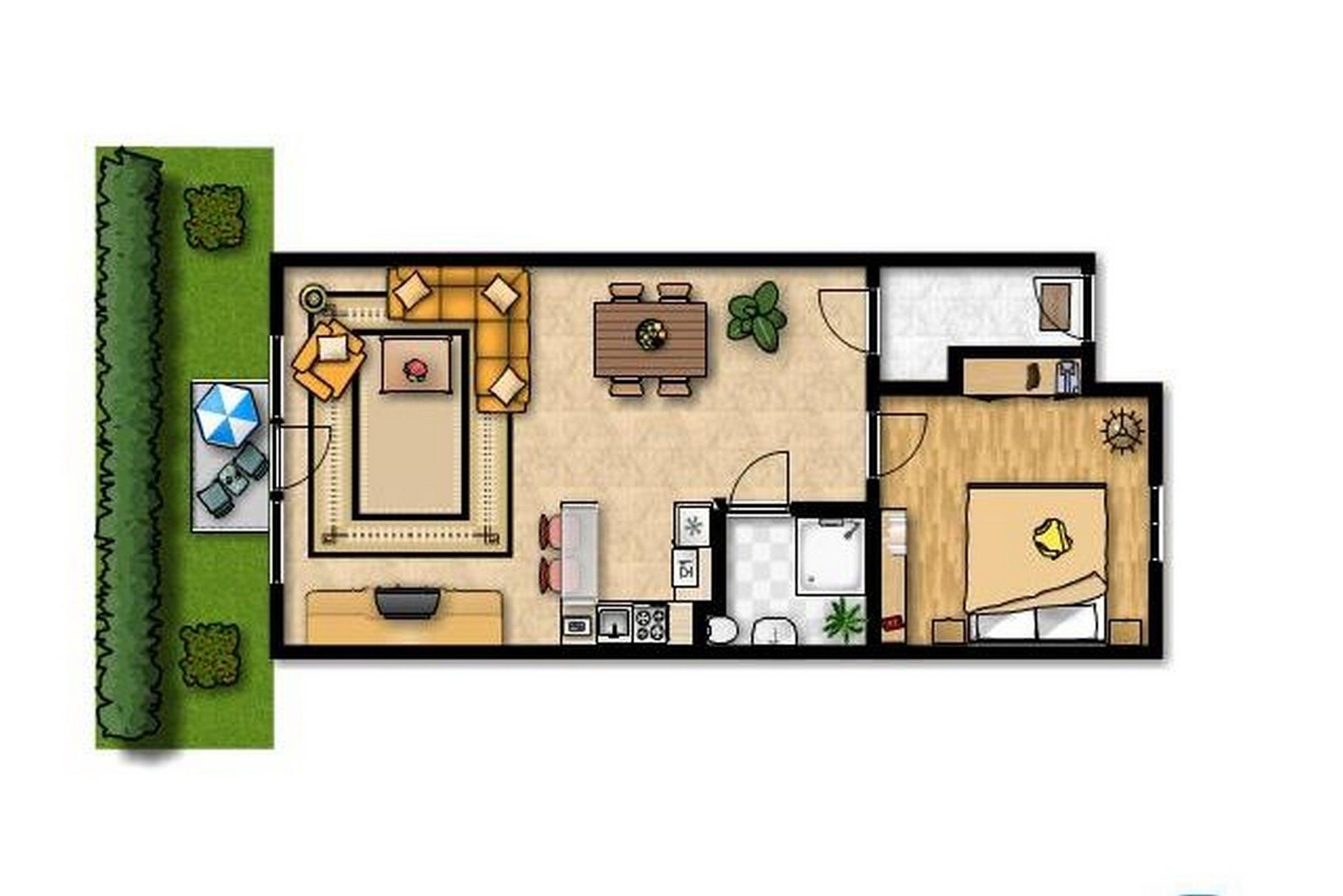Das rund 66qm große 2-Zimmer-Ferienwohnung liegt im Erdgeschoss und bietet eine Ausstattung für bis zu 4 Gäste. Sie erreichen die Wohnung vom Innenhof über einen eigenen Eingang.