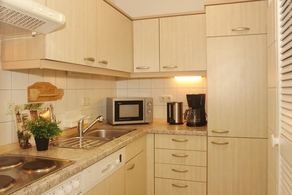 In der offenen Küche finden Sie alles, was sie brauchen: einen Geschirrspüler, eine Mikrowelle, einen Kühlschrank mit Gefrierfach, einen Herd bzw. Backofen und vieles mehr. Ihre Mahlzeiten können Sie bequem an der separaten Essecke einnehmen.