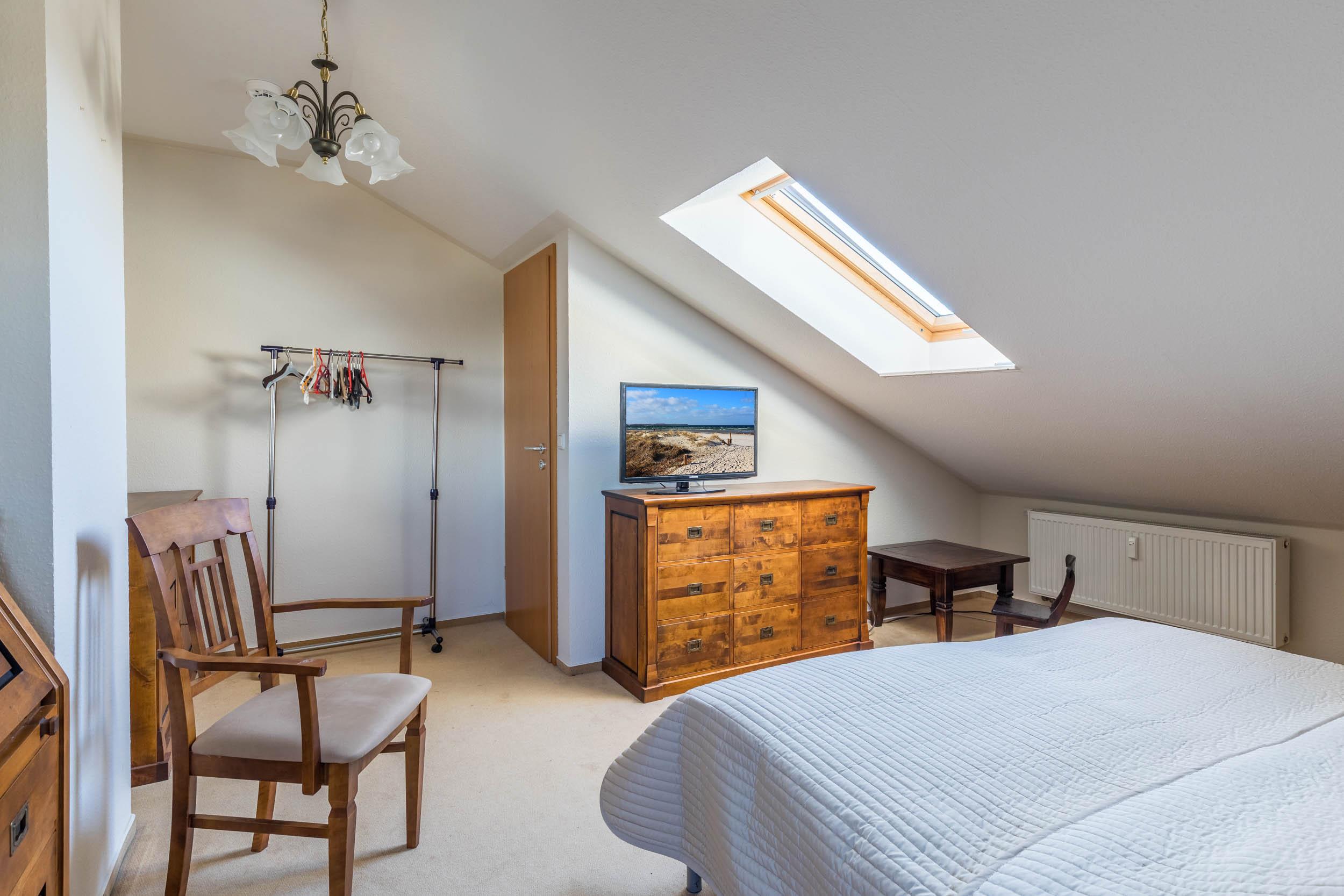 Über diese Galerie erreichen Sie das dritte Schlafzimmer. Dieses ist mit einem Doppelbett (180x200cm), Kommode, Kleiderstange und einem wunderschönen Sekretär ausgestattet. Auch ein Flatscreen-TV steht hier für Ihre Unterhaltung bereit.