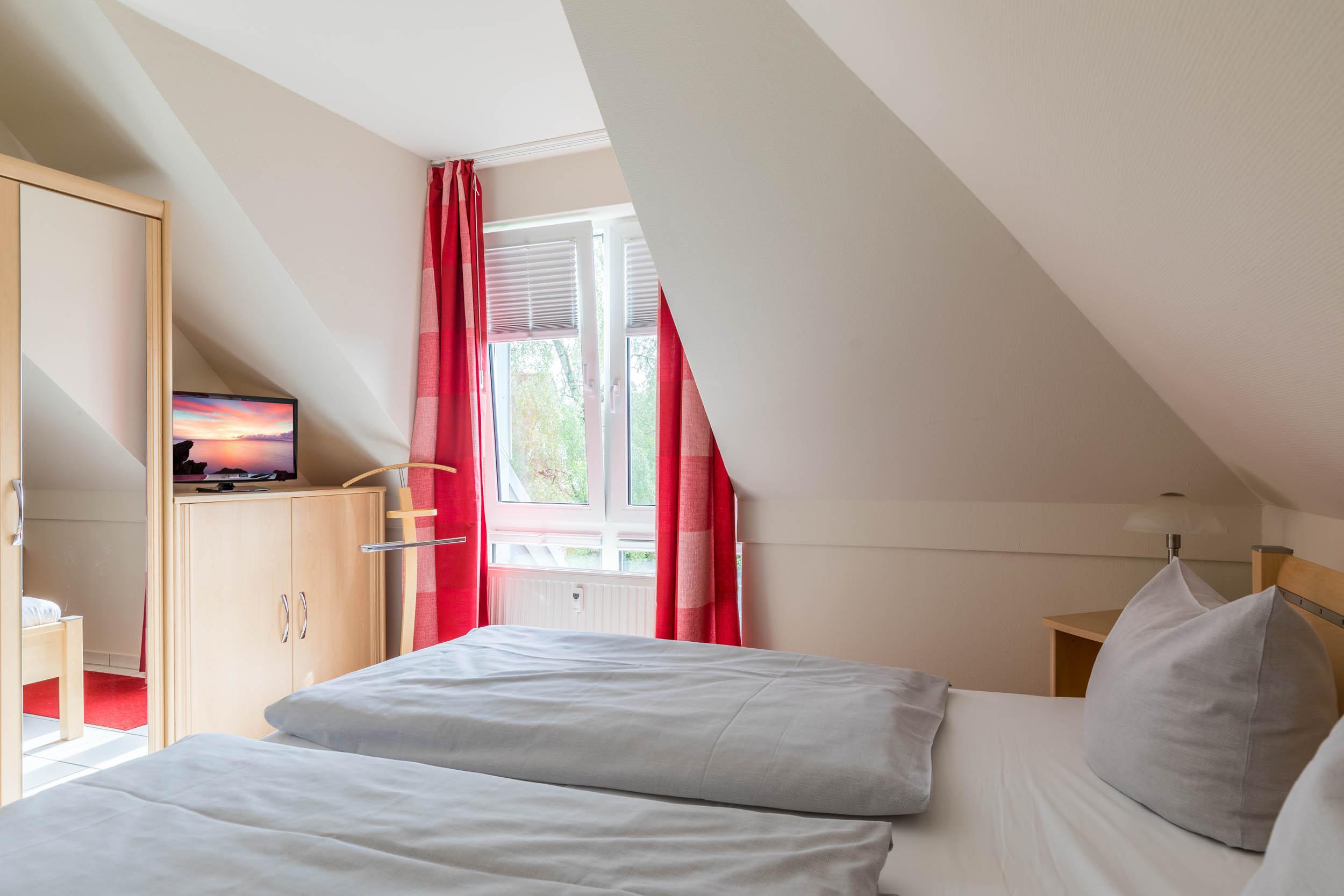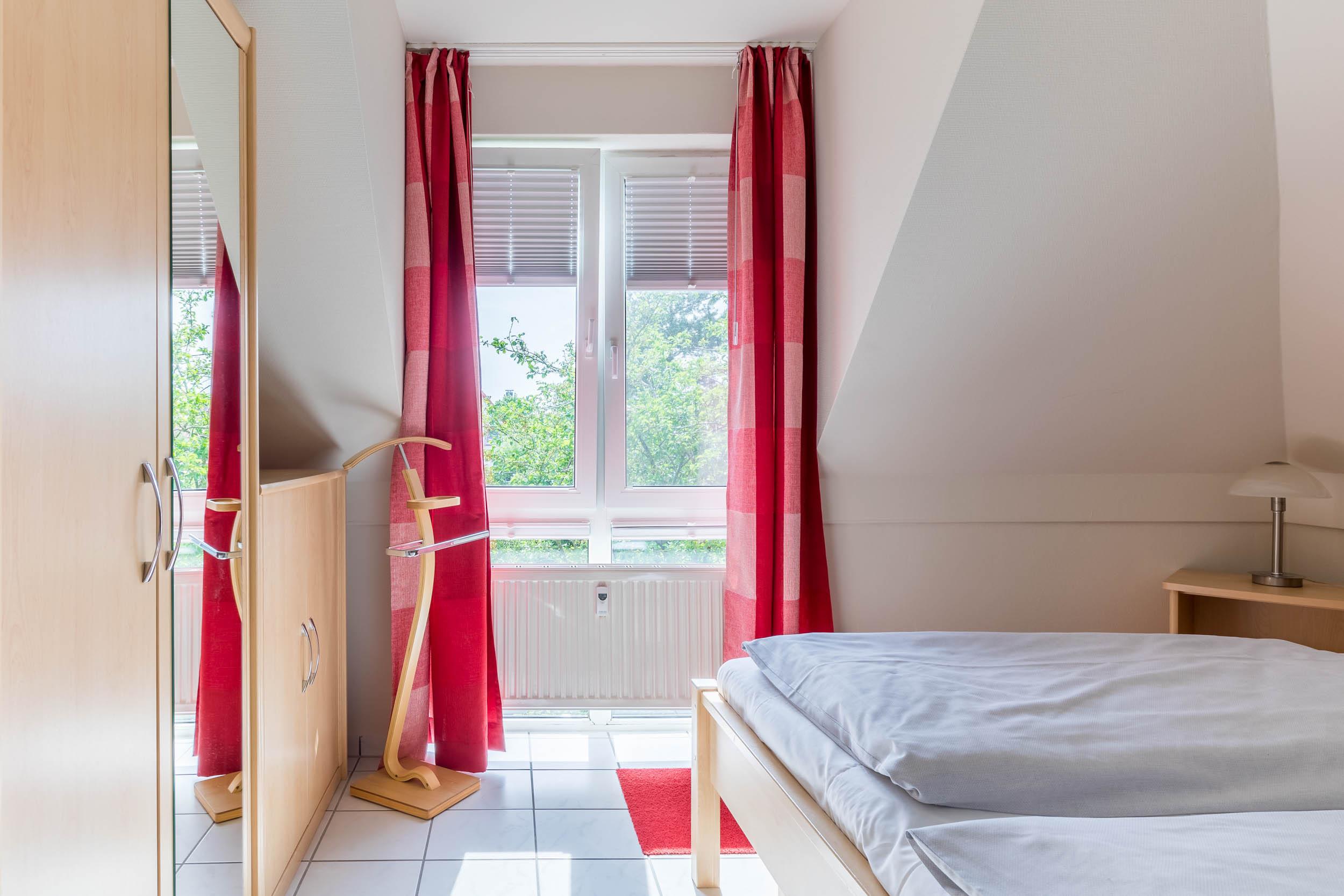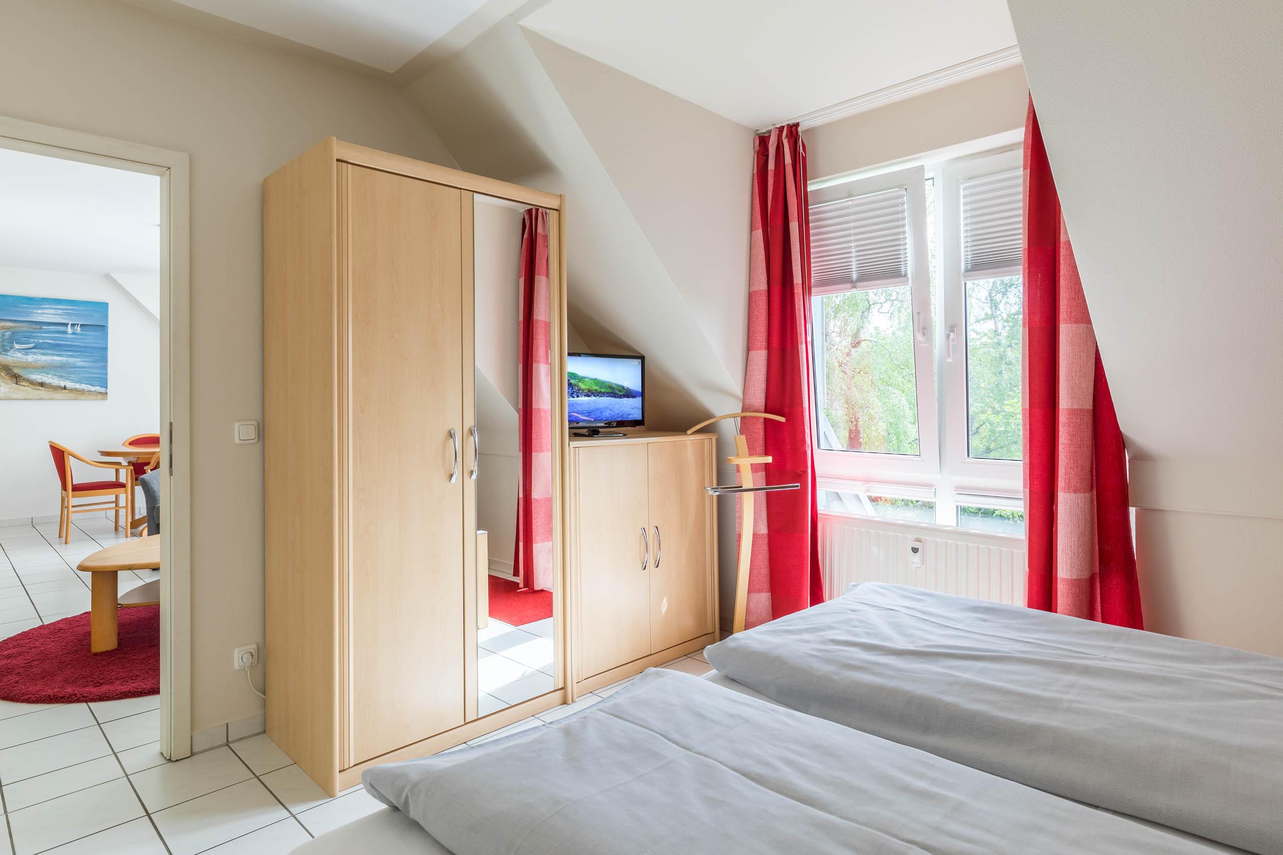 Das Schlafzimmer ist mit einem komfortablen Doppelbett (180x200m), Kleiderschrank und TV eingerichtet. Die Fenster sind mit Fliegenschutz ausgestattet.