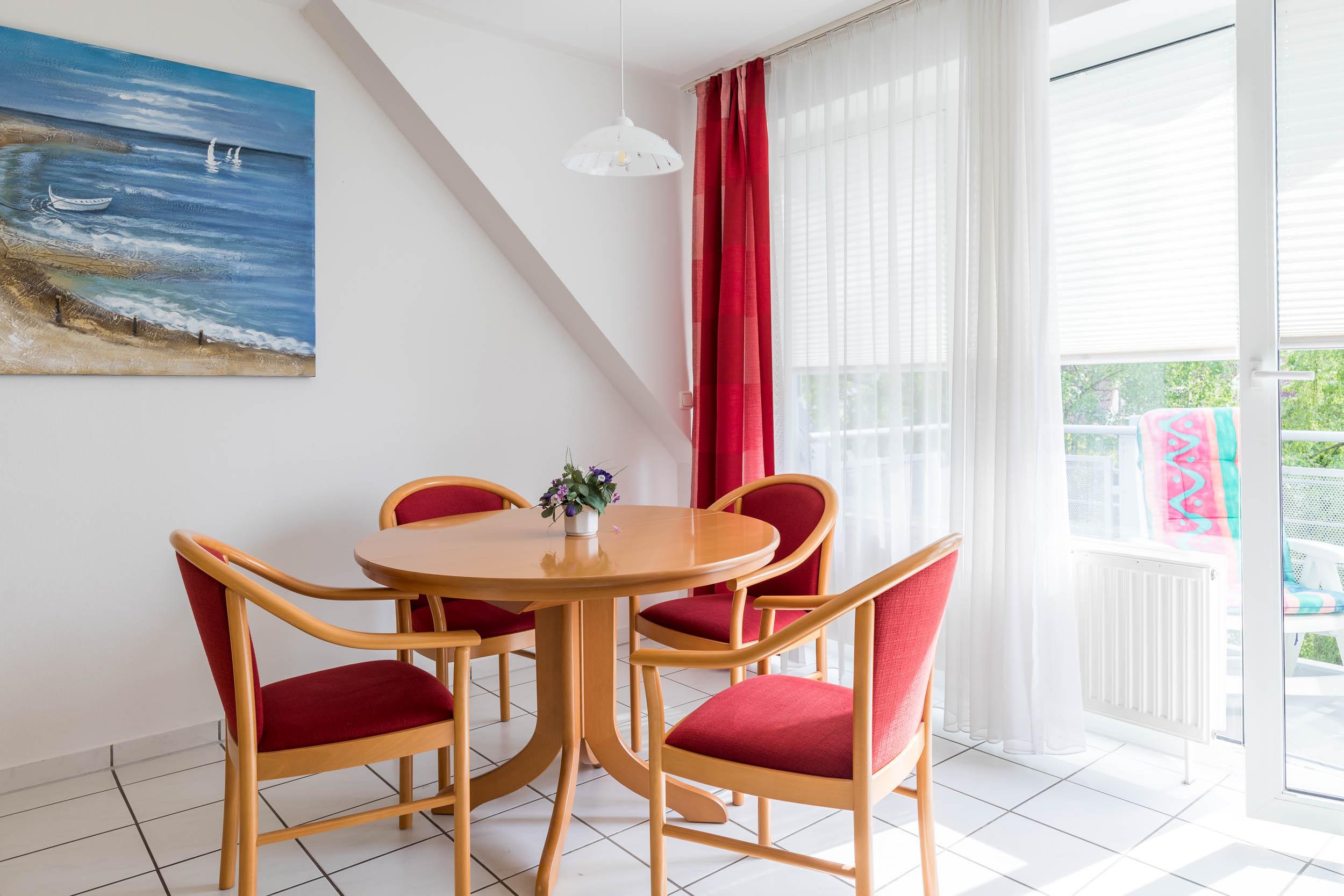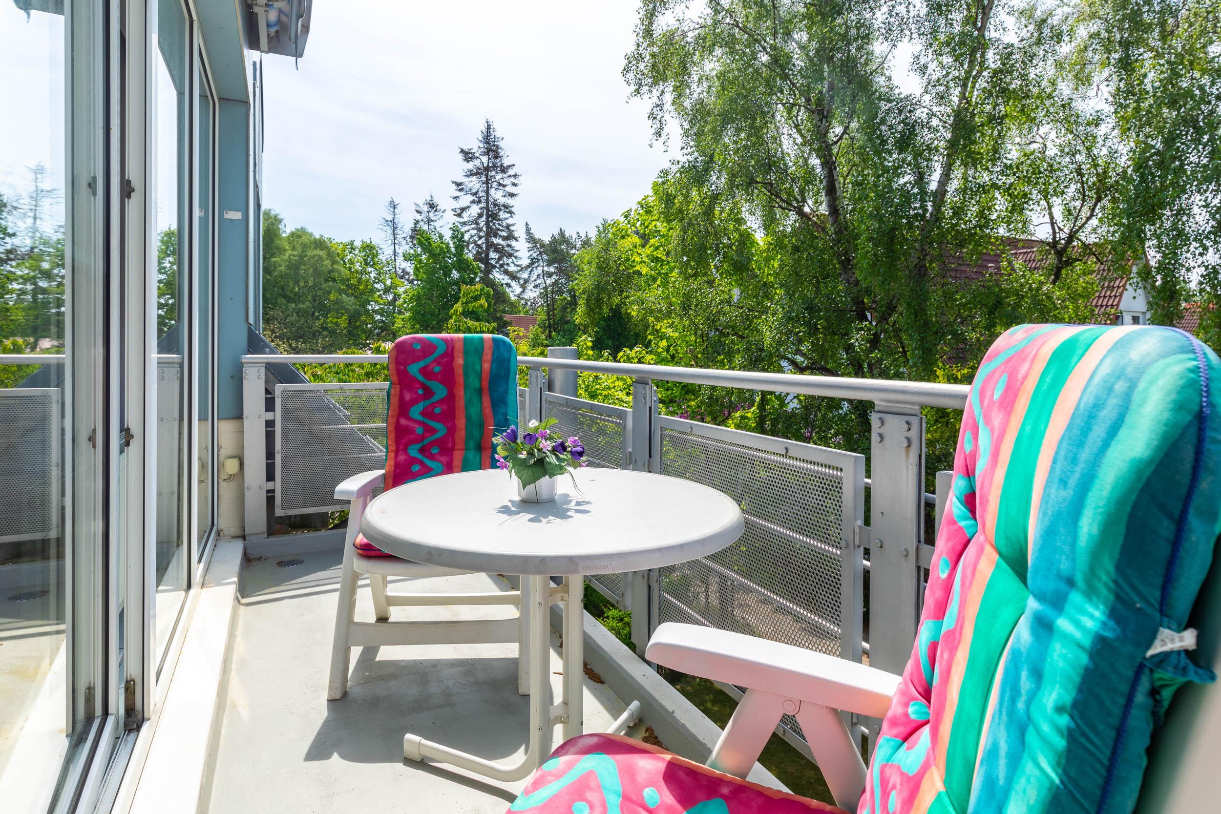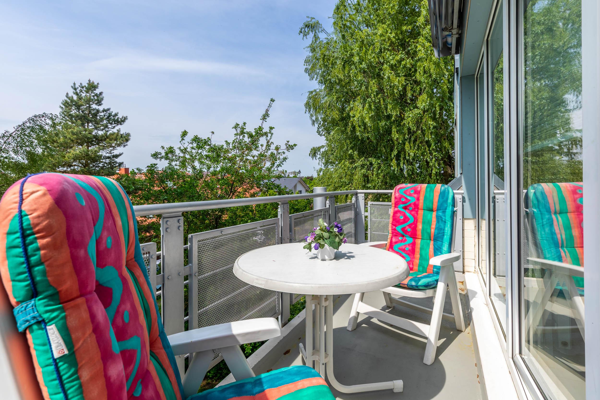 Auf dem möblierten Südwest-Balkon können Sie gemütlich die Ostseeluft genießen.
