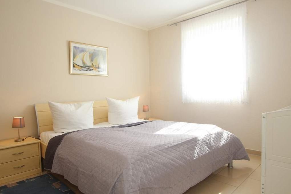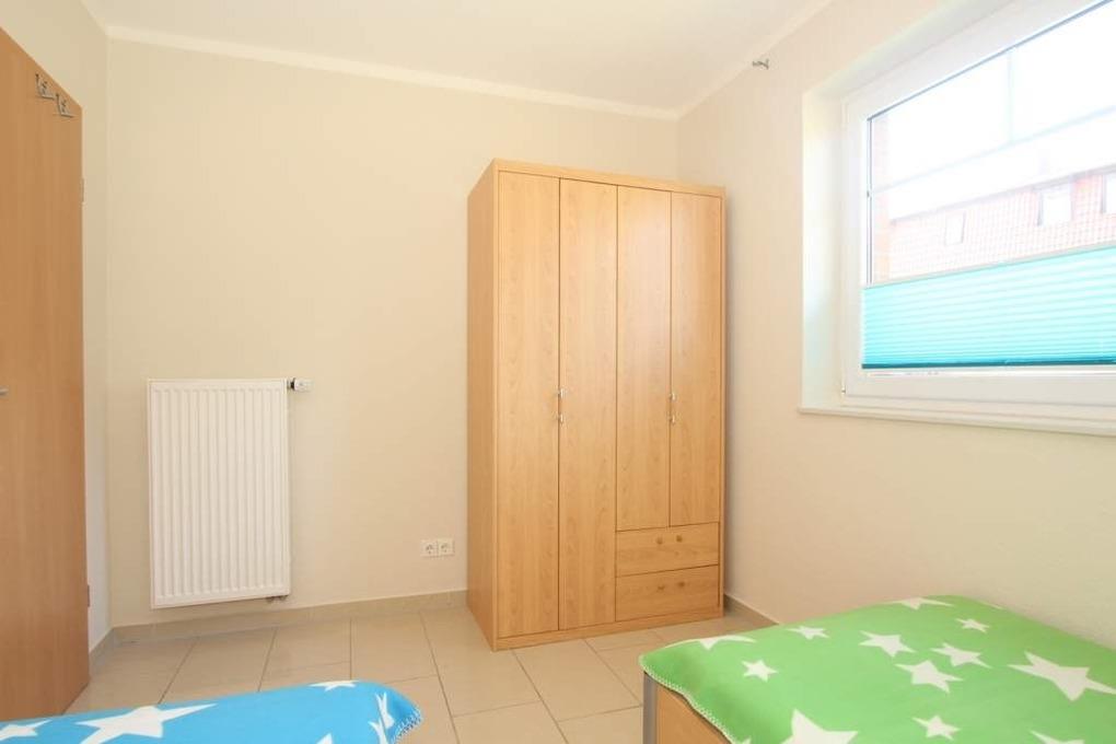 Weiterhin finden Sie in der Wohnung ein Schlafzimmer mit Doppelbett und Kleiderschrank, hier ist auch ein festes Holzgitterbett für unsere kleinsten Gäste aufgestellt. Im Gäste-/ Kinderzimmer finden Sie, liebe Gäste, zwei Einzelbetten vor. Auch hier bietet ein Kleiderschrank Ablagemöglichkeiten für Ihre Garderobe.