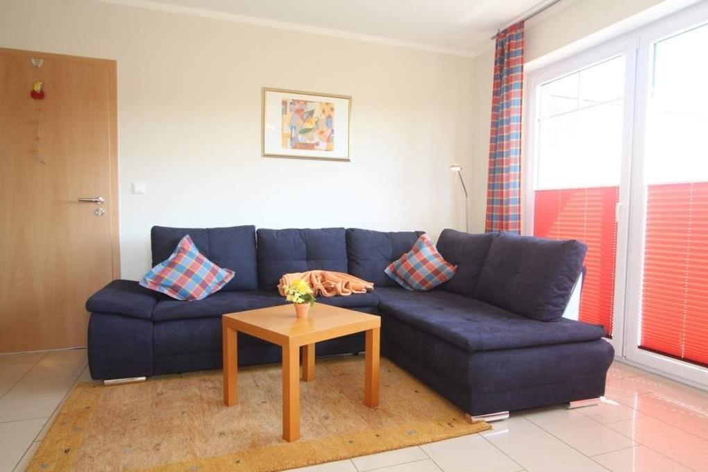 Das Wohnzimmer bietet mit seinen stimmigen farblichen Akzenten und der gemütlichen Möblierung sowie einem separaten Essbereich für 4 Personen genügend Raum für gesellige Stunden. SAT-TV und eine Musikanlage sorgen hier für Multimediaunterhaltung.