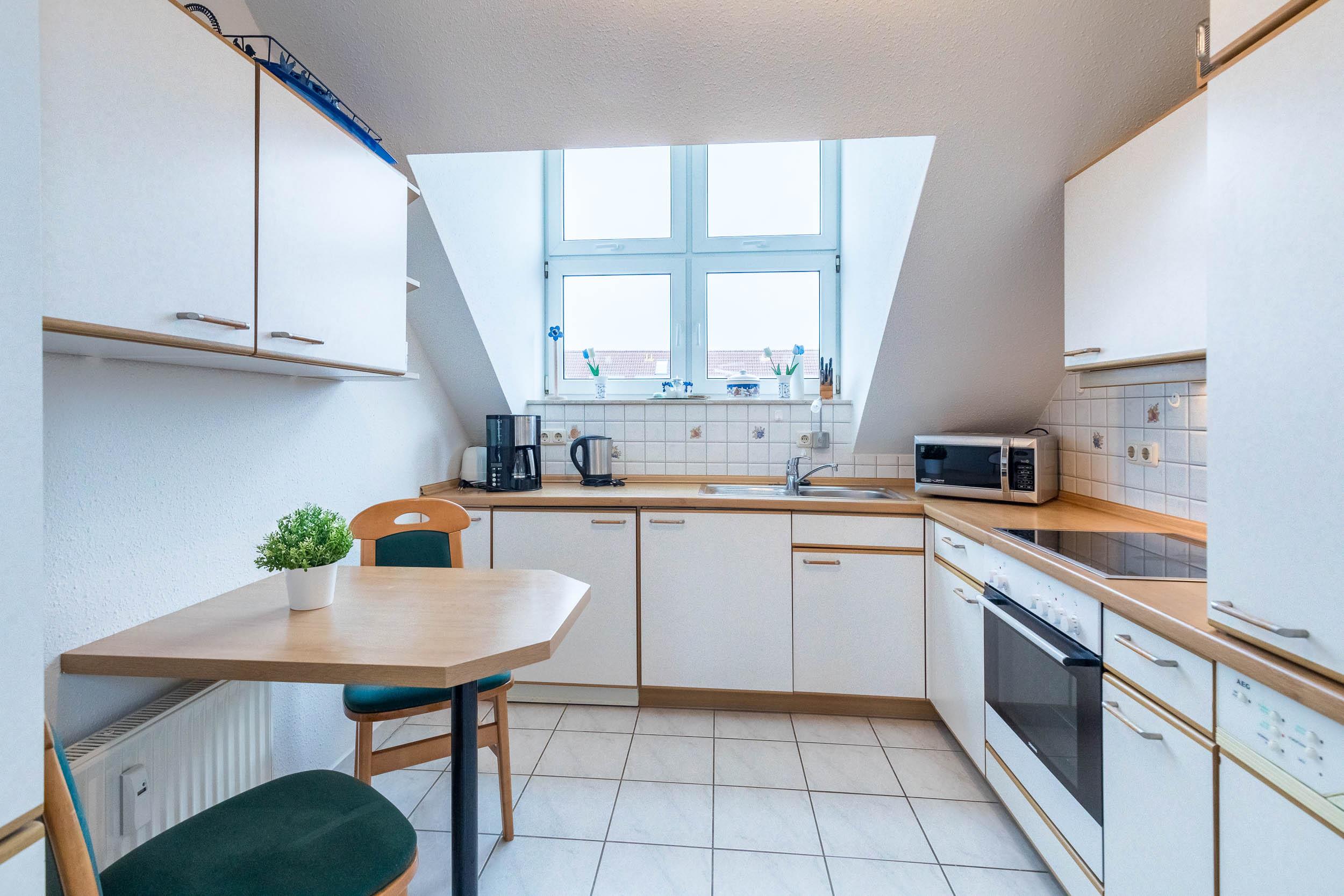 Die frisch renovierte und möblierte 3-Zimmer-Wohnung bietet eine rundum komfortable Ausstattung für bis zu 4 Gäste plus Kleinkind.