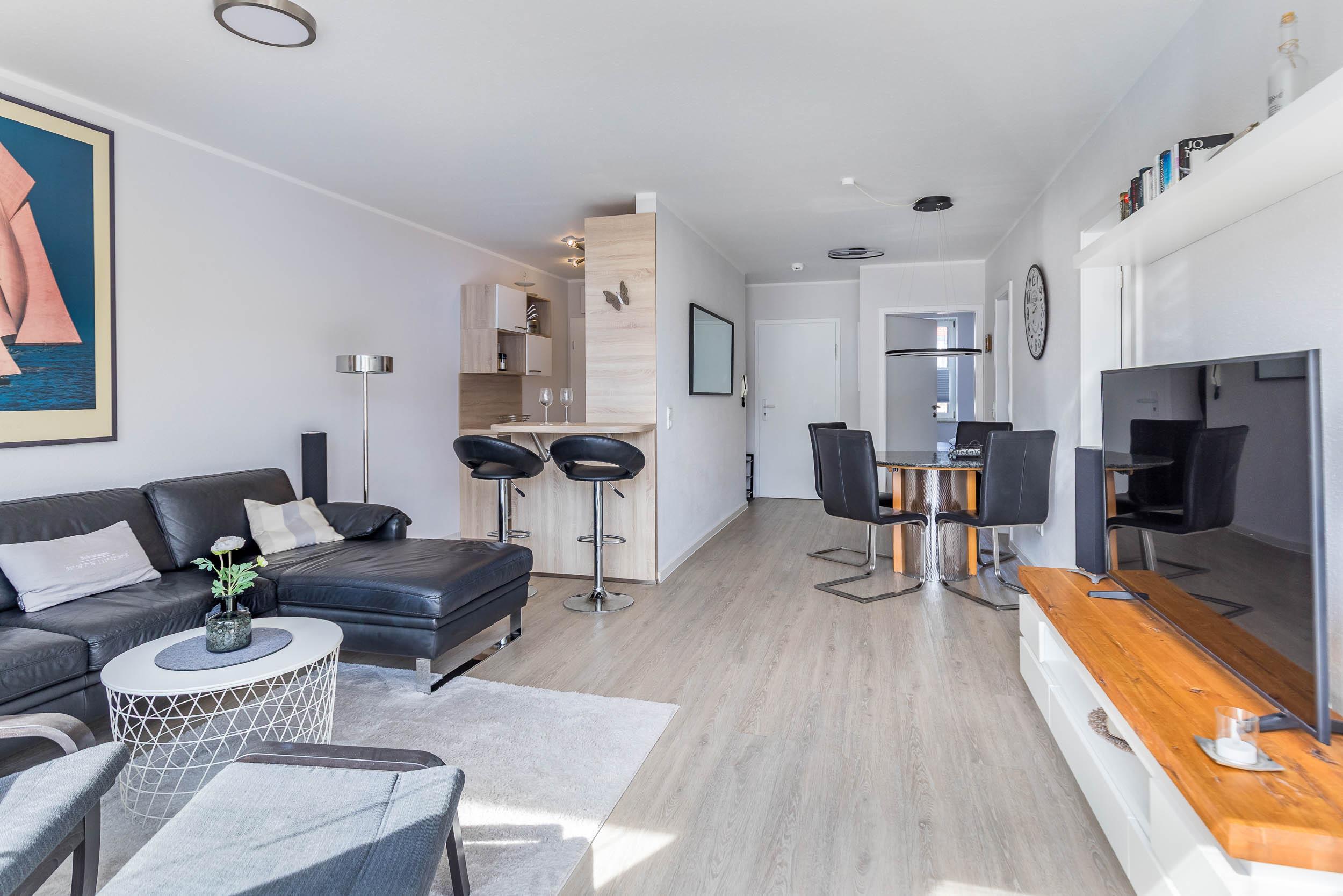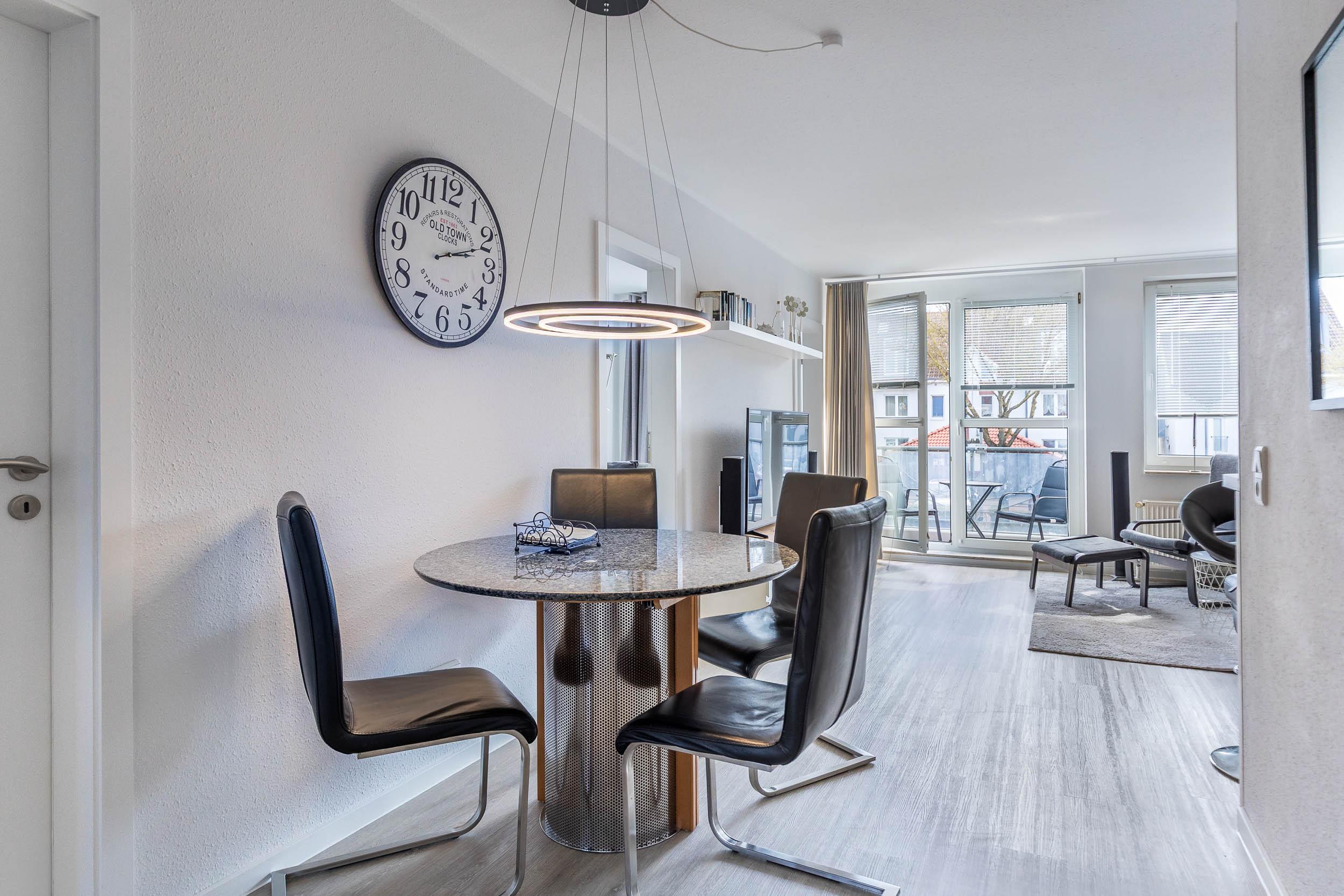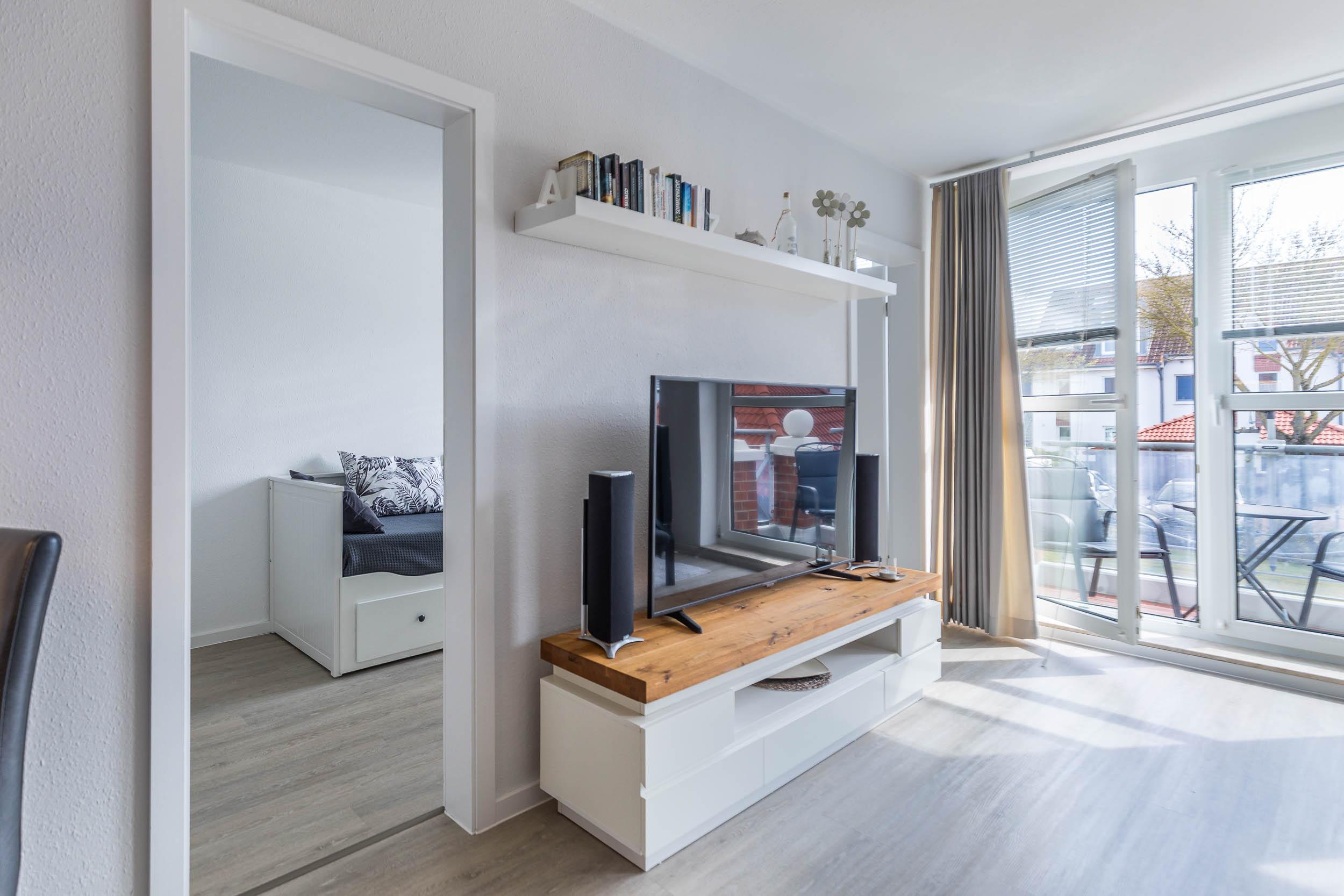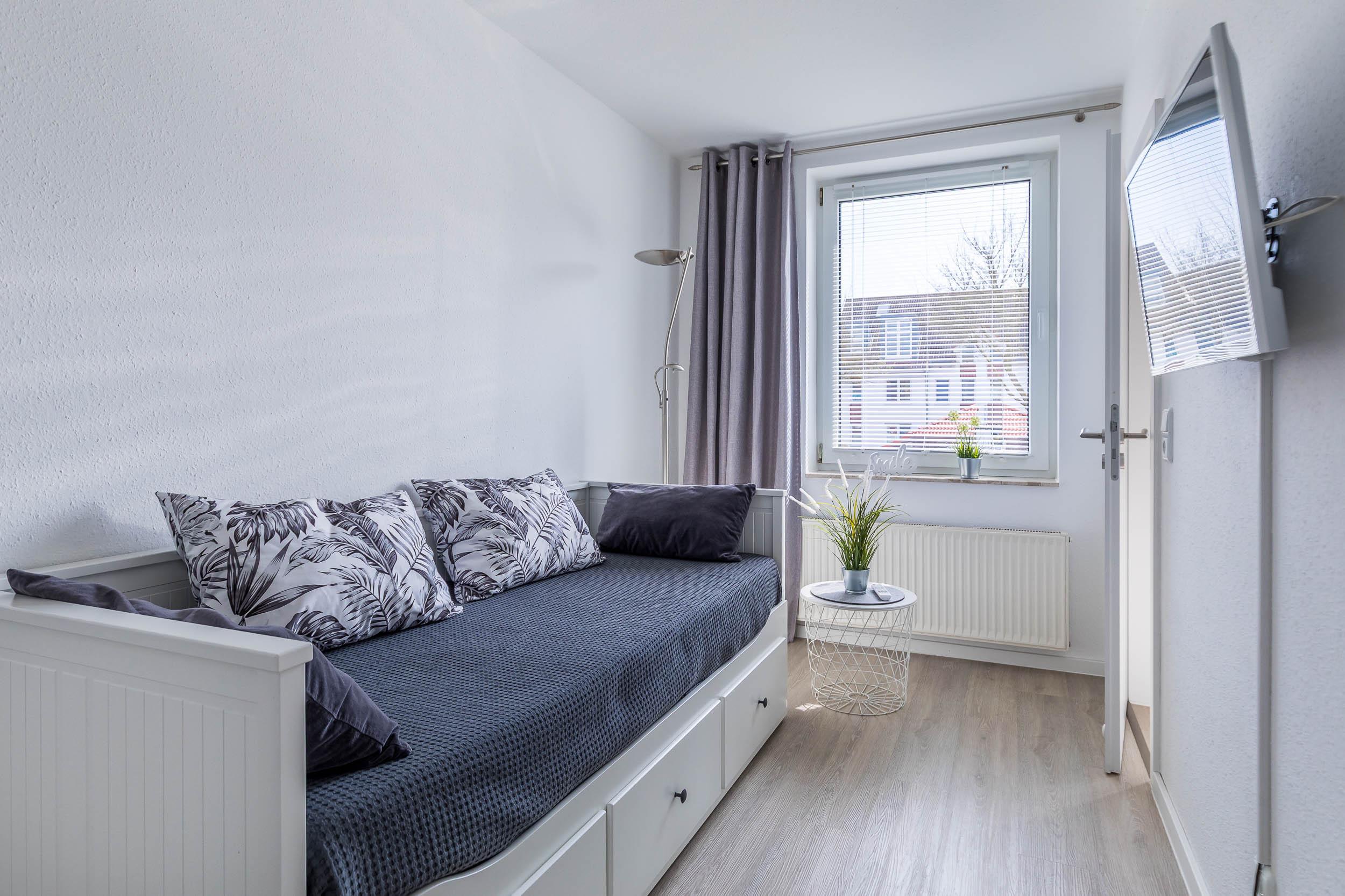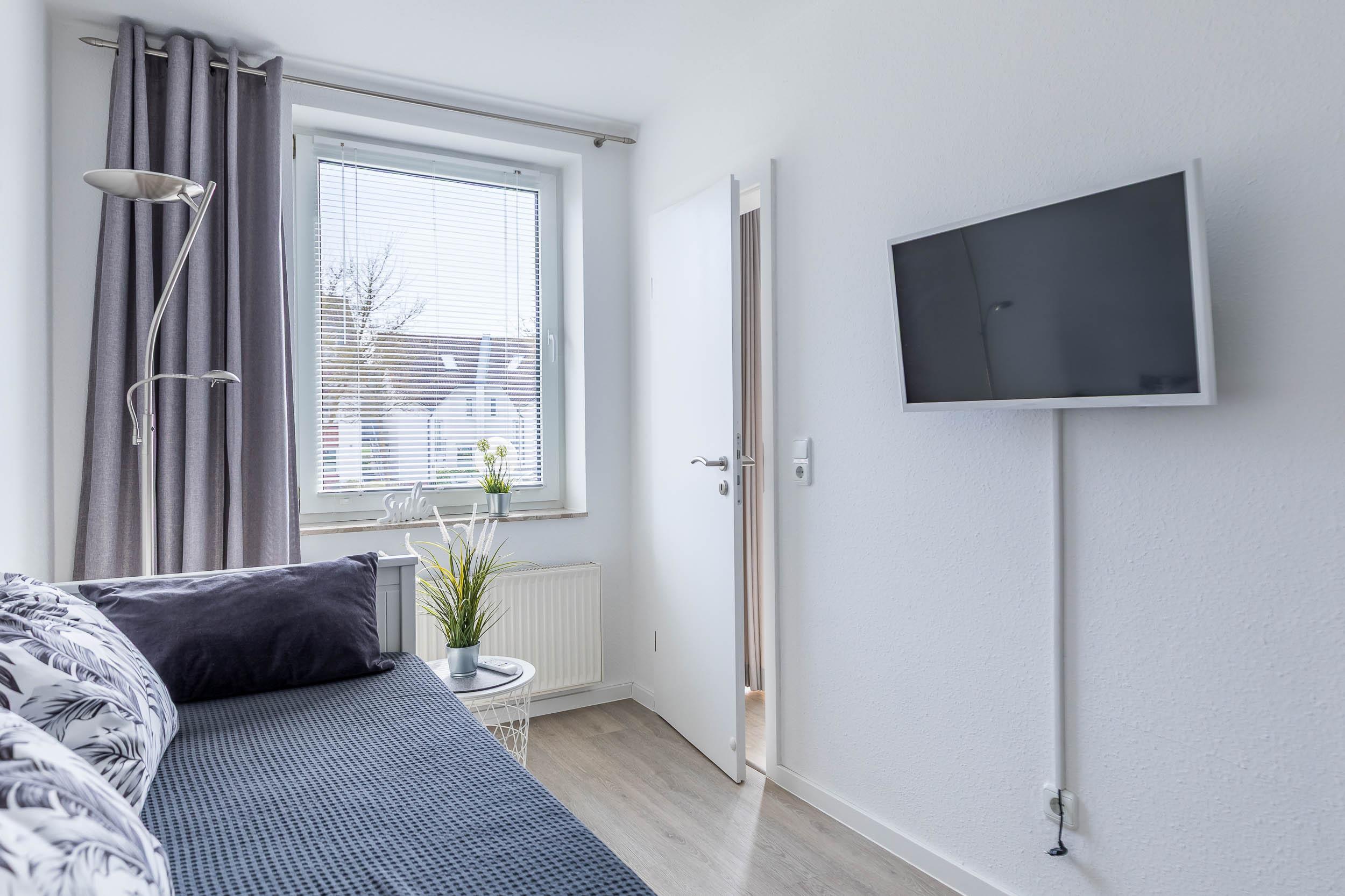 Die modern möblierte 3-Zimmer-Wohnung im 1.OG bietet auf 65qm Wohnfläche eine rundum komfortable Ausstattung für bis zu 4 Gäste plus Kleinkind.