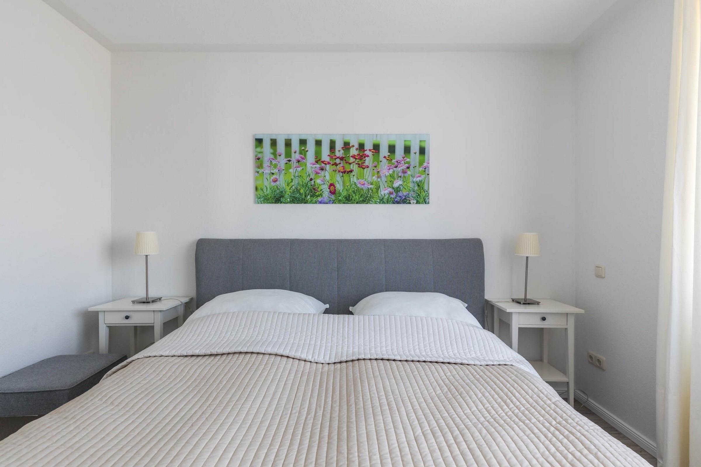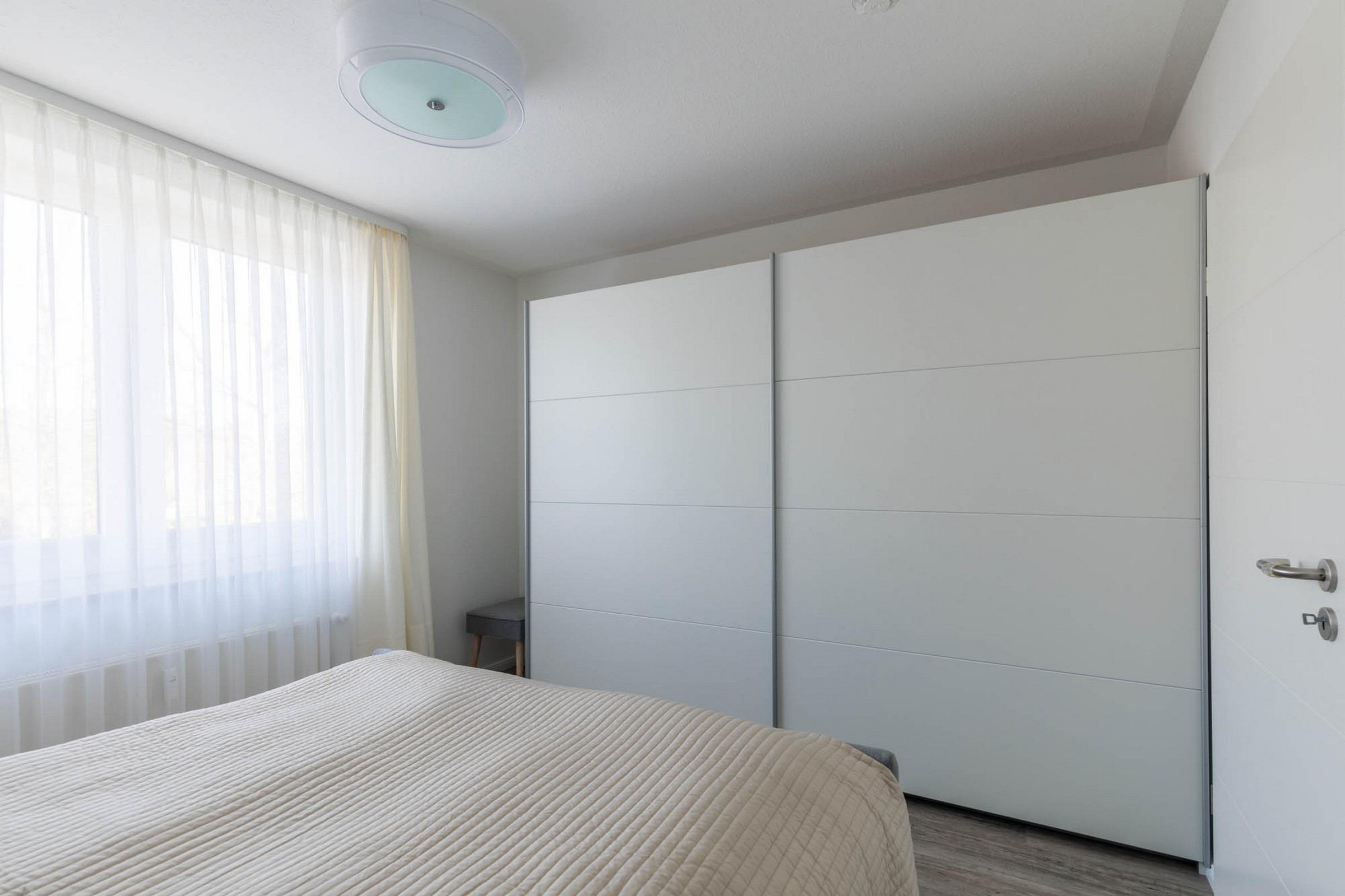 Es gibt zwei separate Schlafzimmer. Das größere Schlafzimmer ist mit einem Boxspringbett (180x200m) und einem Kleiderschrank für Ihre Garderobe bestückt.