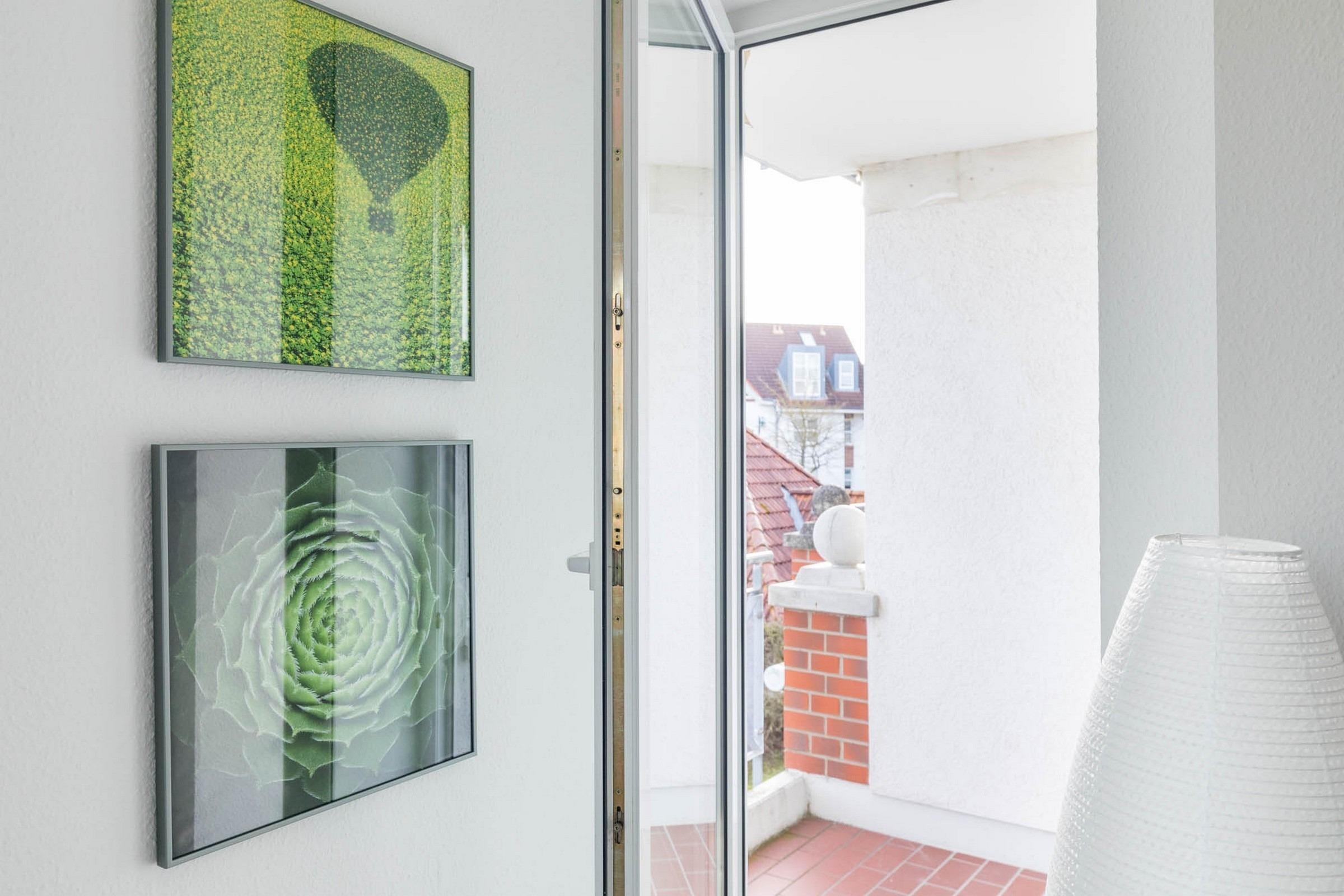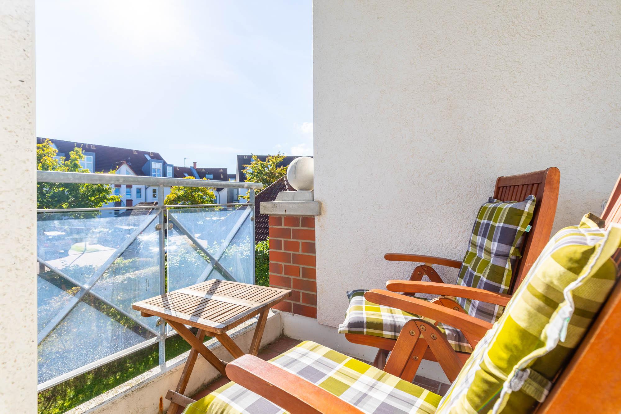 Vom Wohnbereich aus können Sie auf den kleinen möblierten Südost-Balkon gelangen.