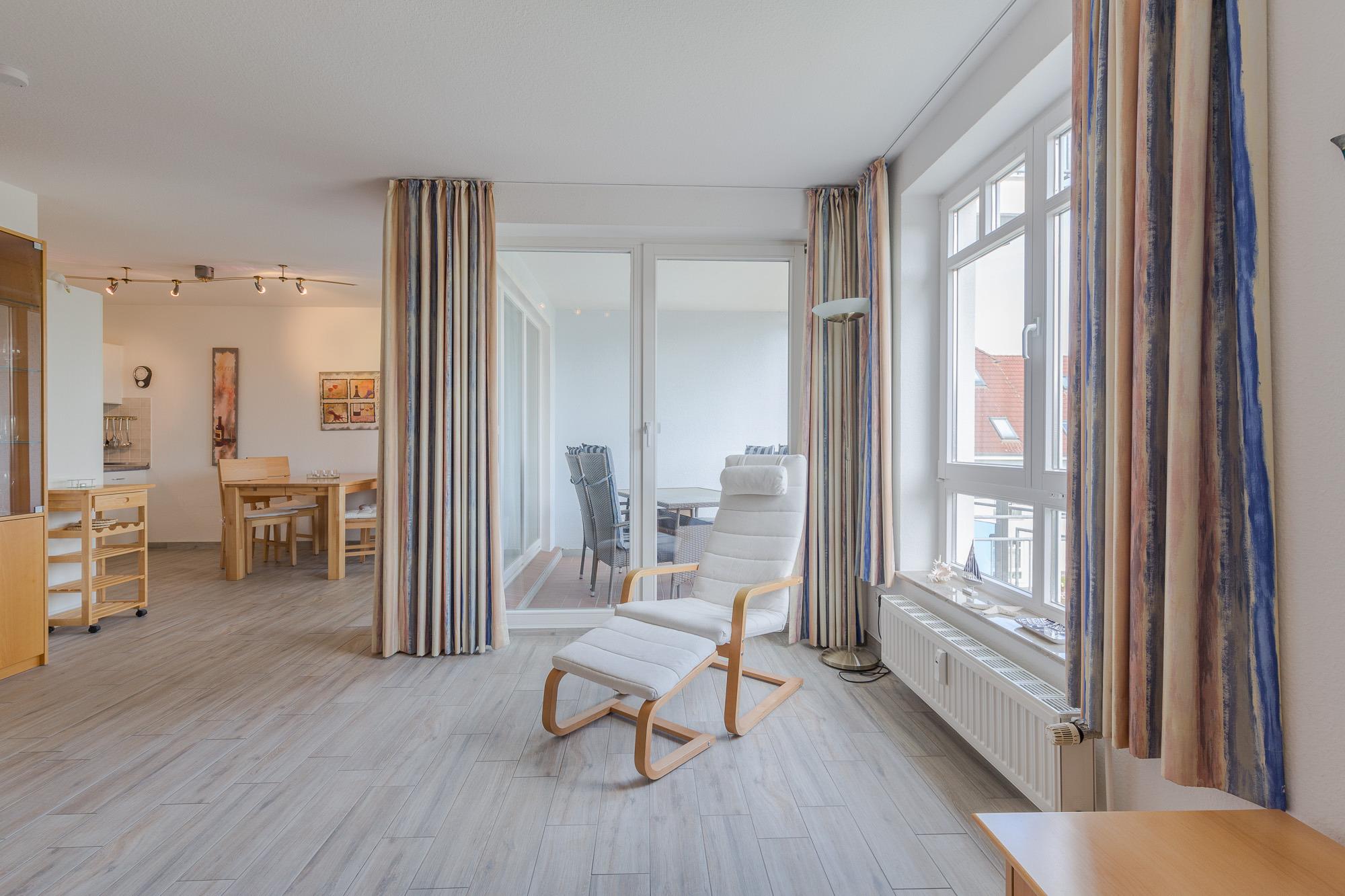 Moderne Maisonette-Ferienwohnung mit Meerblick, Fahrstuhl, Balkon und Tiefgarage in Boltenhagen.