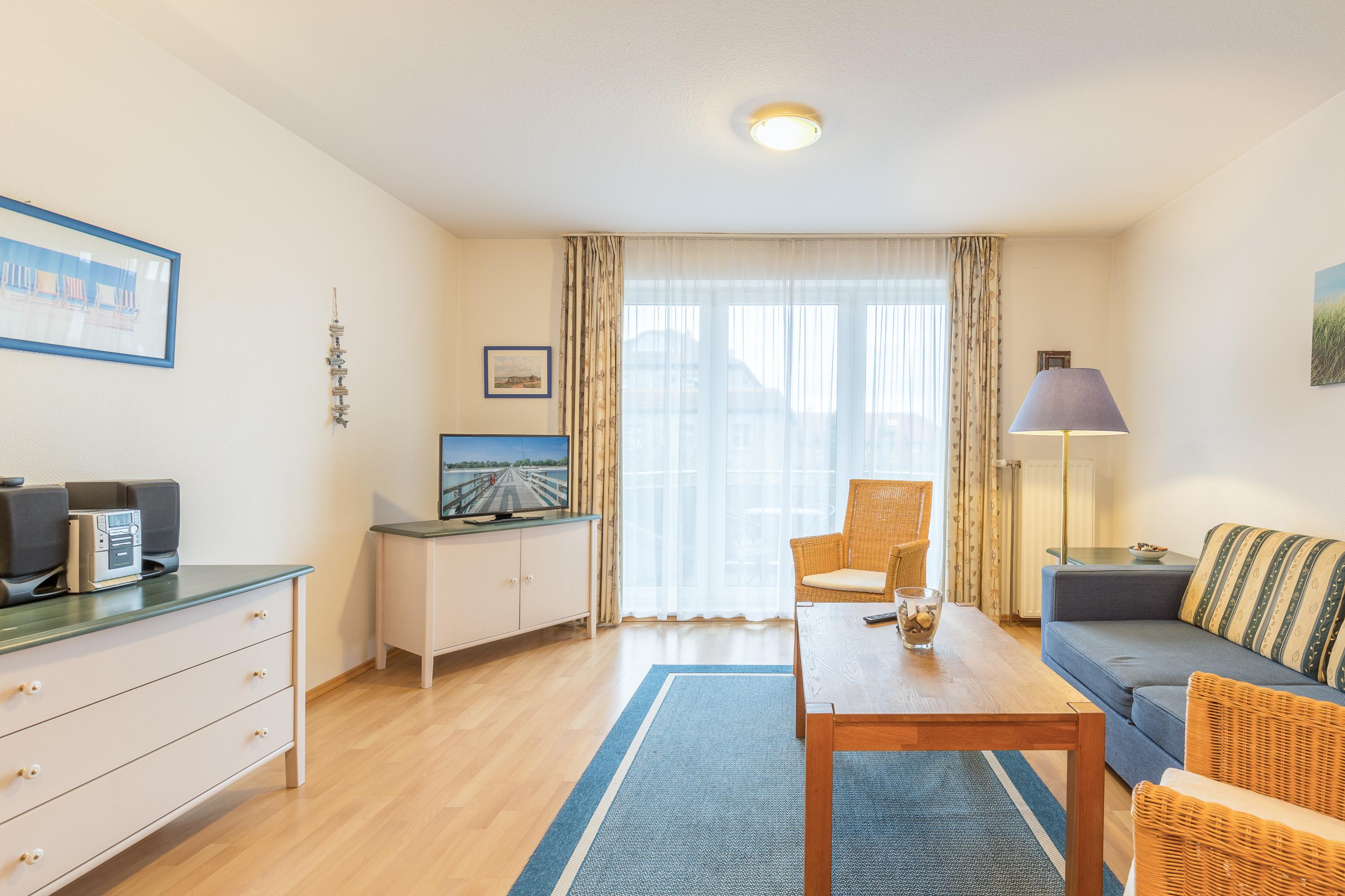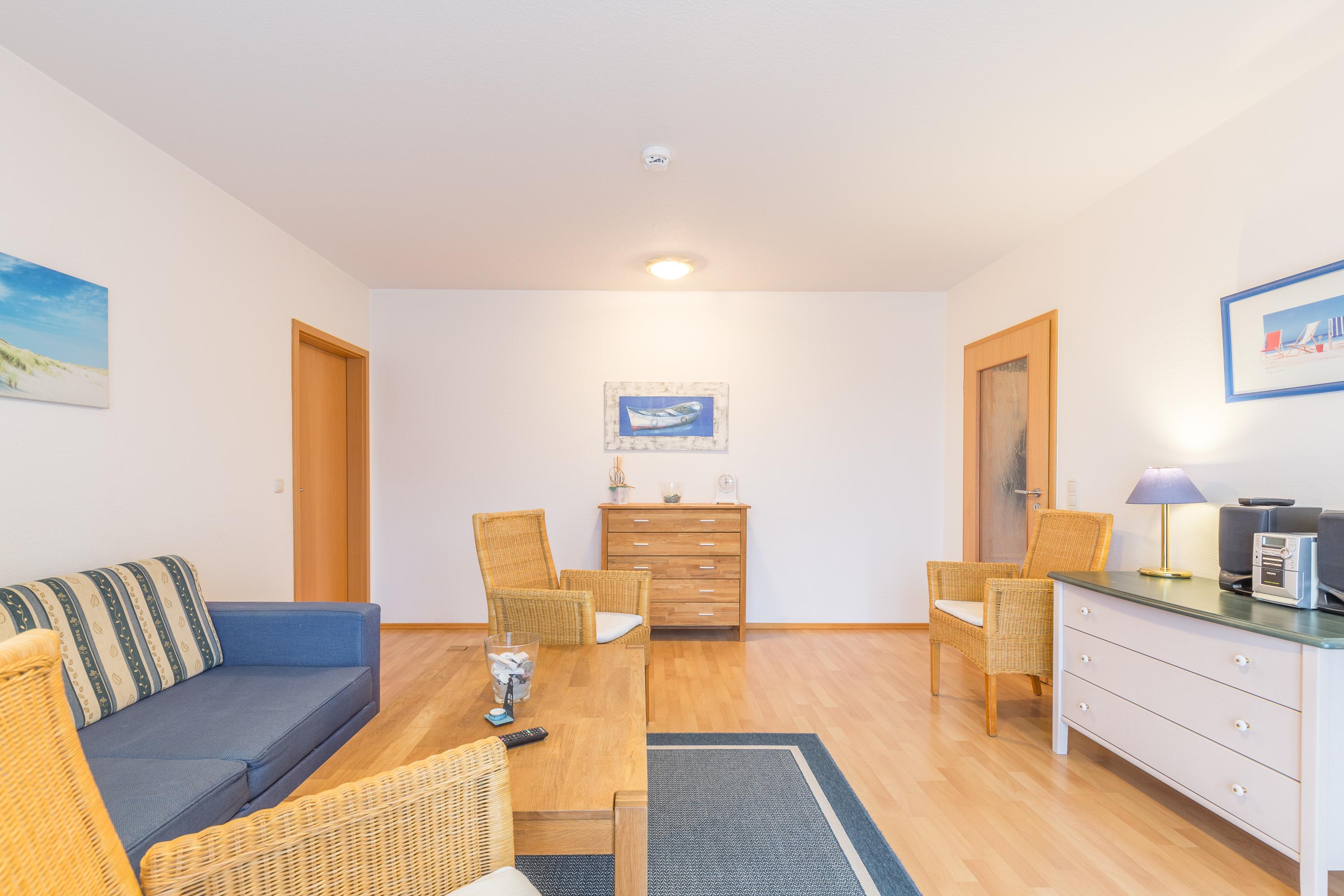 Die 3-Zimmer-Ferienwohnung "Kajüte" befindet sich in zentraler Lage in Boltenhagen. Sie liegt im 1. Obergeschoss und ist über die Treppe im Hausflur ( Eingang Haus 6a) zu erreichen. Mit einer Größe von 70 m² bietet sie Platz für maximal 5 Personen. Das Appartement hat ein Wohnzimmer, eine separate Küche, 2 Schlafzimmer und ein Duschbad. In der voll ausgestatteten Küchenzeile finden Sie ein Kochfeld mit 2 Platten, eine Mikrowelle , einen Geschirrspüler und einen Kühlschrank mit Gefrierfach. Im Schlafzimmer steht ein Kleiderschrank und ein Doppelbett. Auf dem Balkon (Westseite) stehen Balkonmöbel für Sie bereit. Ihr Auto stellen Sie sicher in der Tiefgarage ab. Es gibt keinen direkten Zugang von der Tiefgarage ins Haus. Die Zufahrt liegt separat links neben dem Haus.