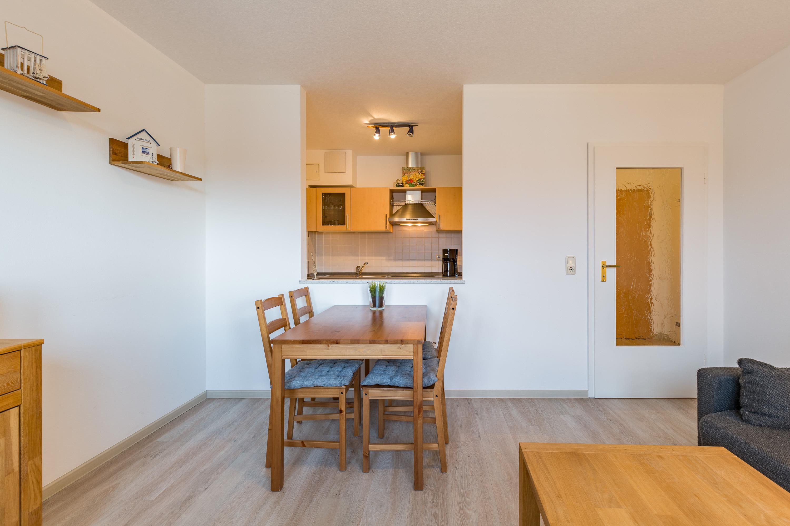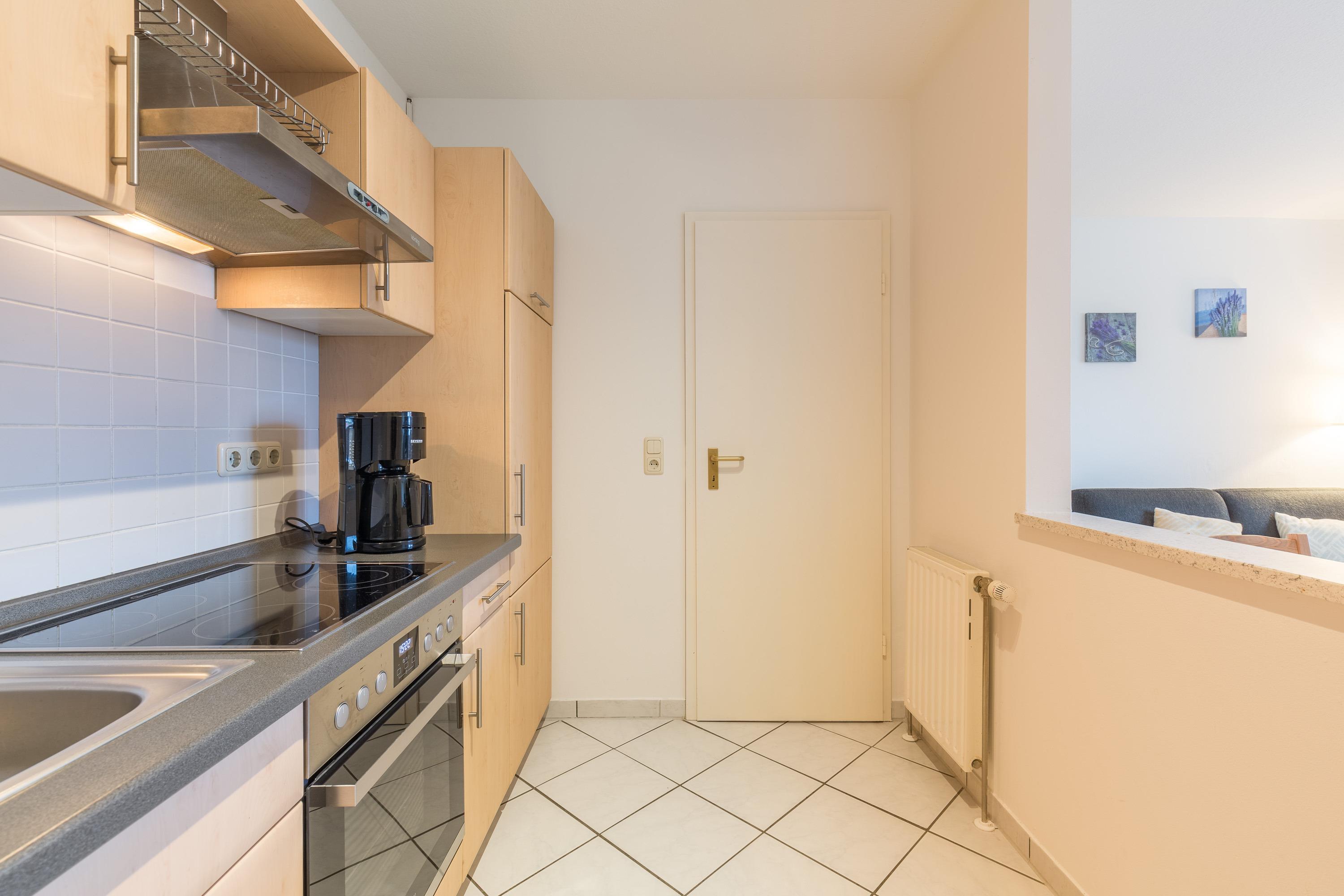 In der voll ausgestatteten Küchenzeile finden Sie einen Backofen mit Cerankochfeld, eine Mikrowelle (im Schrank) , einen Geschirrspüler und einen Kühlschrank mit Gefrierfach. Im Schlafzimmer steht ein geräumiger Kleiderschrank für Ihre Urlaubsgarderobe. Das Doppelbett hat eine durchgehende Matratze (Liegefläche 180x200 cm). Auf dem Balkon (Nordseite) stehen Balkonmöbel für Sie bereit. Ihr Auto stellen Sie sicher in der Tiefgarage (Einfahrtshöhe 1,95m) ab. Fahrräder können ebenfalls in einem abschließbaren Raum in der Tiefgarage abgestellt werden. Es gibt keinen direkten Zugang von der Tiefgarage ins Haus. Die Zufahrt liegt separat links neben dem Haus Waterkant. Haustiere sind in dieser Wohnung nicht erlaubt.