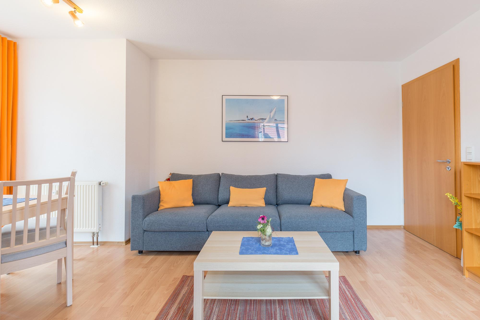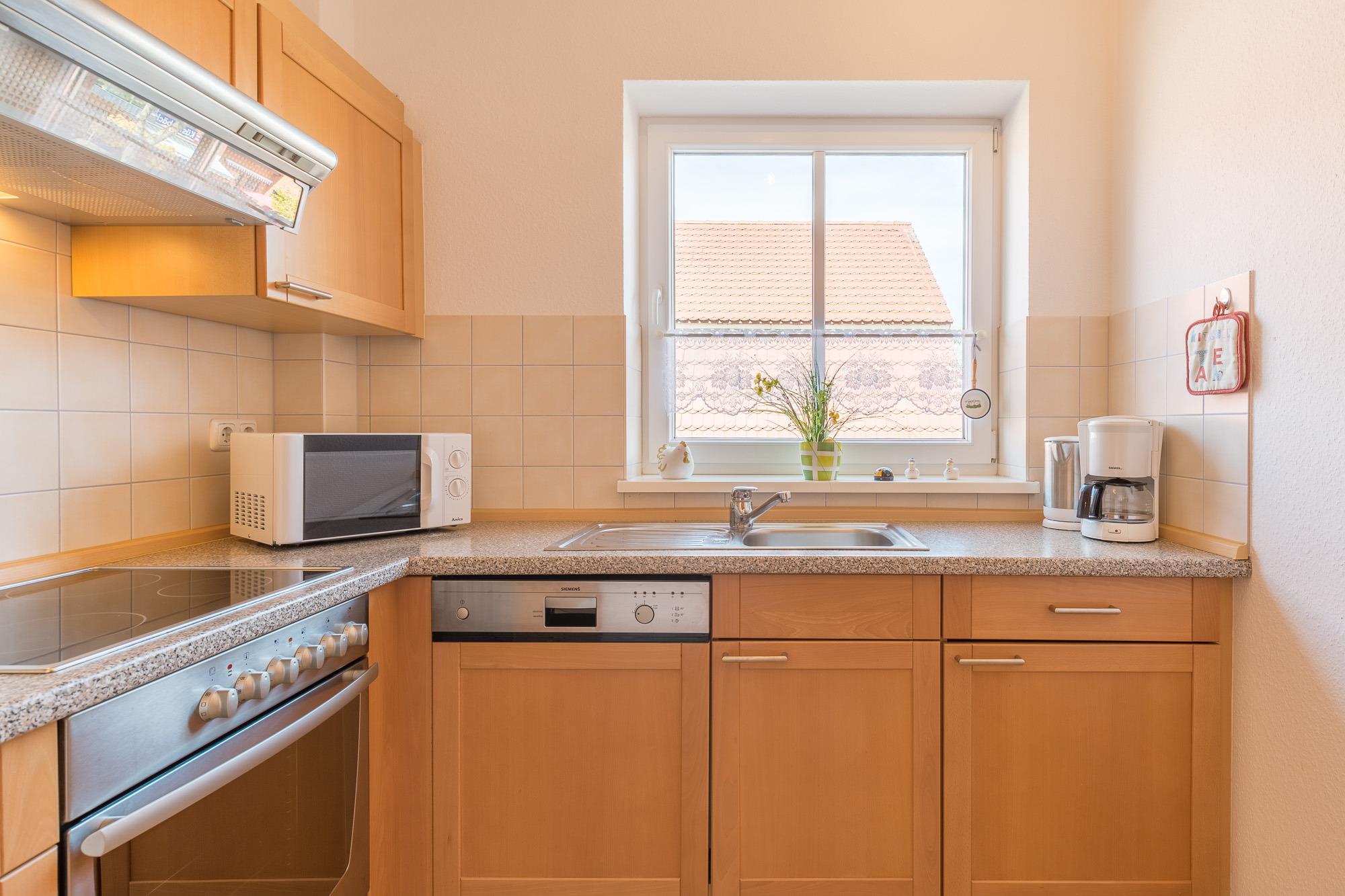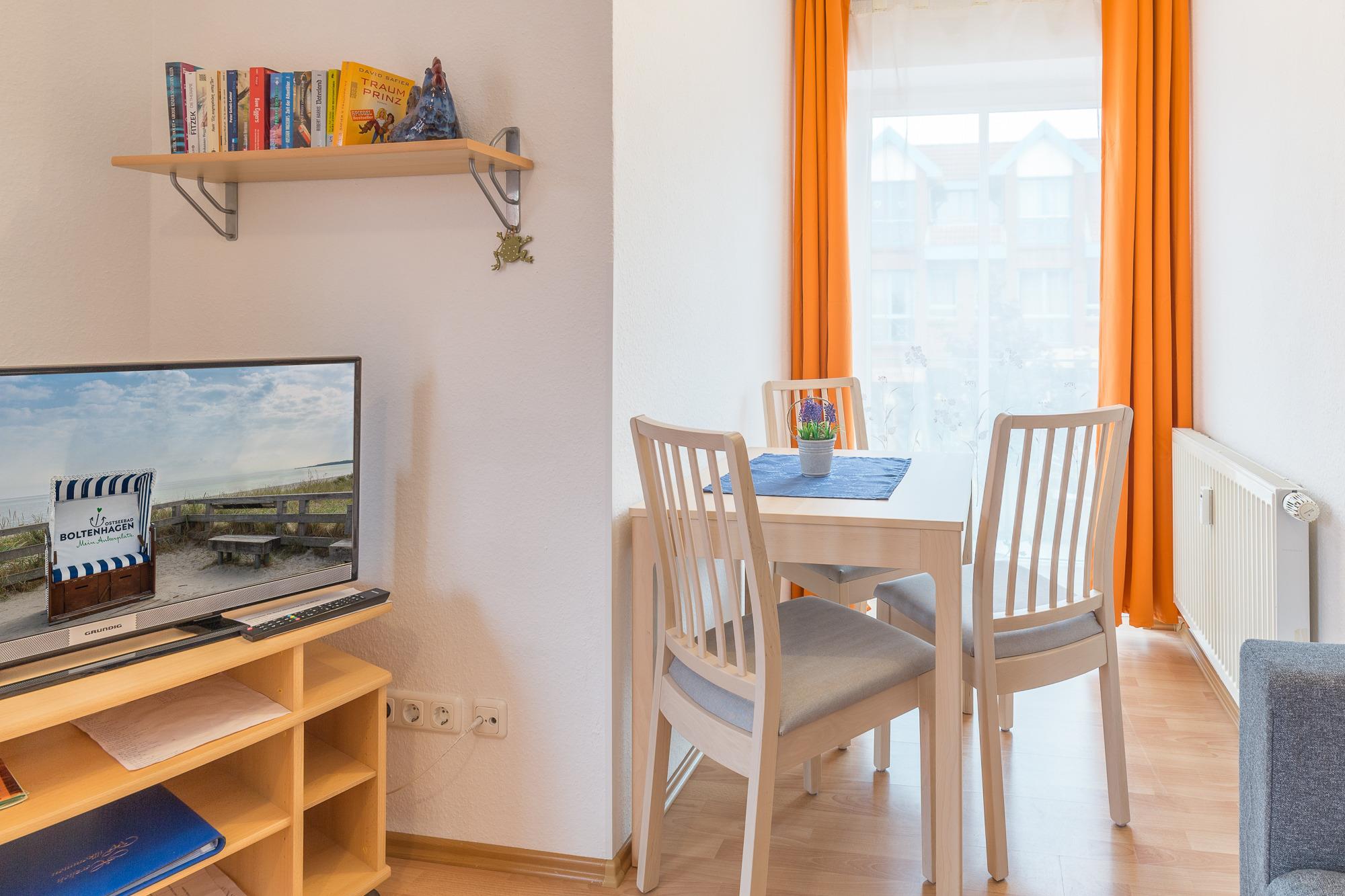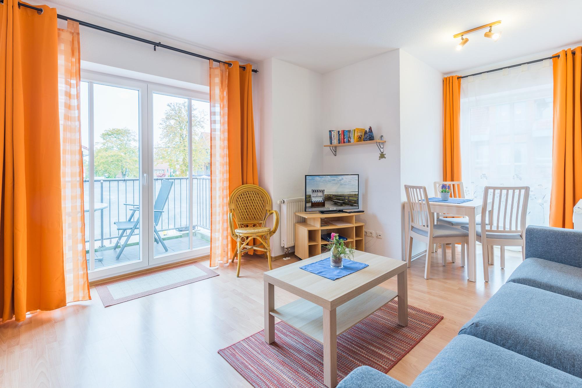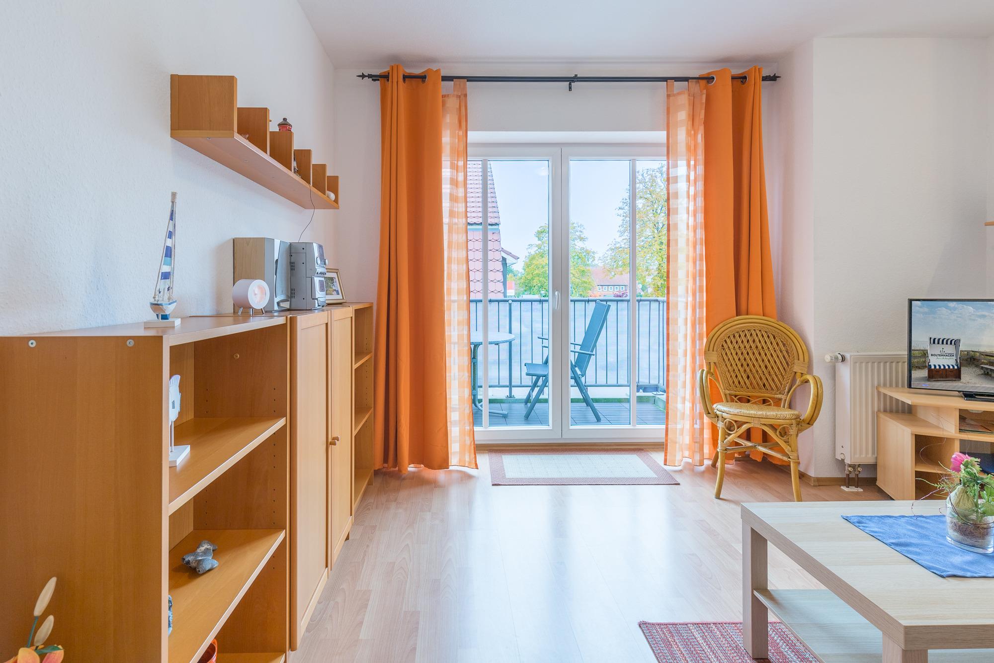 Die helle und freundliche Ferienwohnung im Backsteinhaus liegt im 1. Obergeschoß und befindet sich im Zentrum von Boltenhagen. Die geschmackvoll eingerichtete Wohnung bietet mit einem Wohnzimmer mit Schlafsofa (140 x 200cm), die als Doppelbett genutzt werden kann und einem separaten Schlafzimmer mit Doppelbett, optimalen Platz für 3 - 4 Personen. Außerdem verfügt sie über eine separate Küche mit Geschirrspülmaschine und Backofen sowie ein Badezimmer mit Badewanne. WLAN ist in der Wohnung vorhanden. Der Balkon ist in südwestlicher Richtung gelegen und lädt zum geniessen und entspannen ein. Hier kann man sich Abends vom Sonnenuntergang verzaubern lassen.