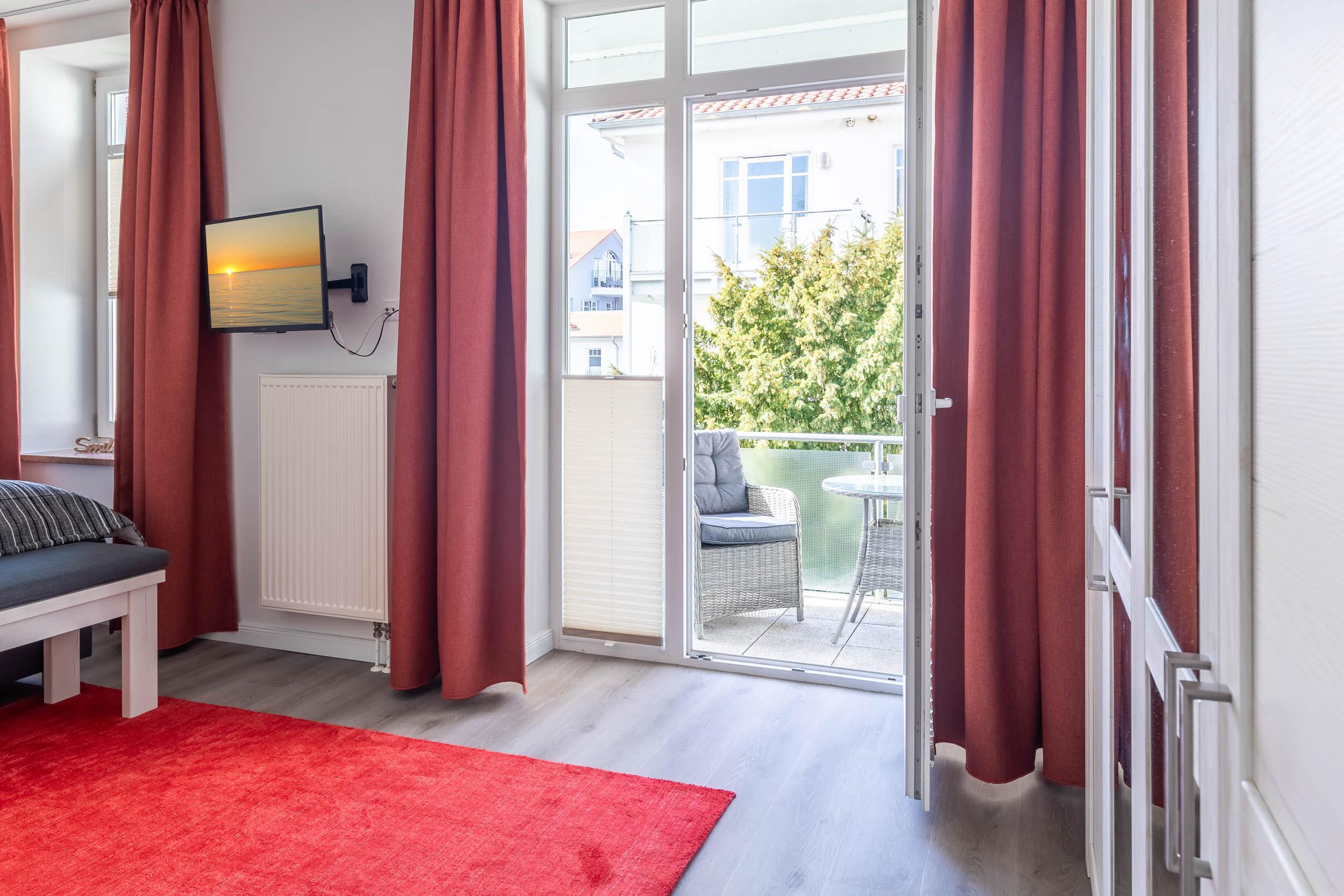 With high ceilings and wide window fronts, the flat offers you a stately home by the sea with plenty of space and every conceivable comfort for relaxing and working.