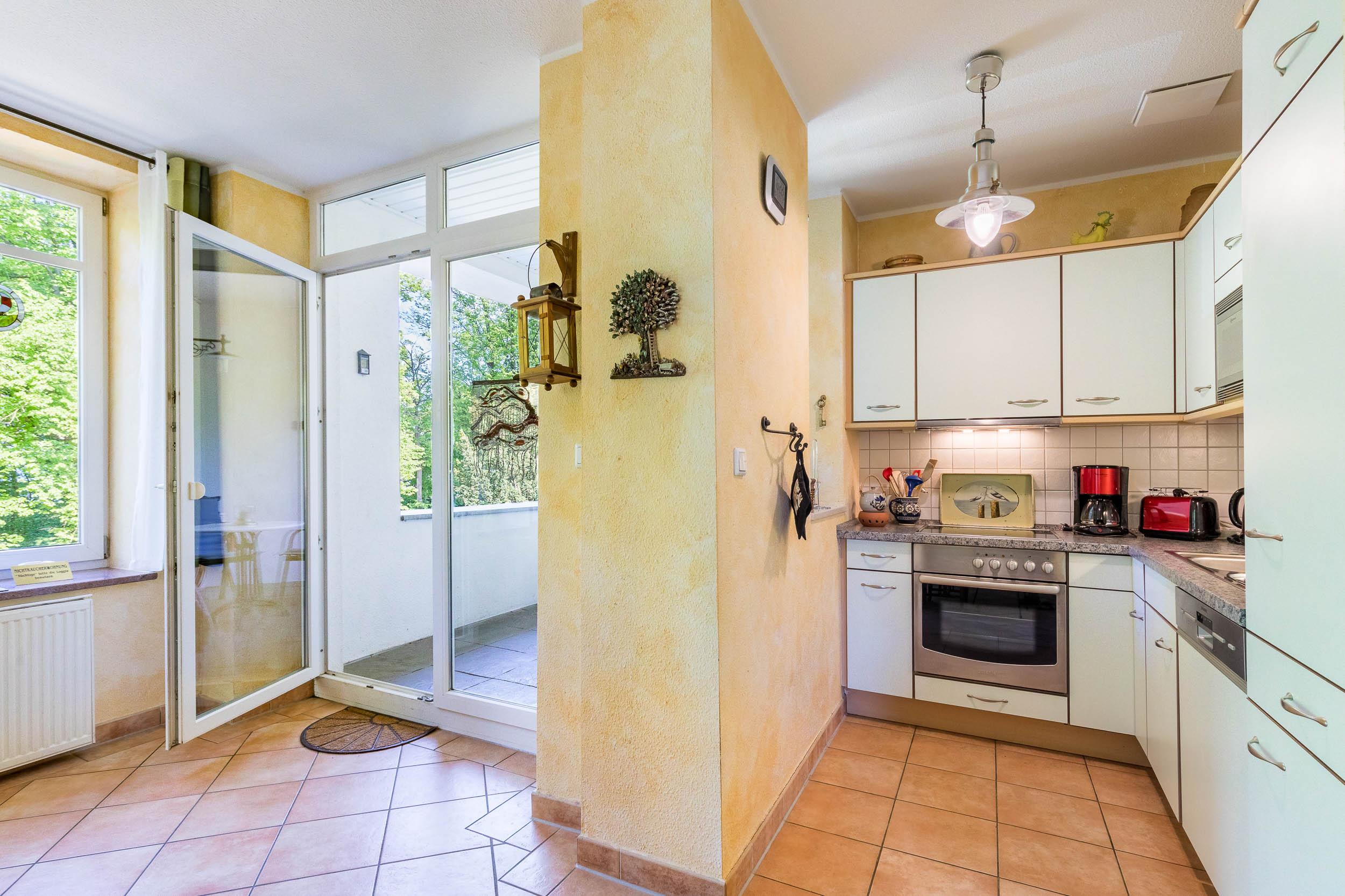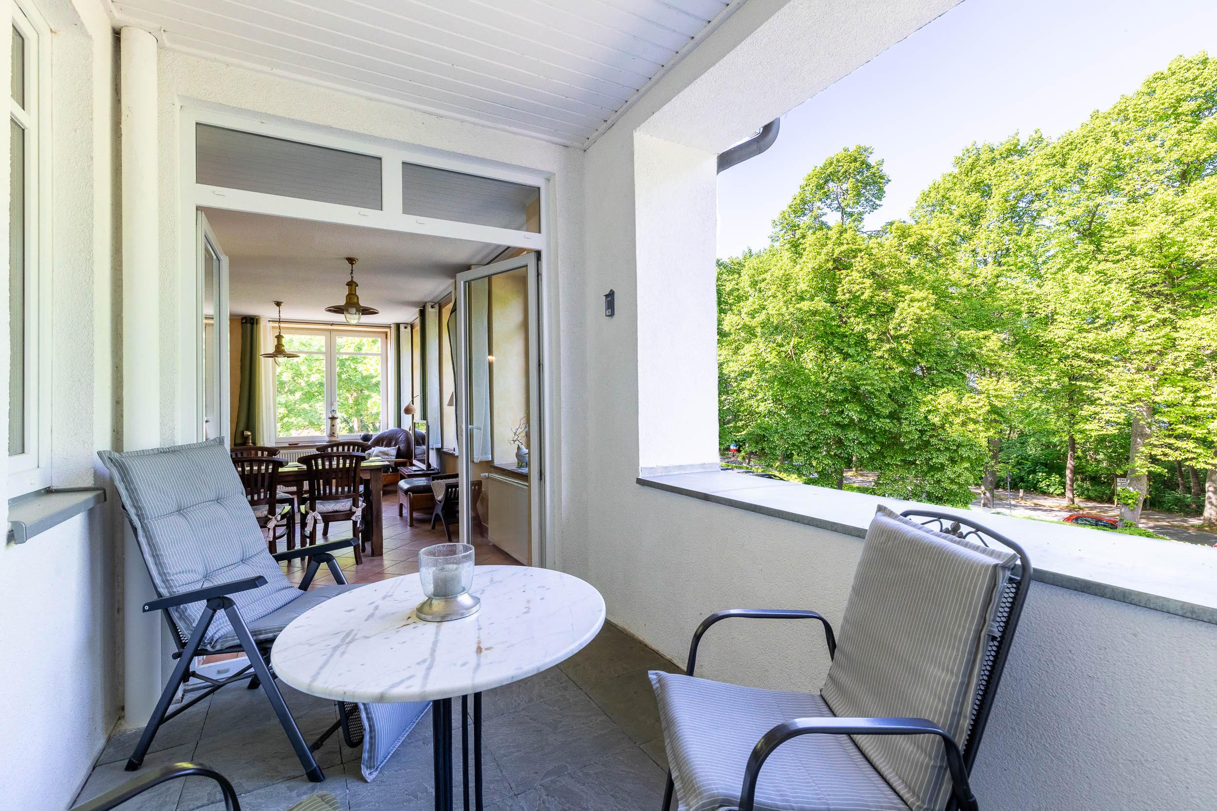 Auf der möblierten, wettergeschützten möblierten Loggia Richtung Ostsee (Nordost) können Sie die schöne Ostseeluft und den Meerblick genießen.