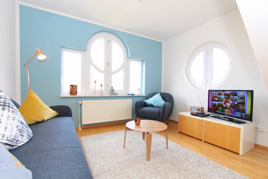 In dieser modernen 3-Zimmer-Wohnung im 2.OG können Sie auf rund 60qm Wohnfläche mit bis zu 4 Gästen + Kleinkind auf 2 Ebenen einen schönen Ostseeurlaub verbringen.
